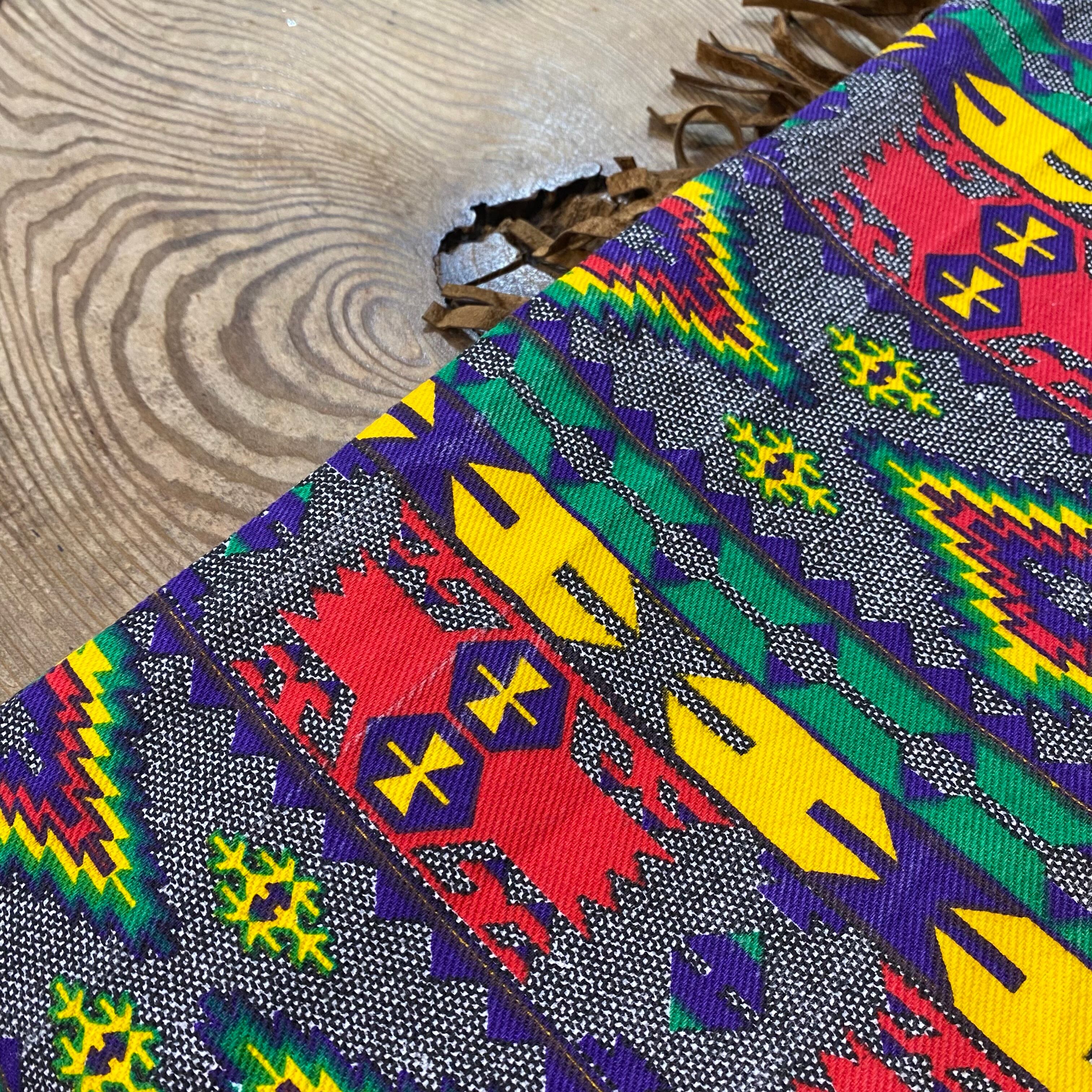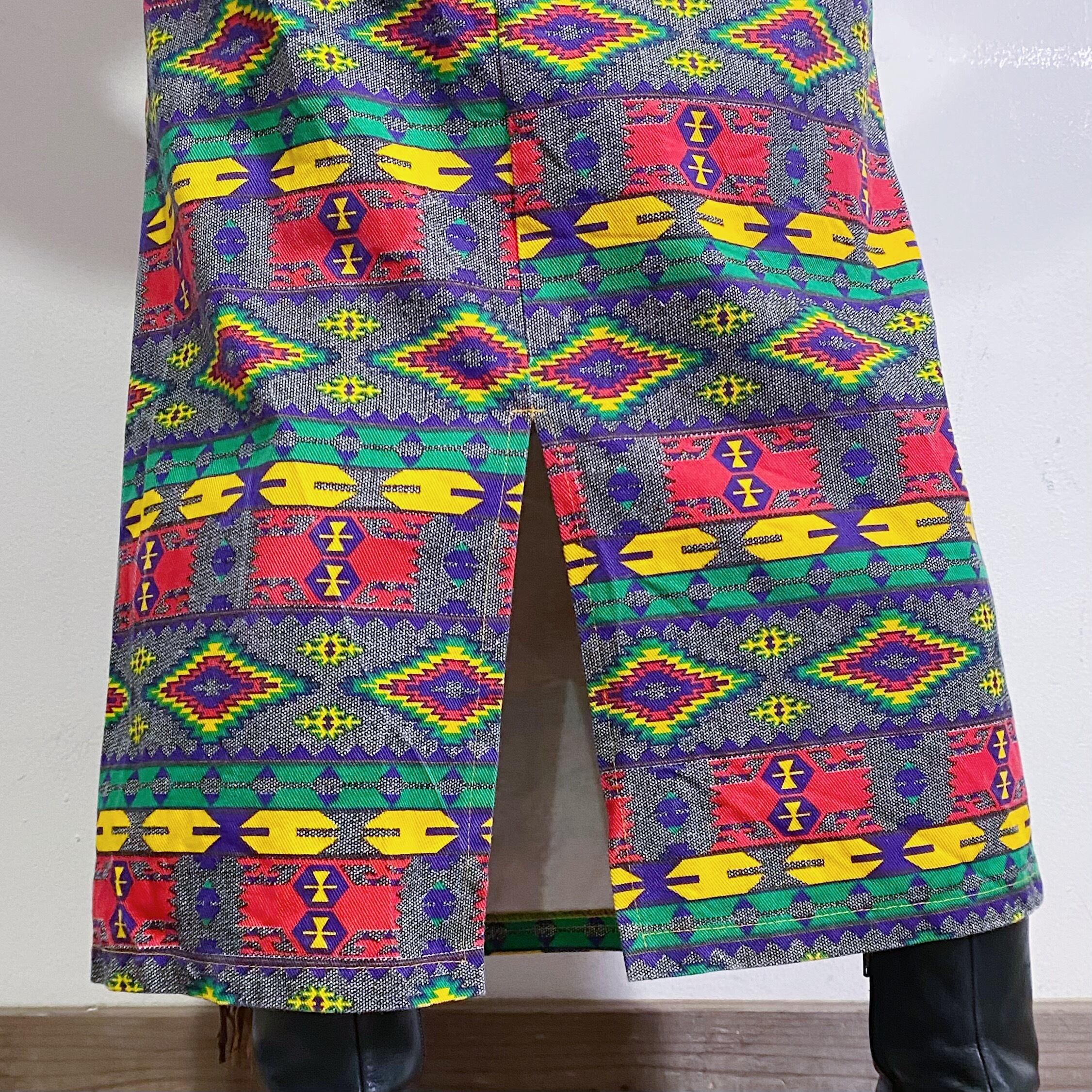 80s native printed fringe long skirt