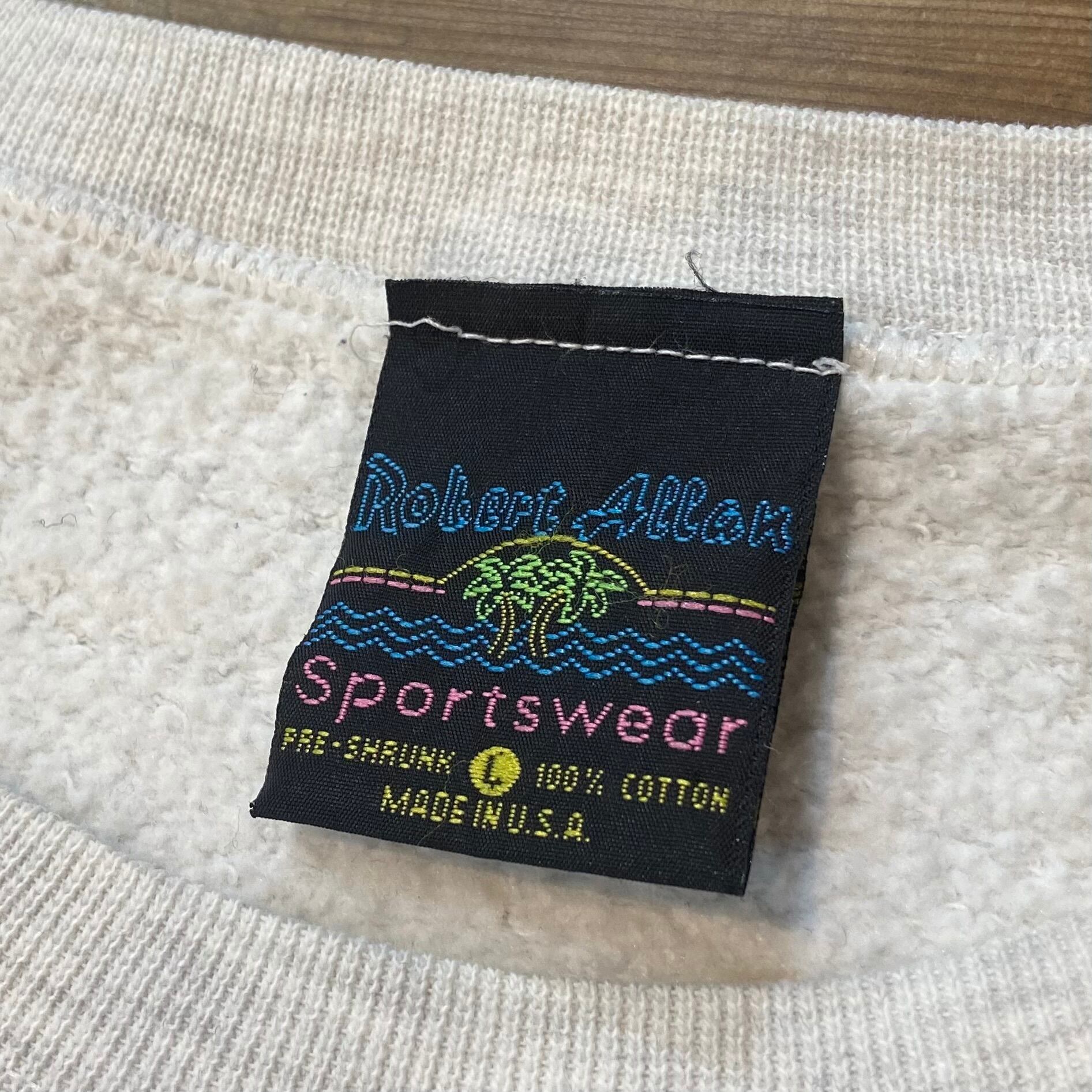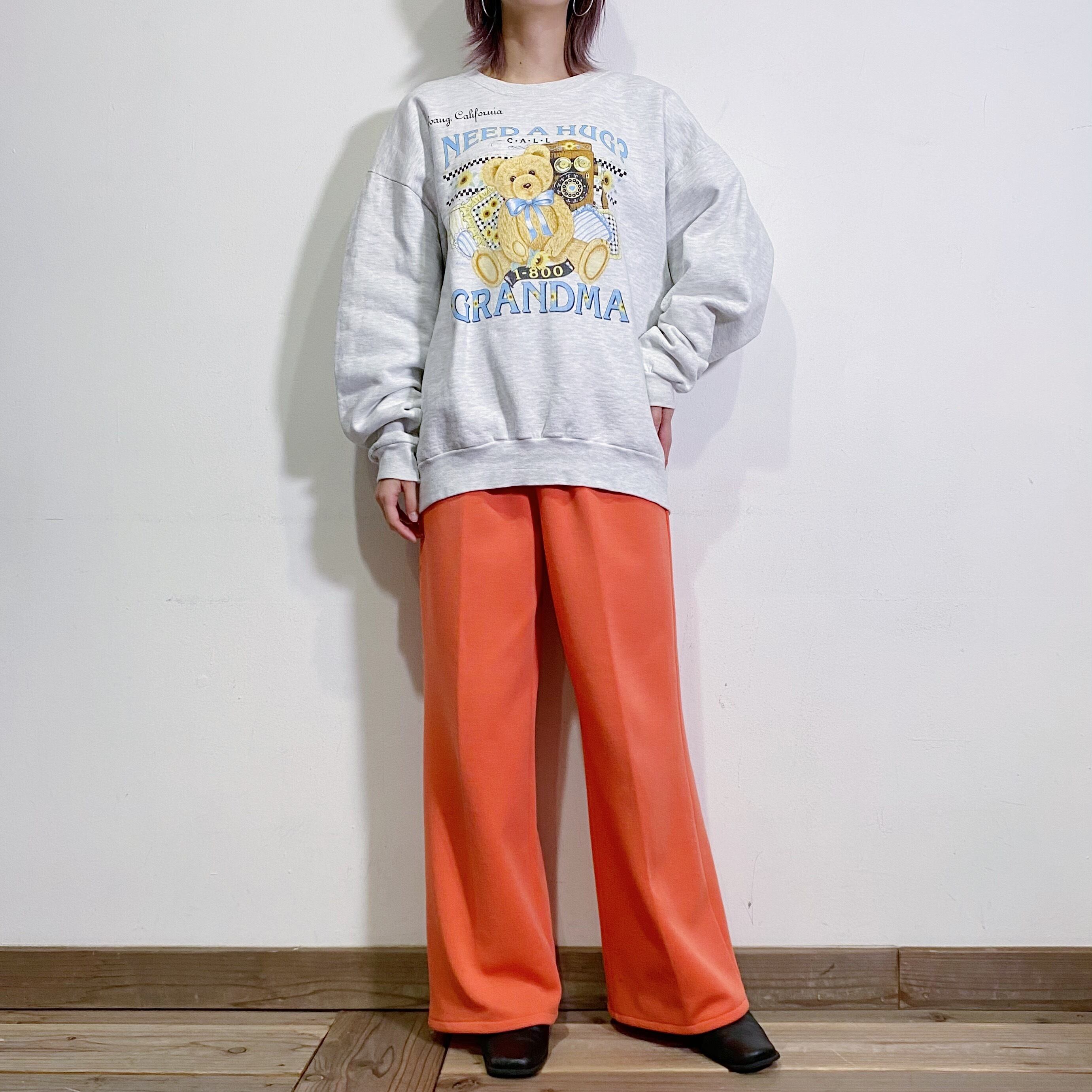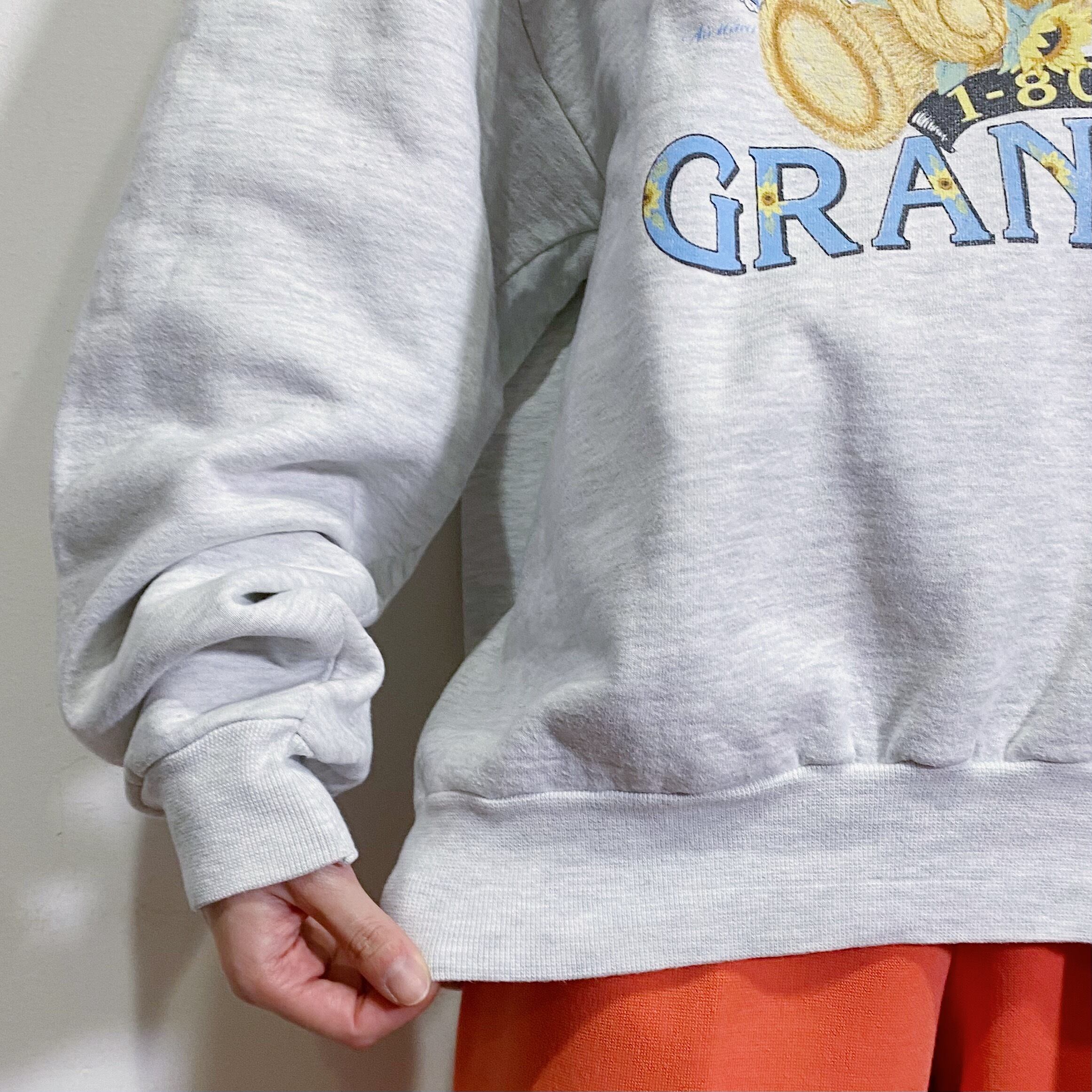 ベアのぬいぐるみとカントリーなインテリアのプリントが可愛い、80年代のスウェットです。