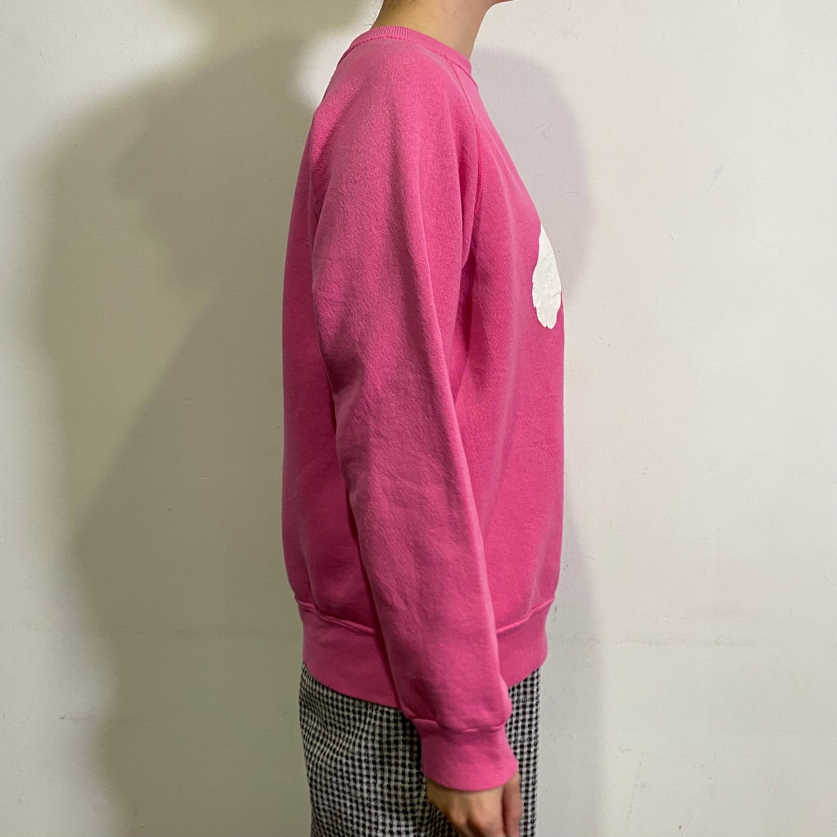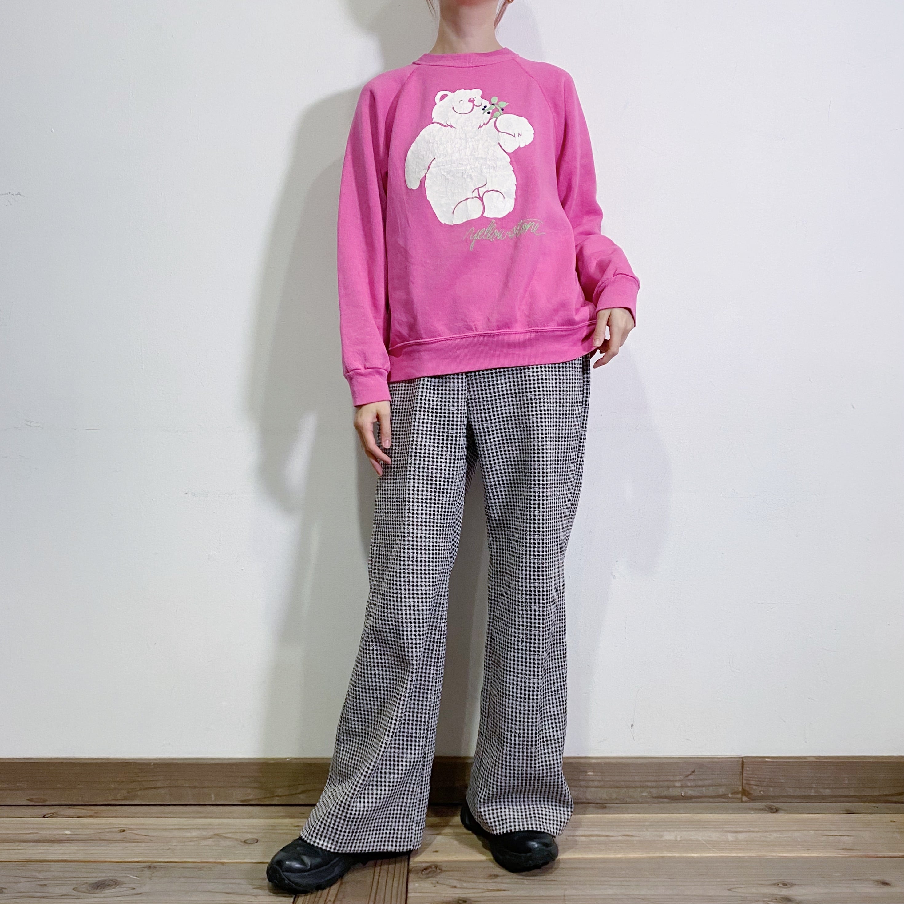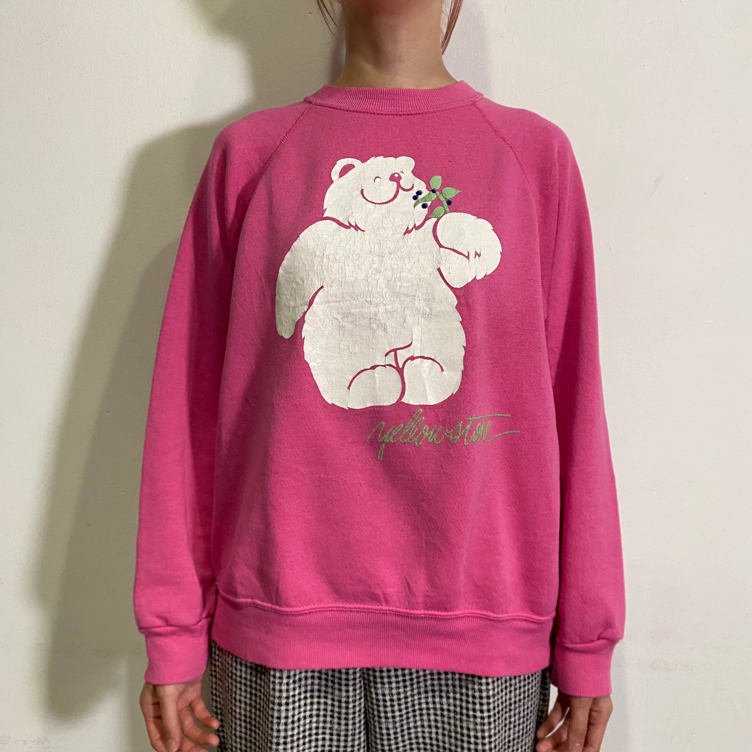少しビビットなピンクカラーにホワイトの大きなクマのプリントがキュートな、80年代のスウェットです。