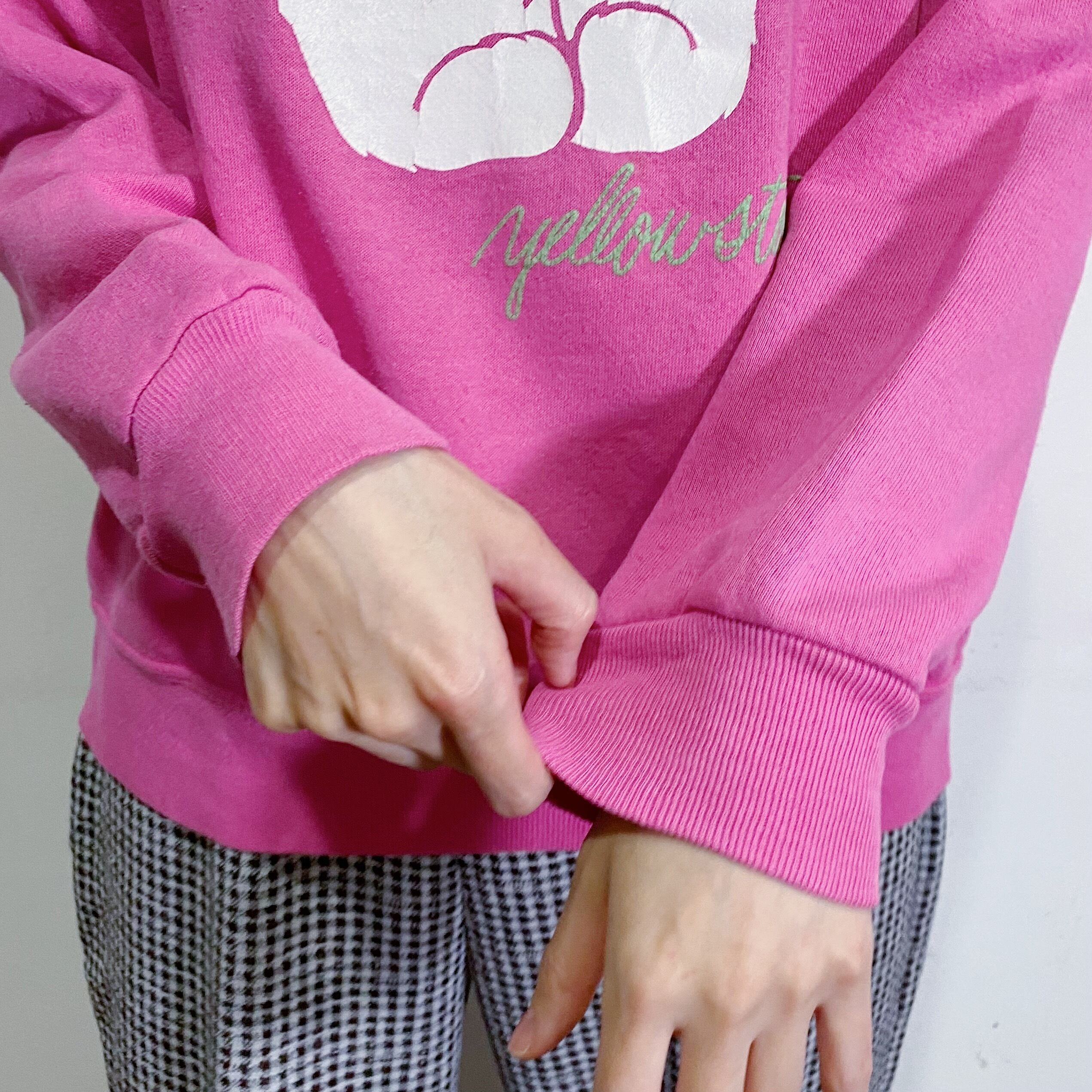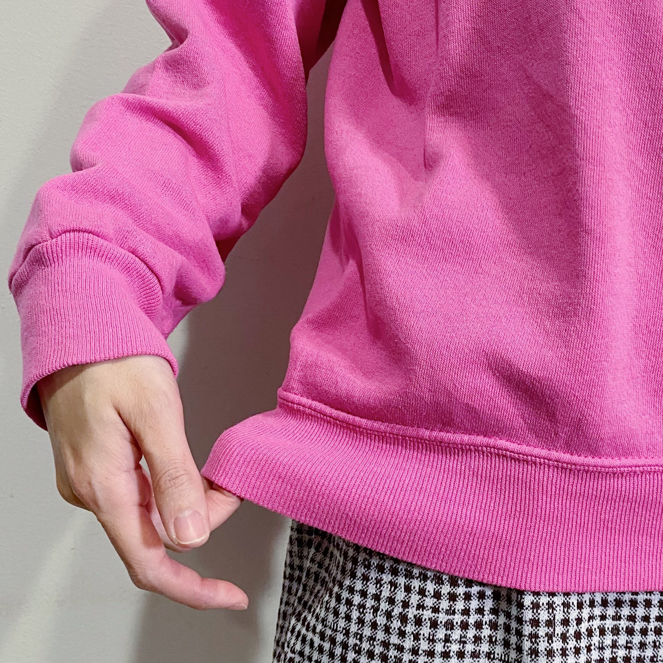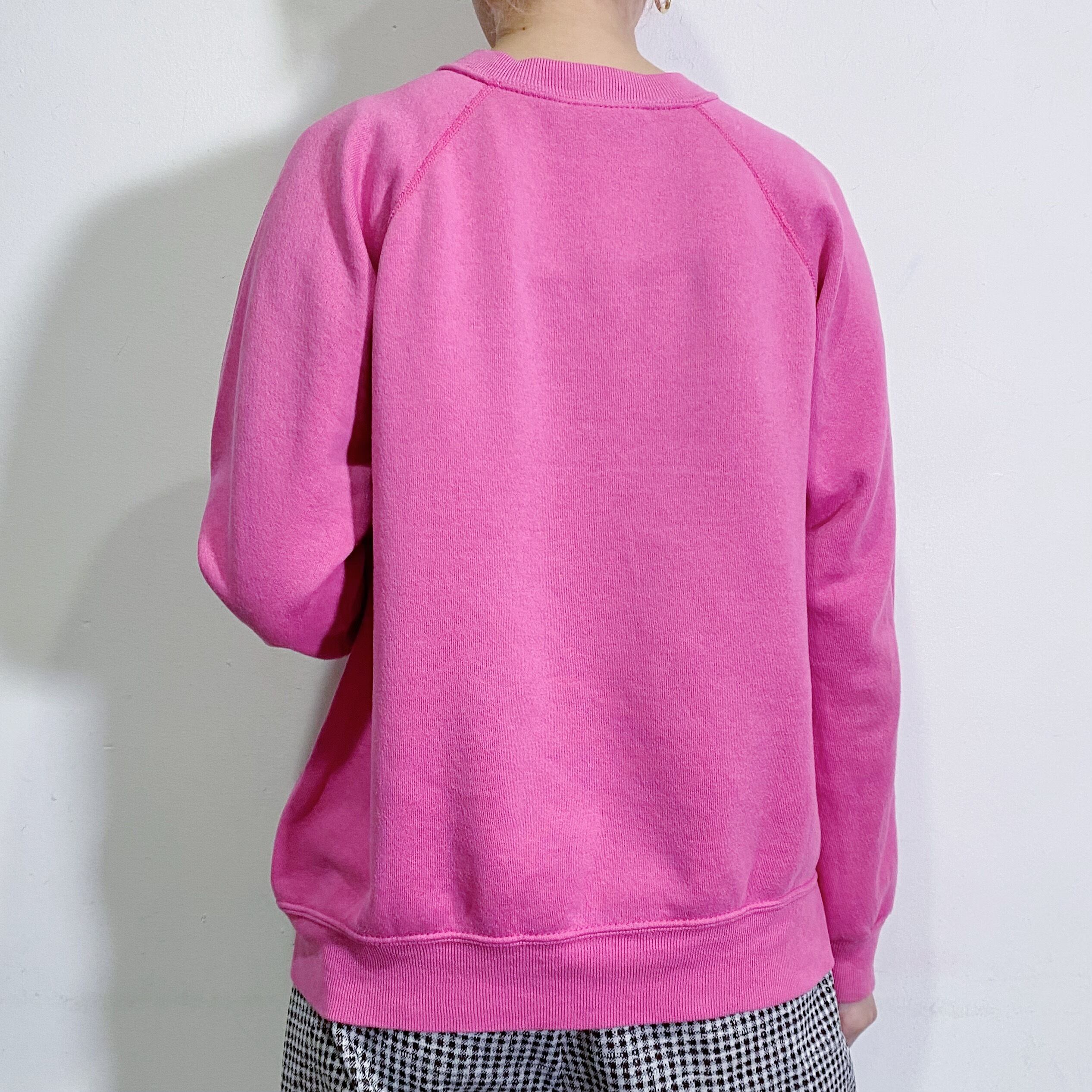 少しビビットなピンクカラーにホワイトの大きなクマのプリントがキュートな、80年代のスウェットです。
