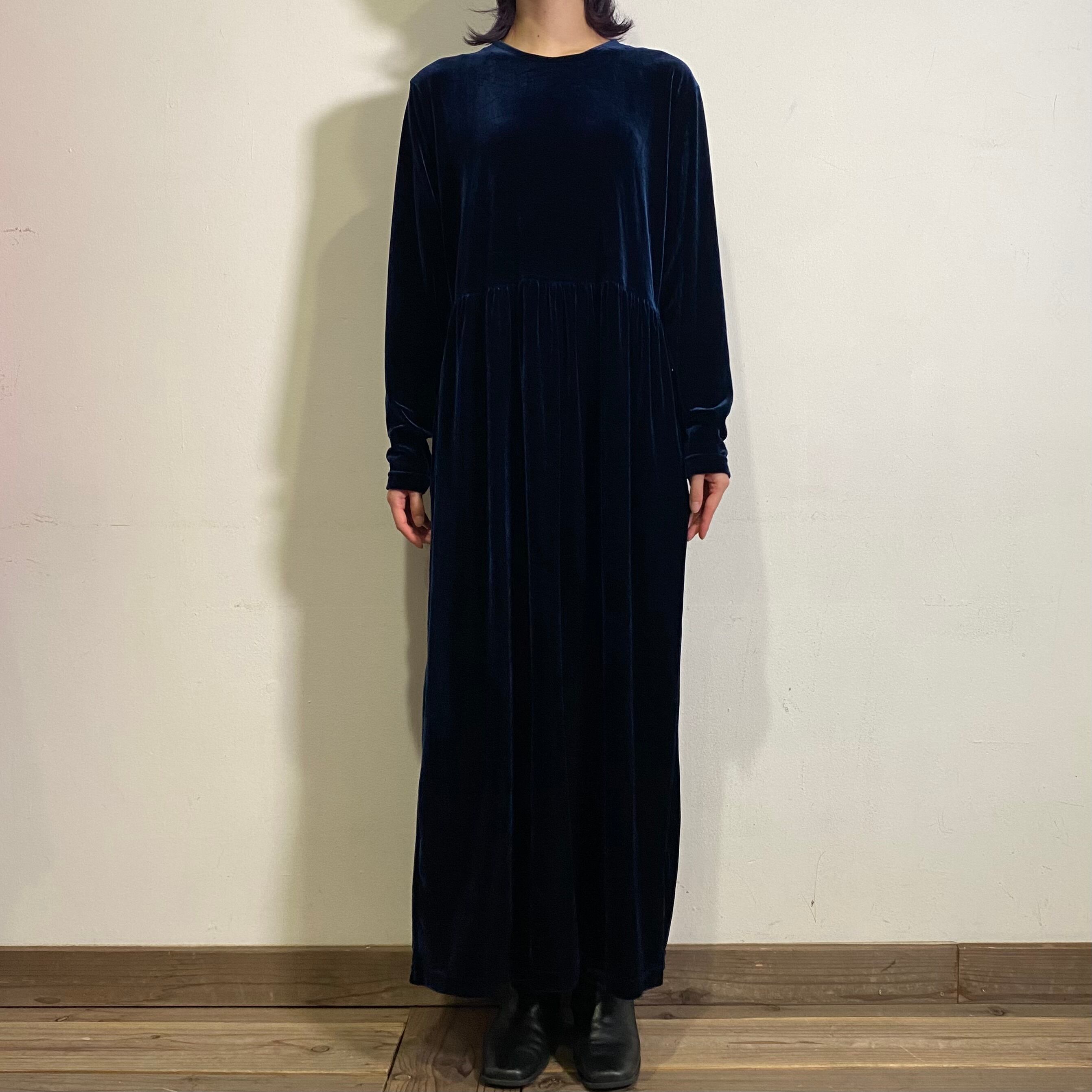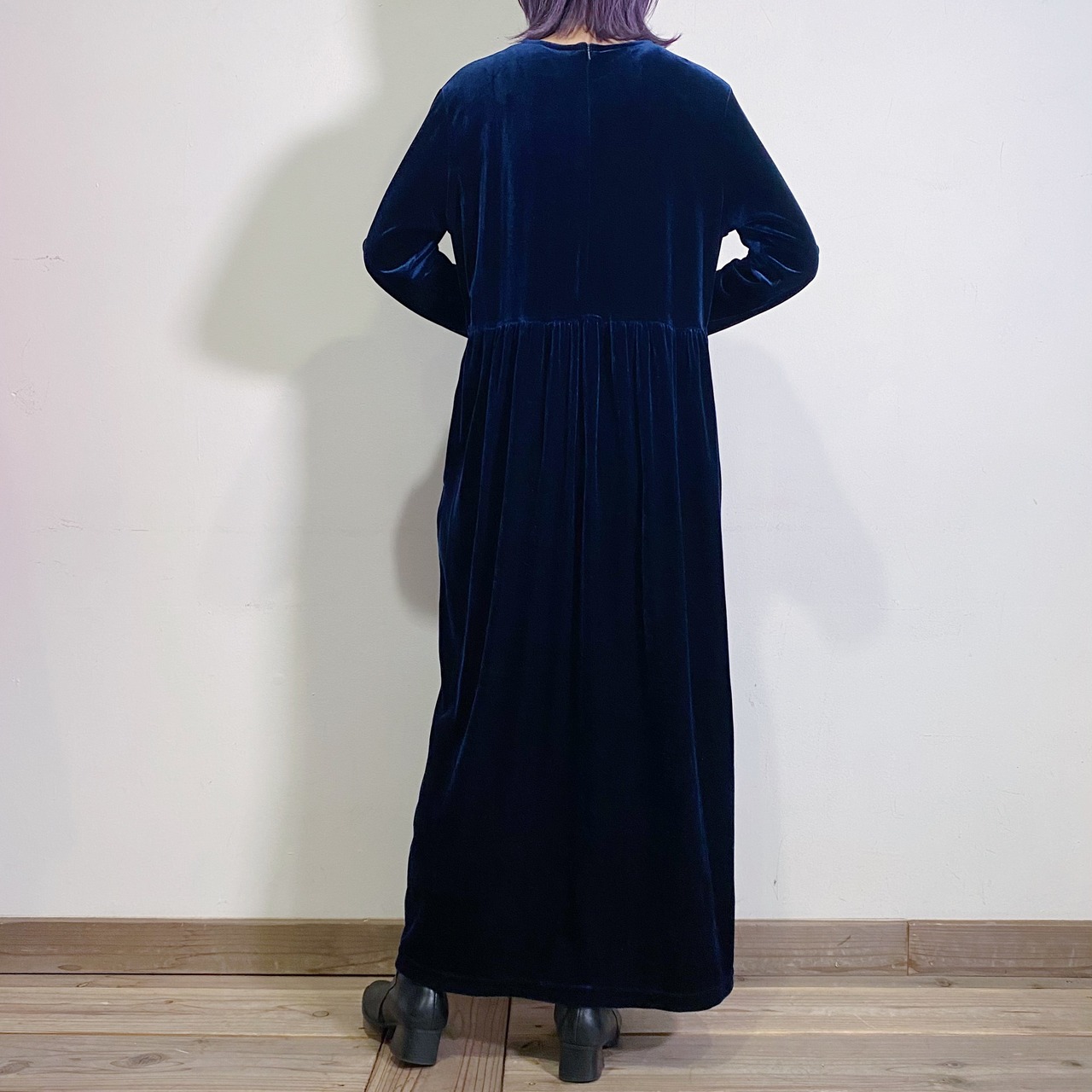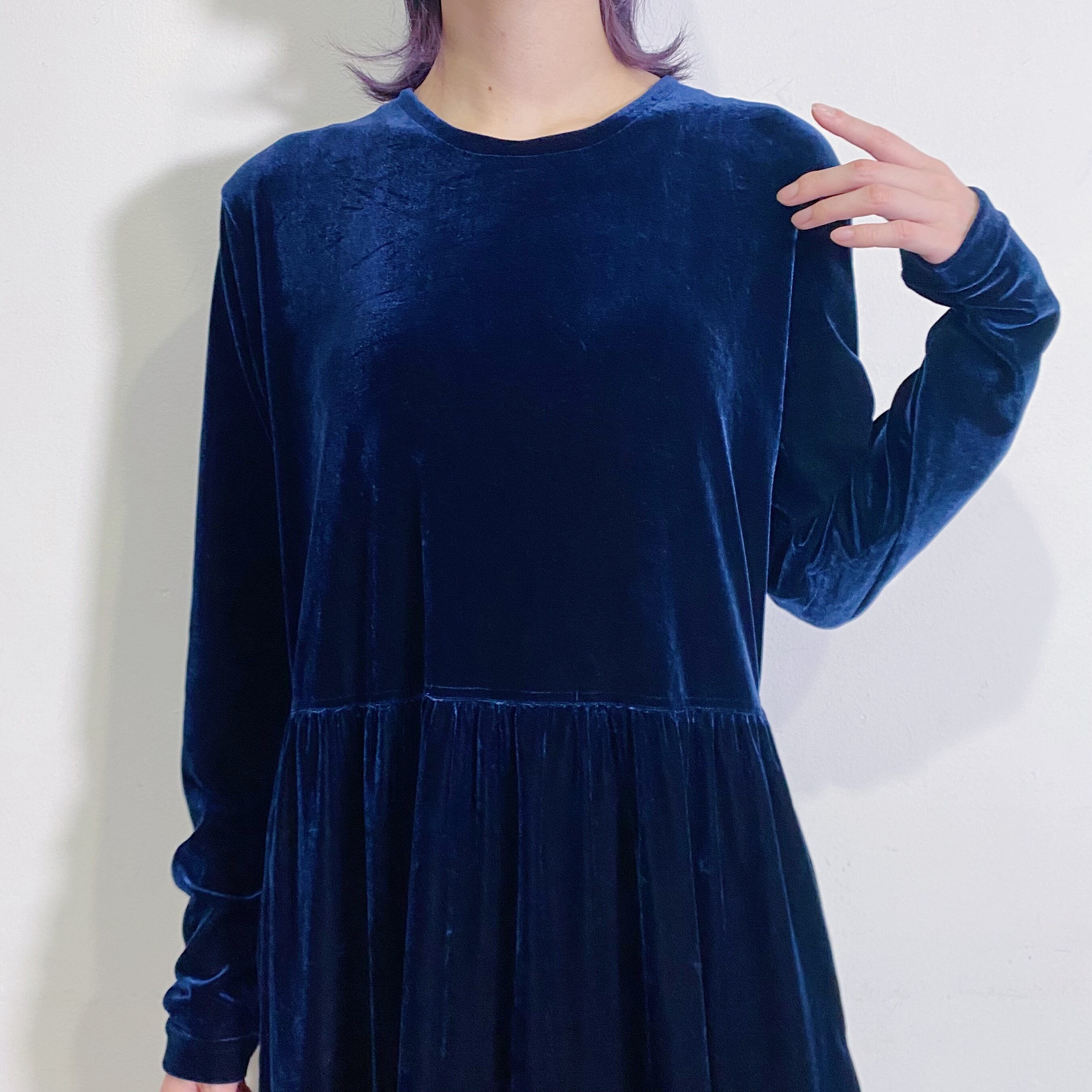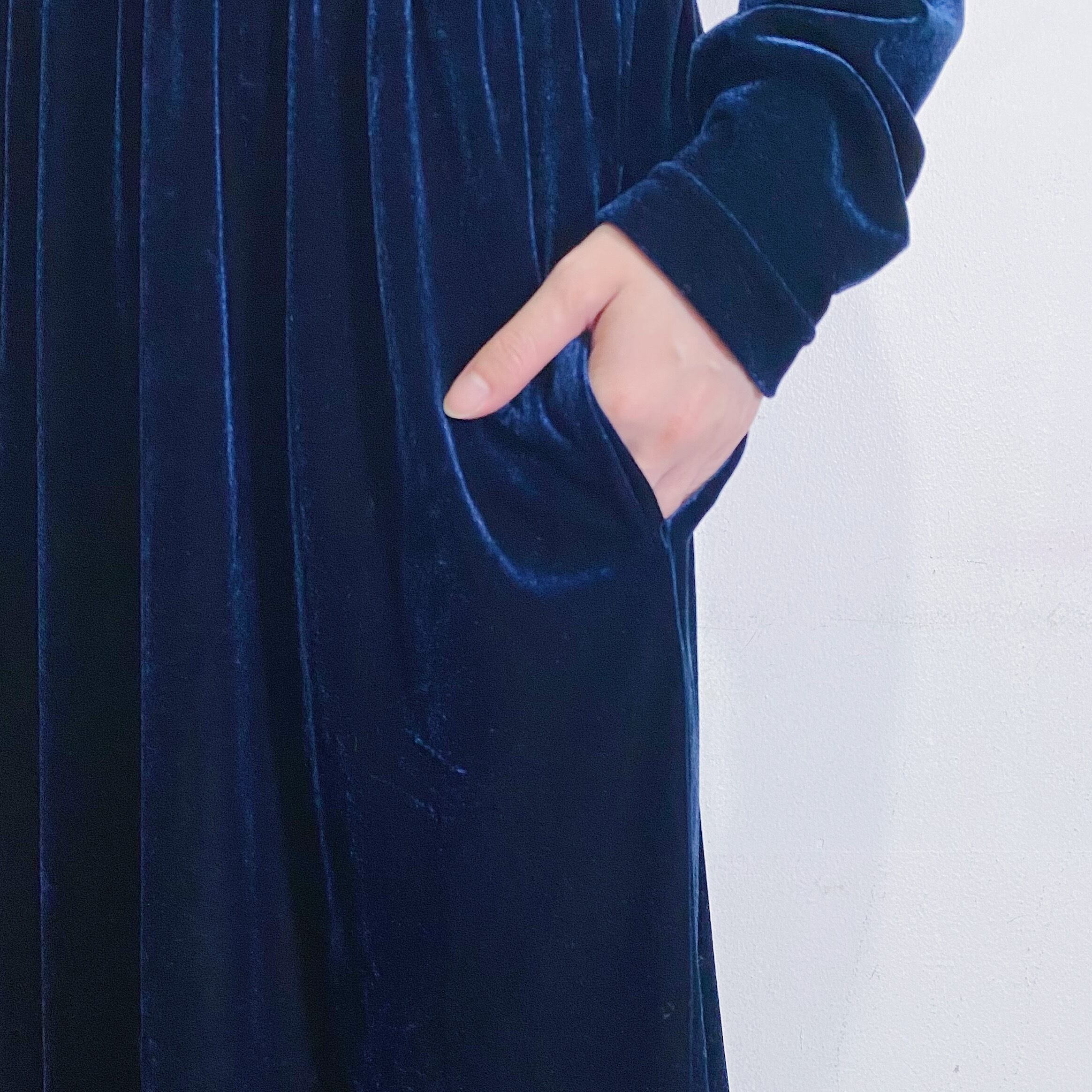 濃い目のネイビーカラーにベロア特有の光沢感が加わって、高級感のある一枚。