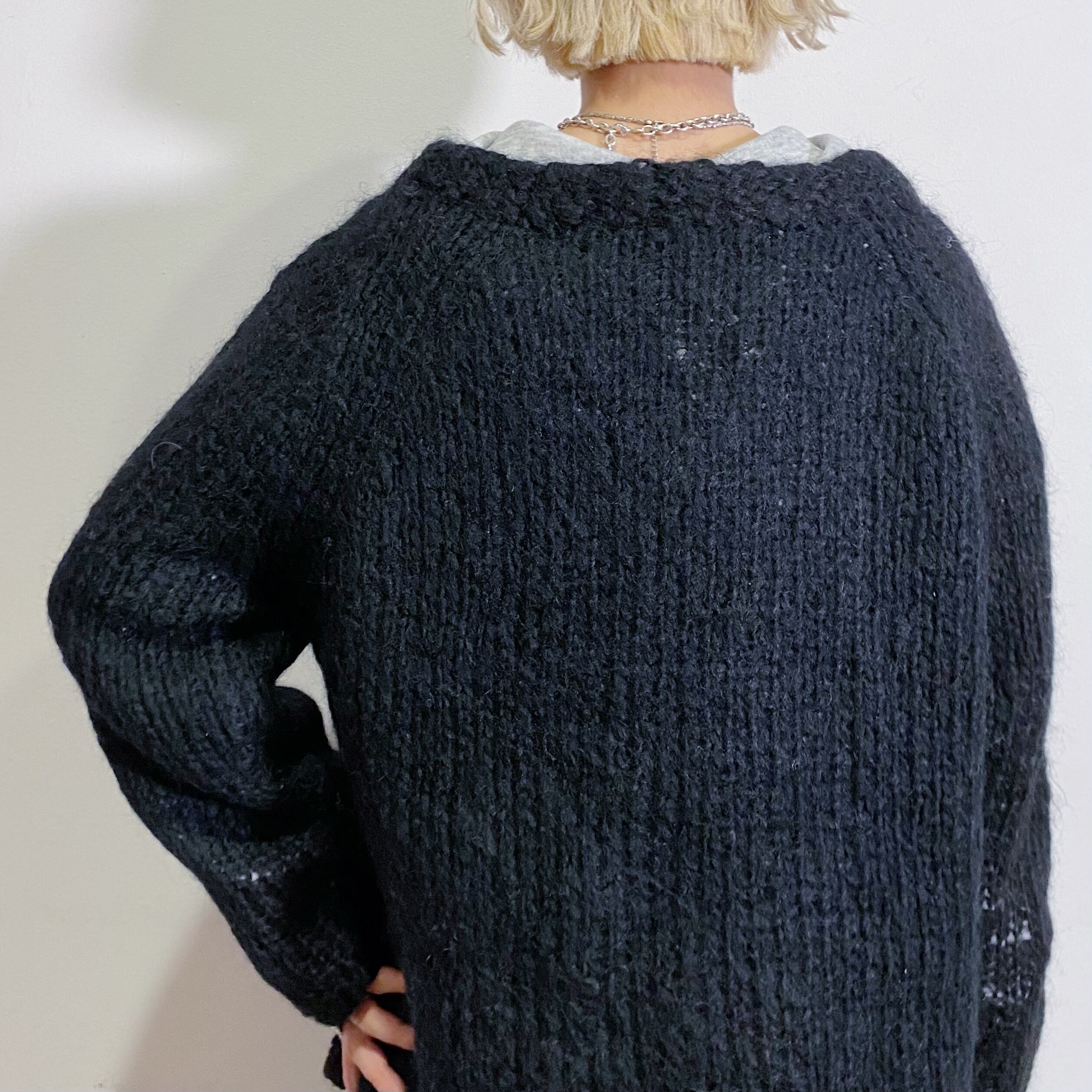 モヘア特有のふわふわ感や編み模様が可愛い一枚です。