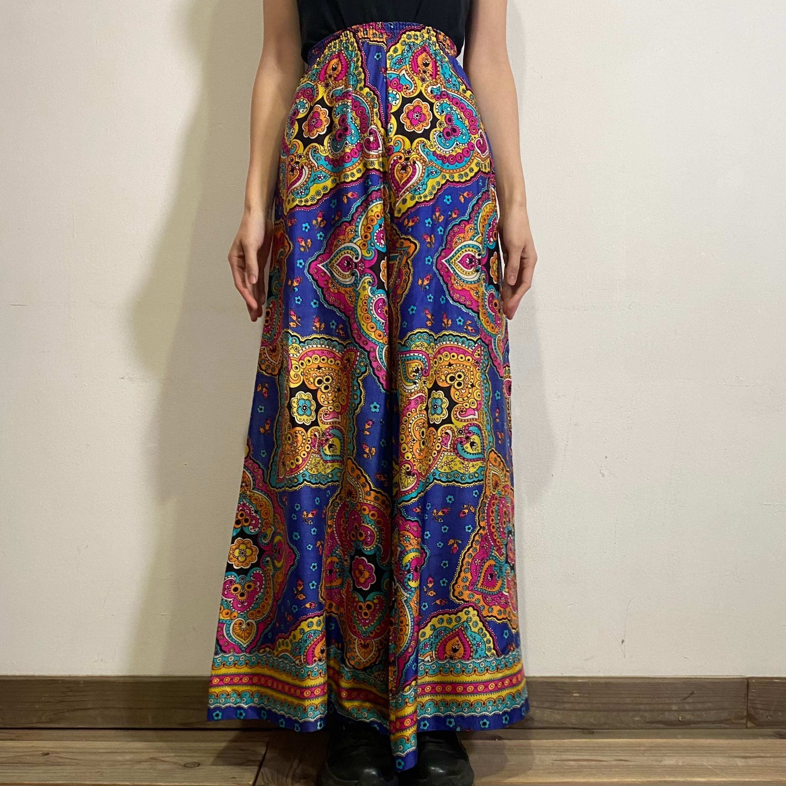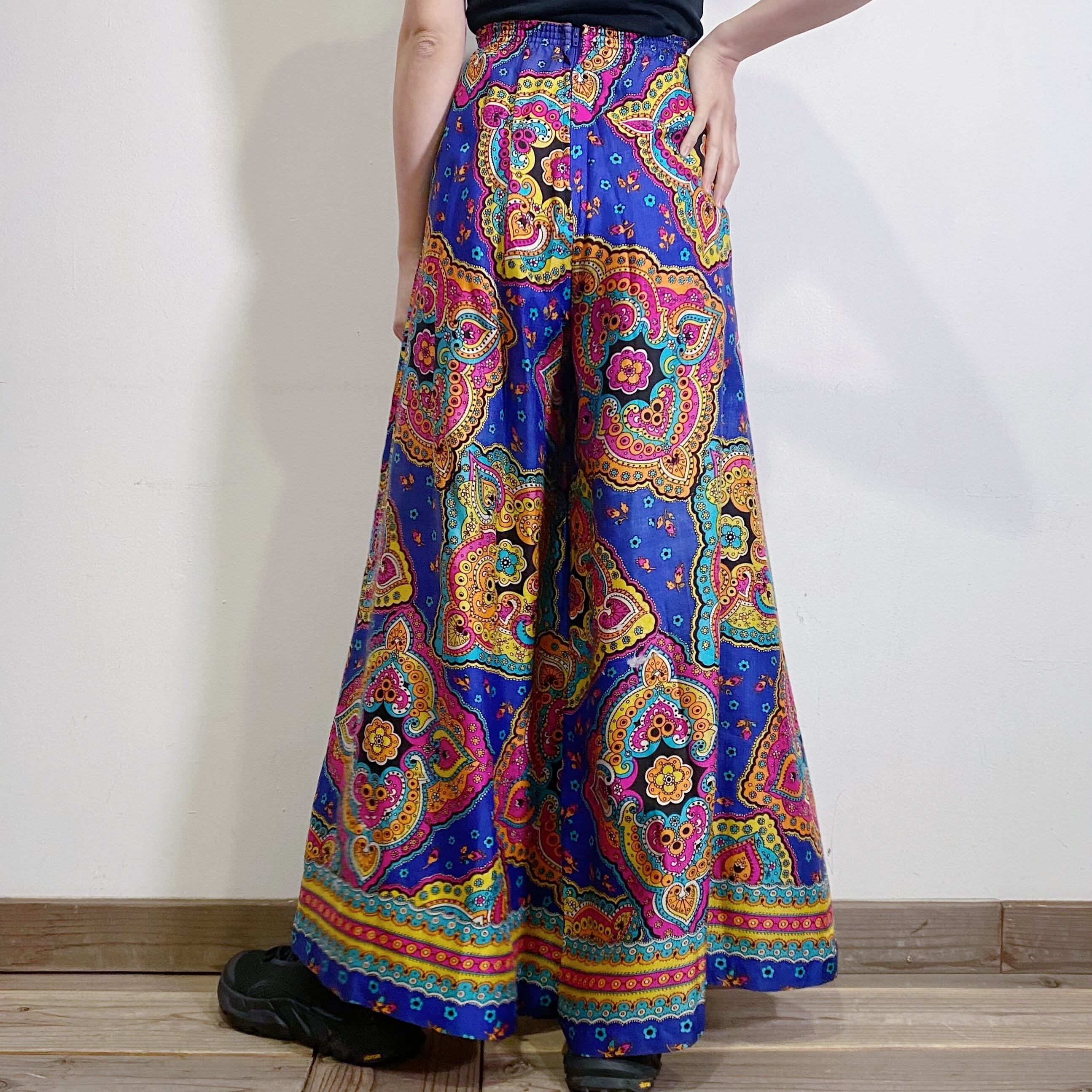 サイケなテキスタイルがとっておきに可愛い、70代のフレアパンツです。