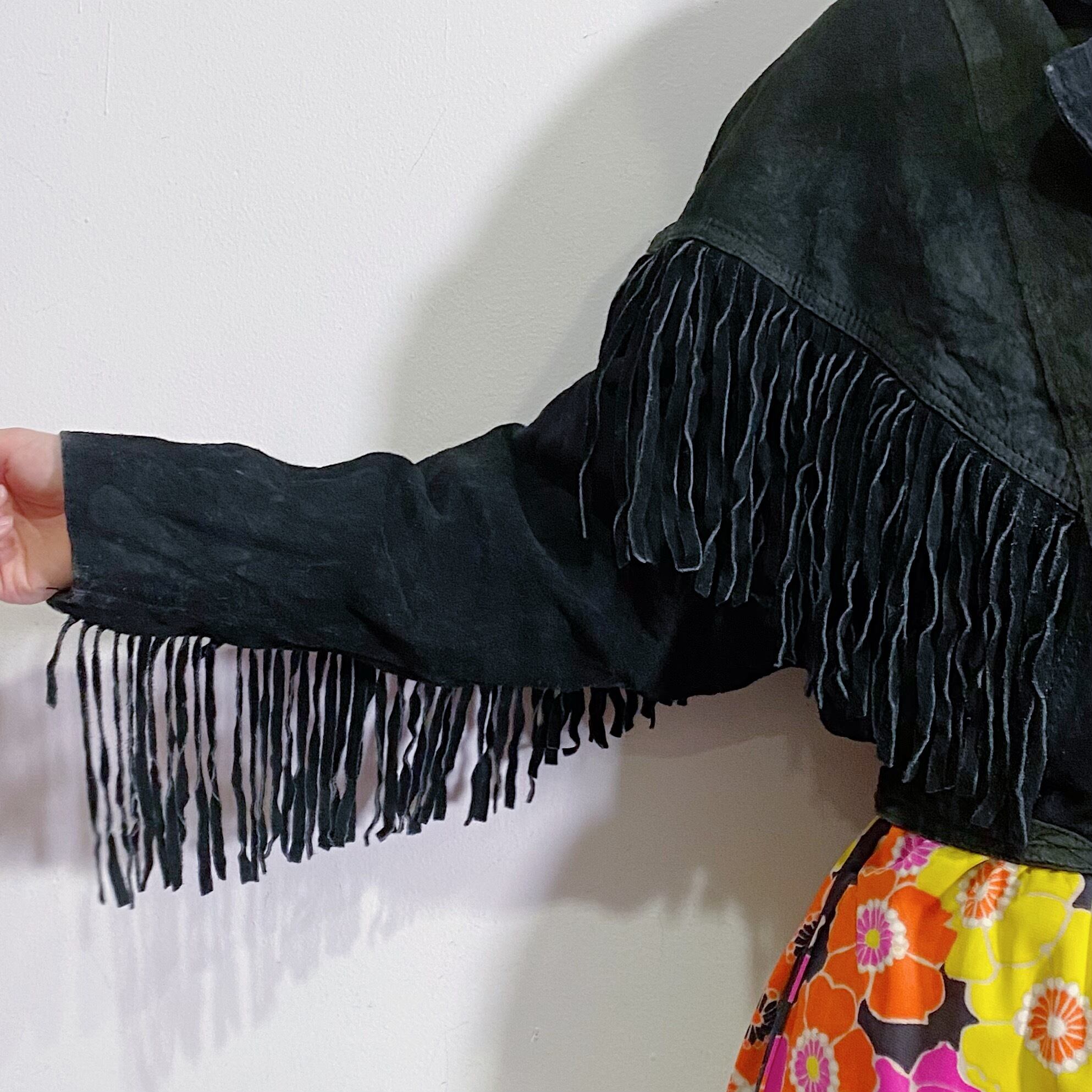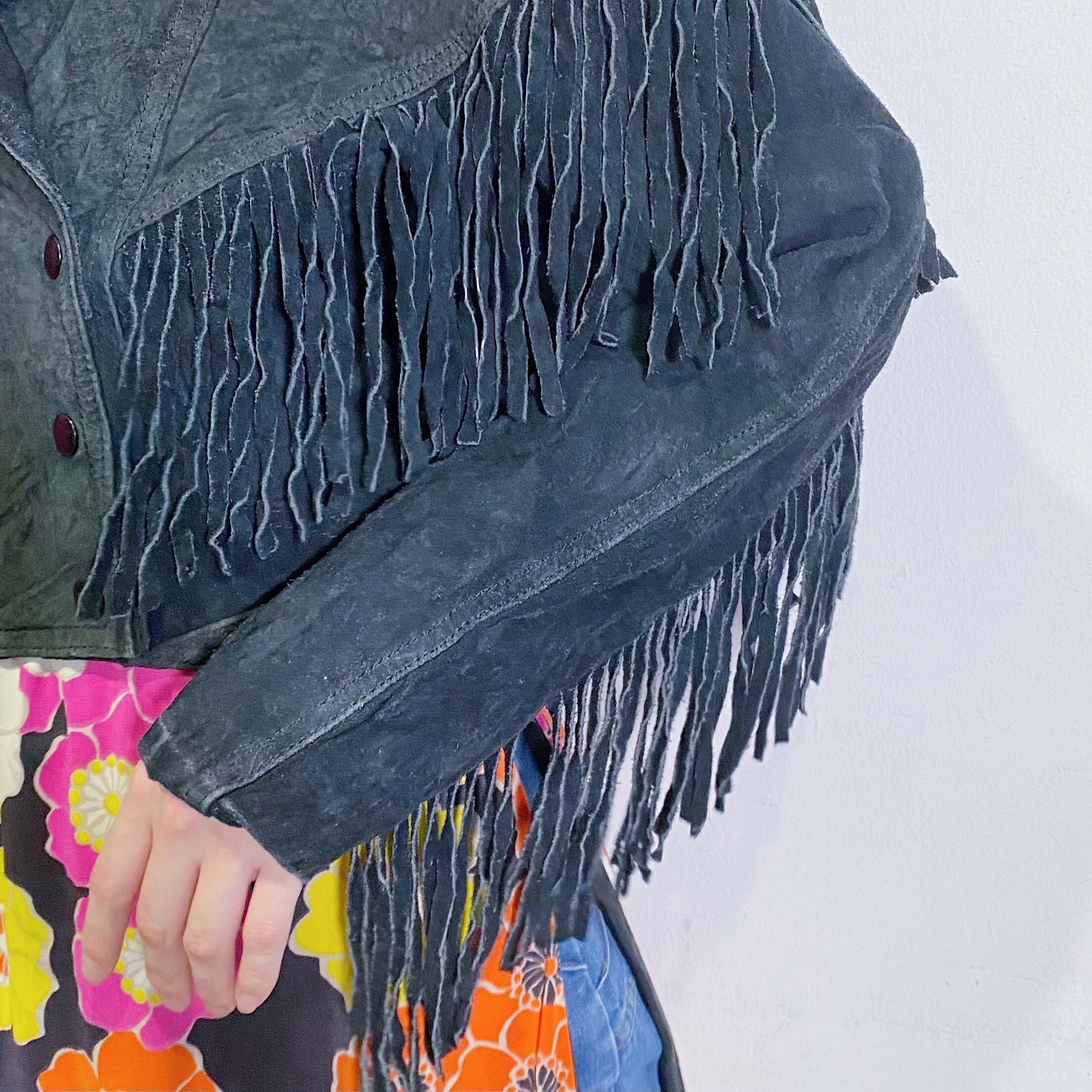 フロント・お袖・バックの全面に付いたフリンジが、フリフリと程よく揺れてとっても可愛い一枚。