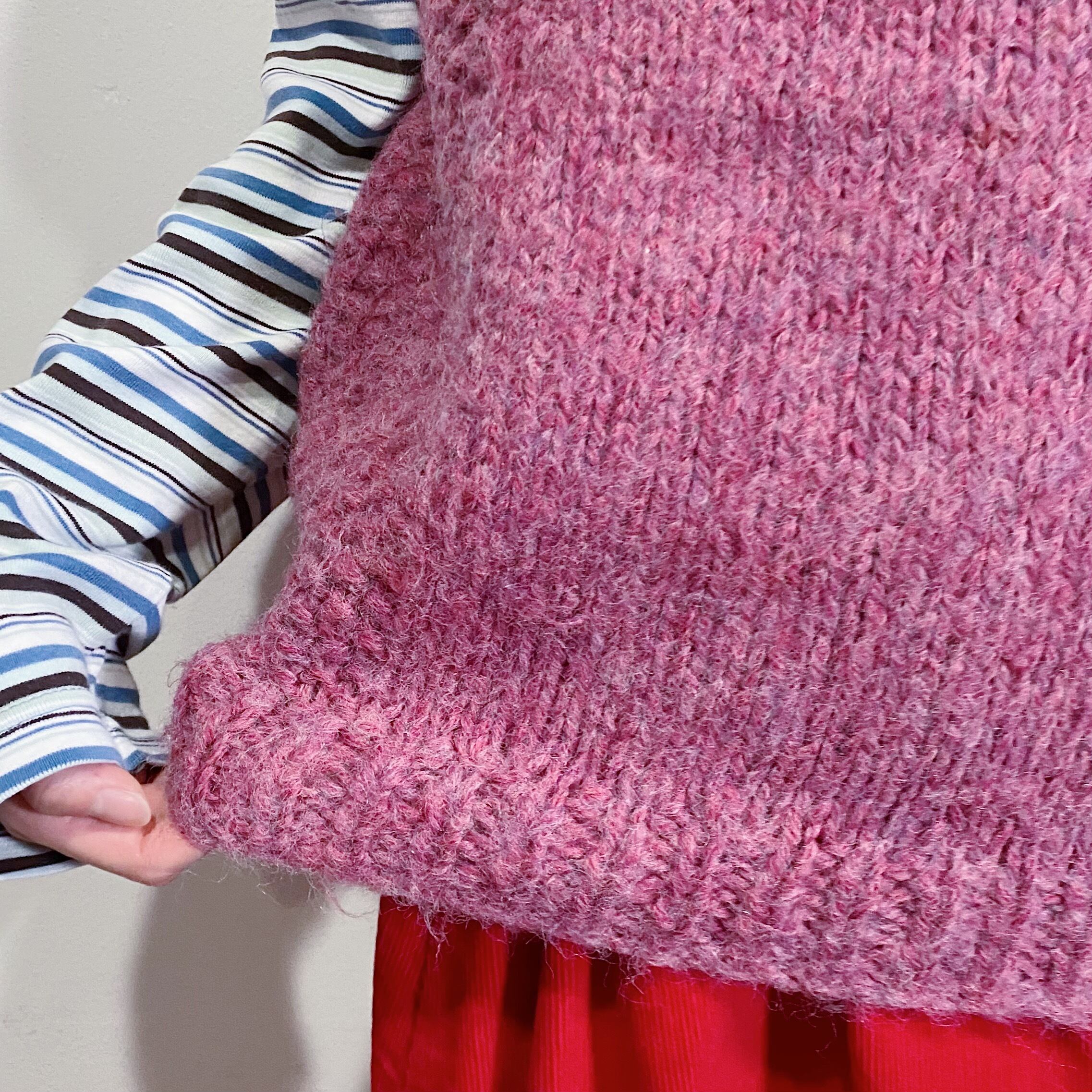 こちらは当時の手編みのもので、ピンクの色合いも可愛くあたたかな一枚となっております。