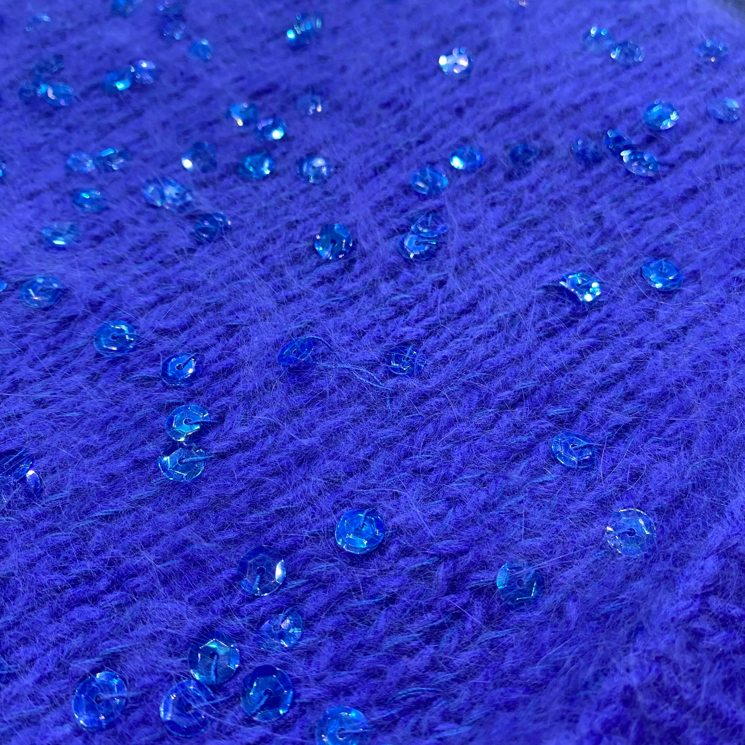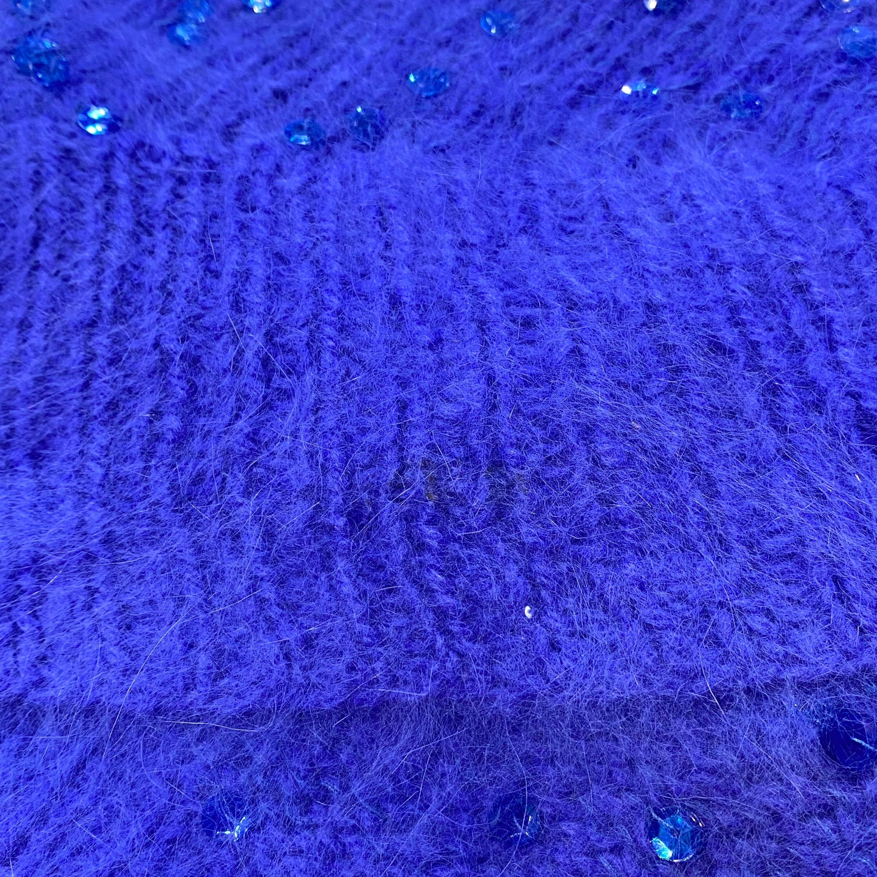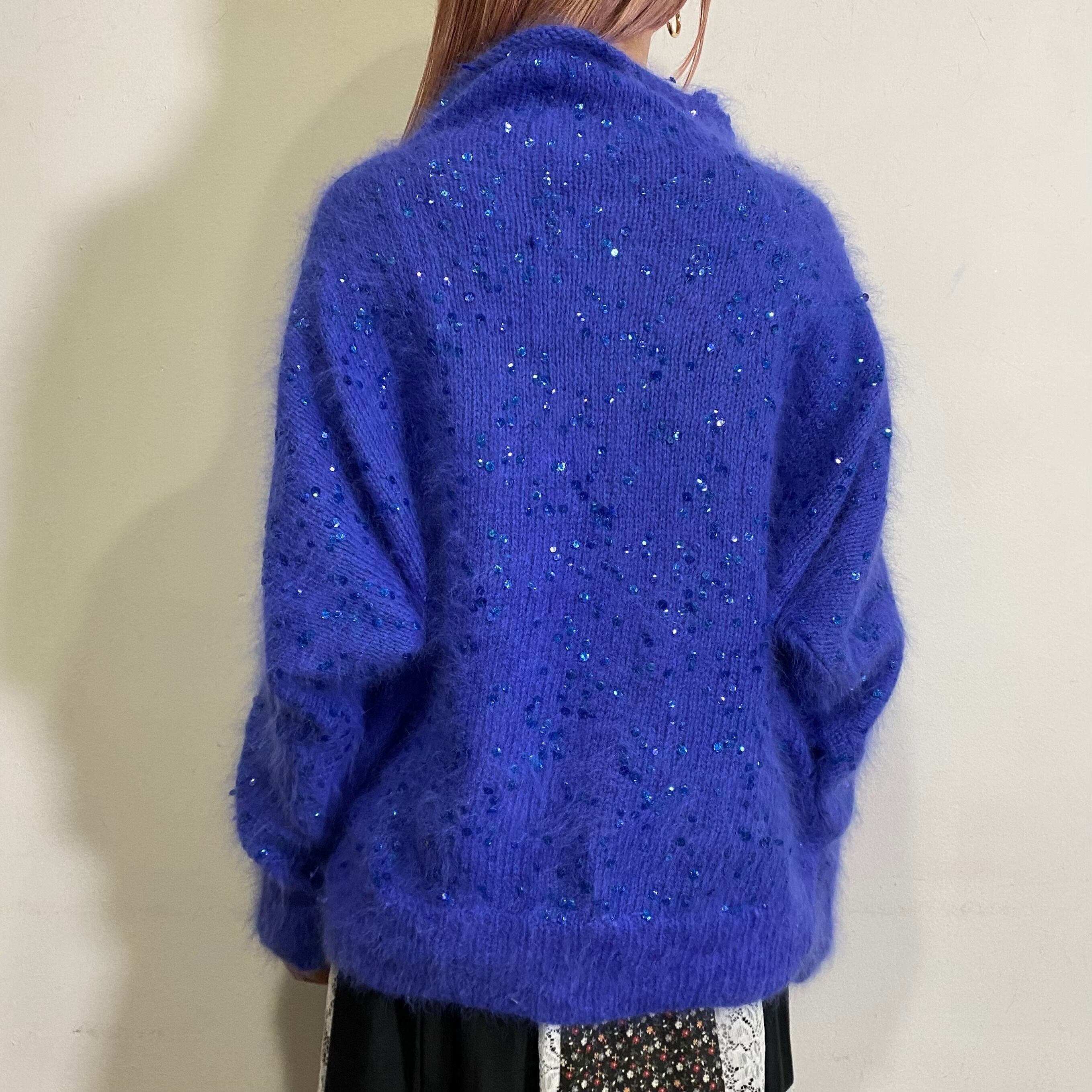 80s blue beads Angora rabbit fur knit sweater