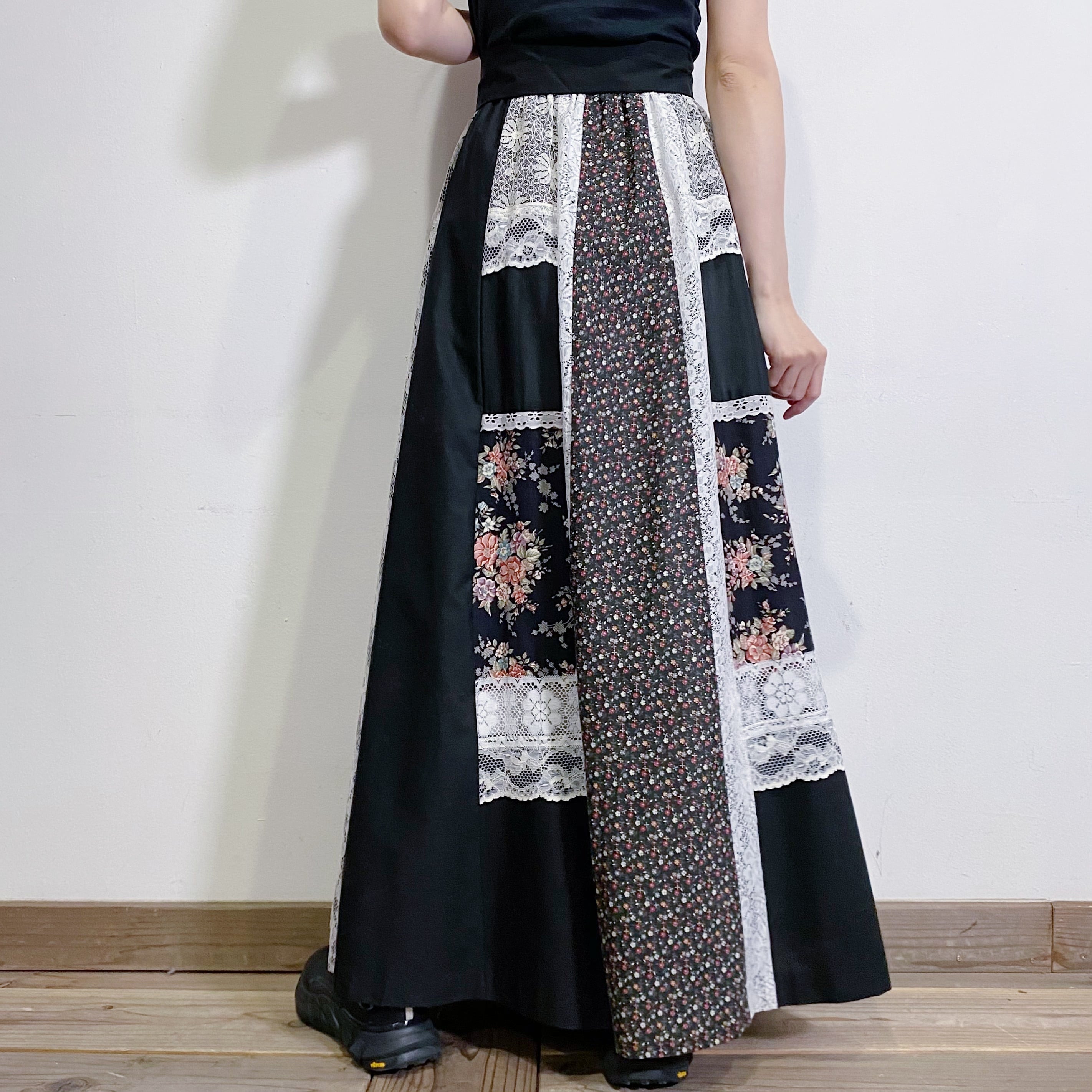 花柄やレースなどのパッチワークが可愛い、70年代のスカートです。