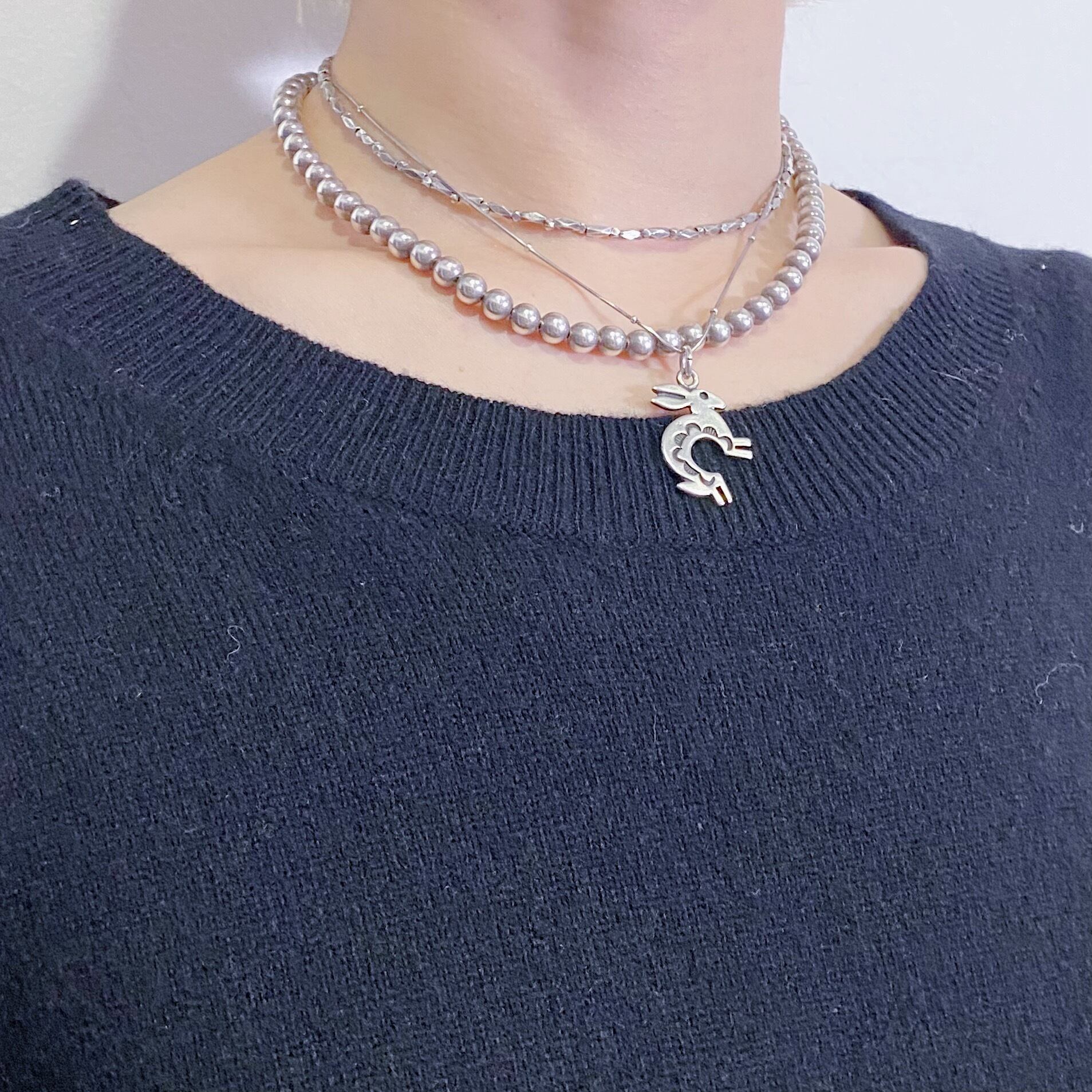 ブラックカラーで大変着こなしやすく、着用写真のような柄アイテムとも相性良く着ていただけます。