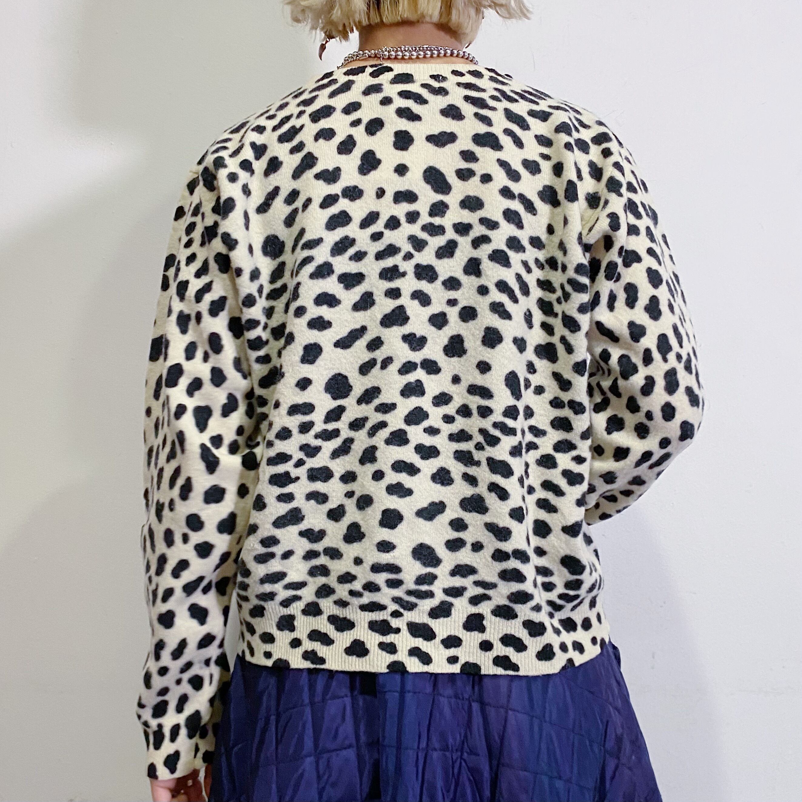 ダルメシアンや牛のような黒白のアニマル柄が可愛い、ニットセーターです。