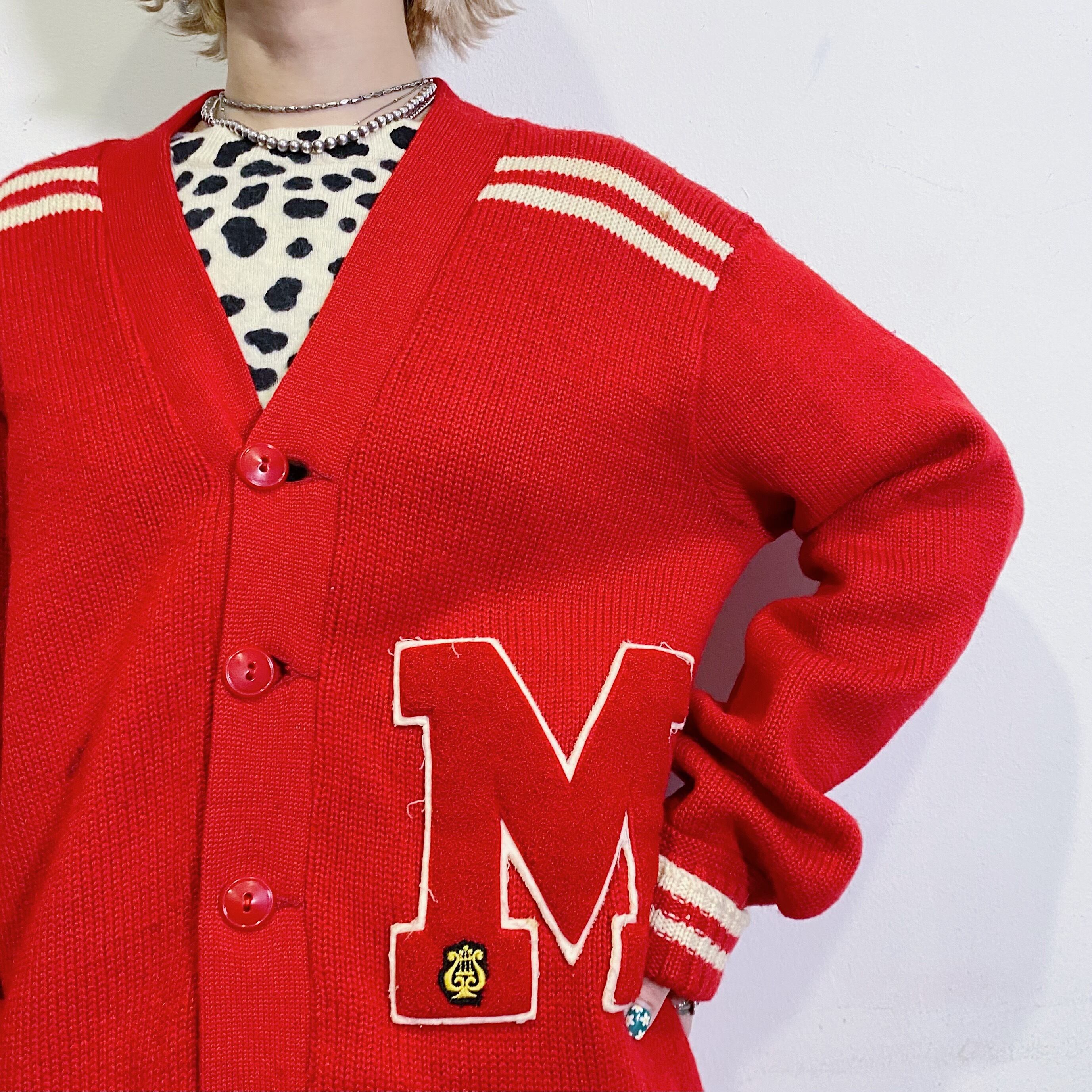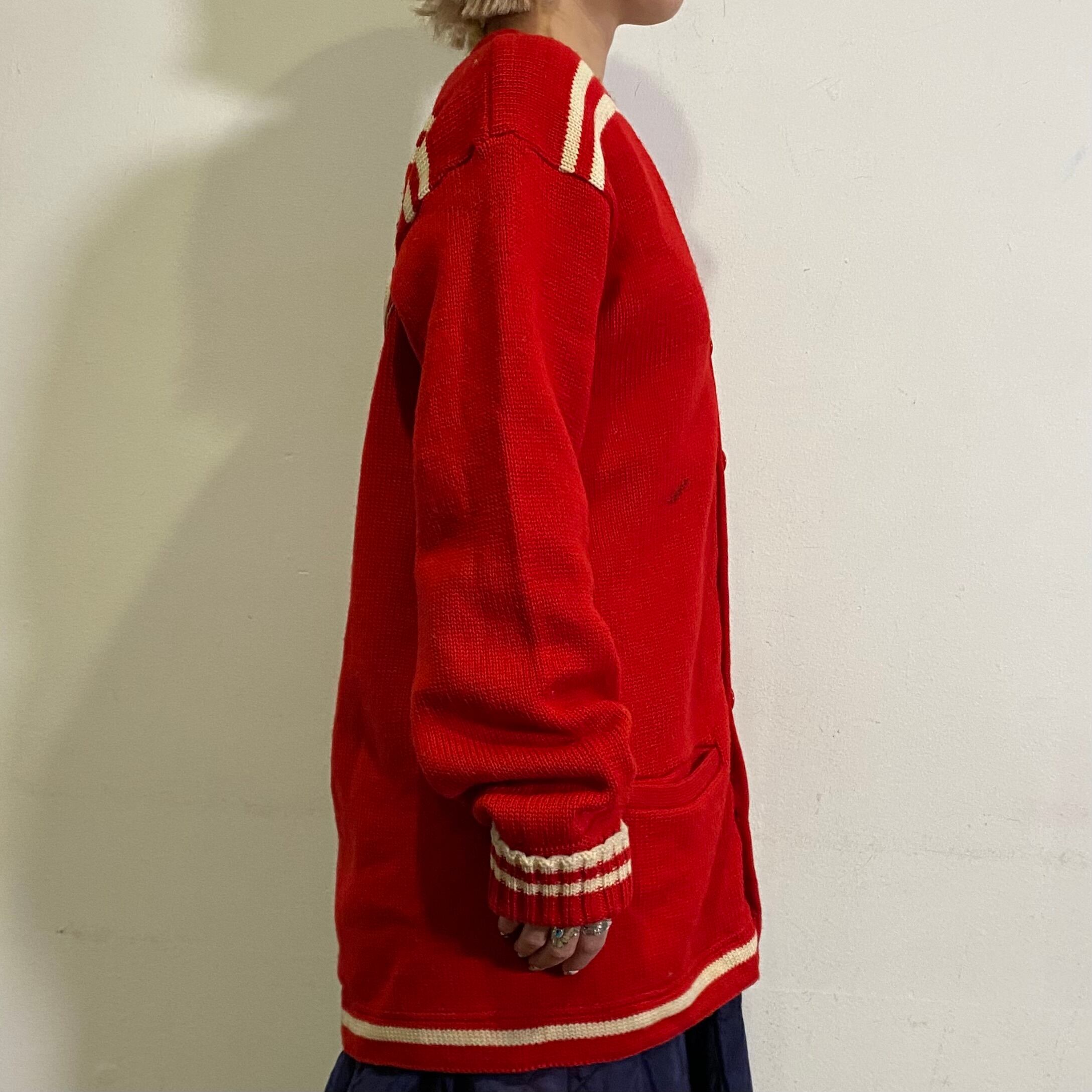 レッドとホワイトのカラーリングが可愛い、60年代のレタードカーディガンです。