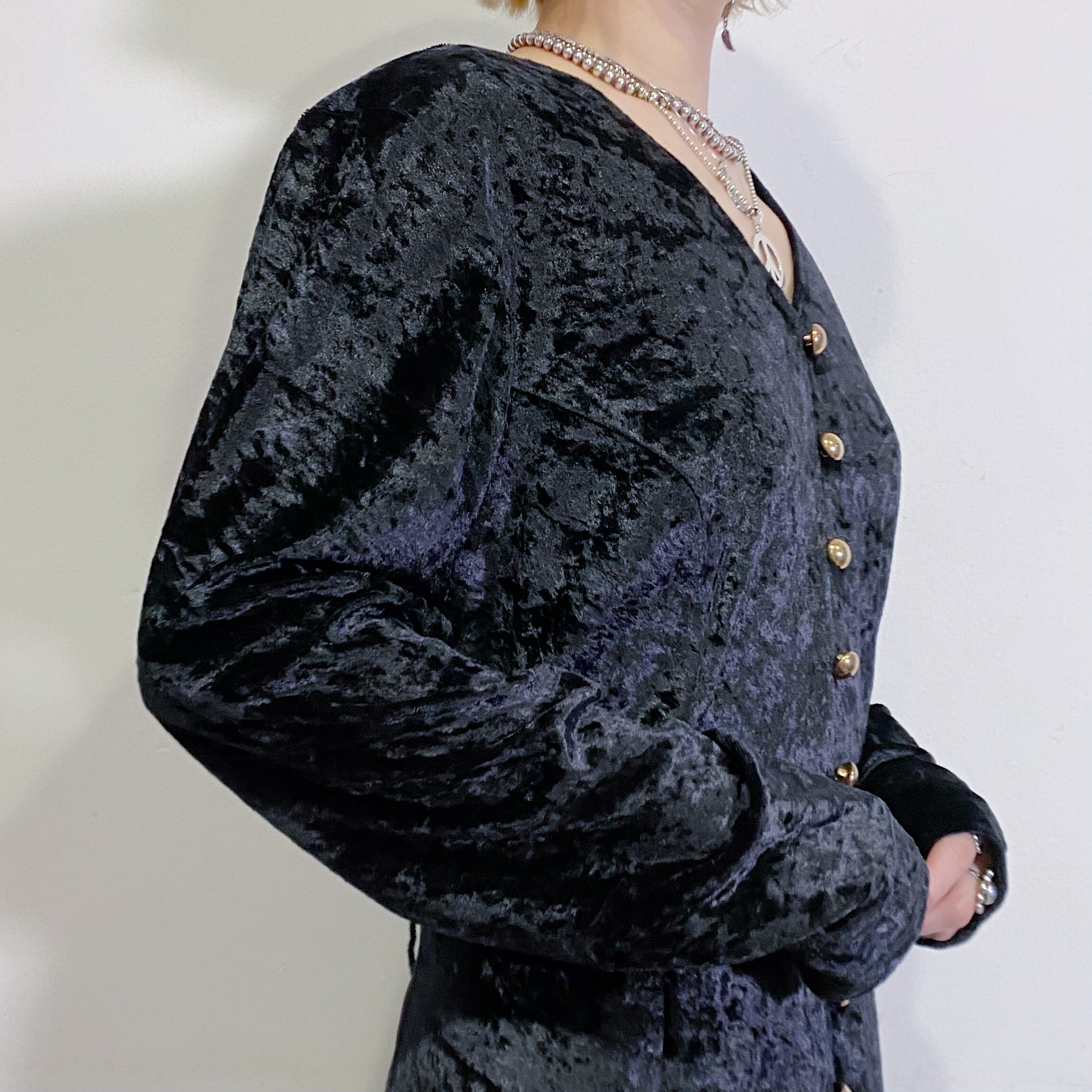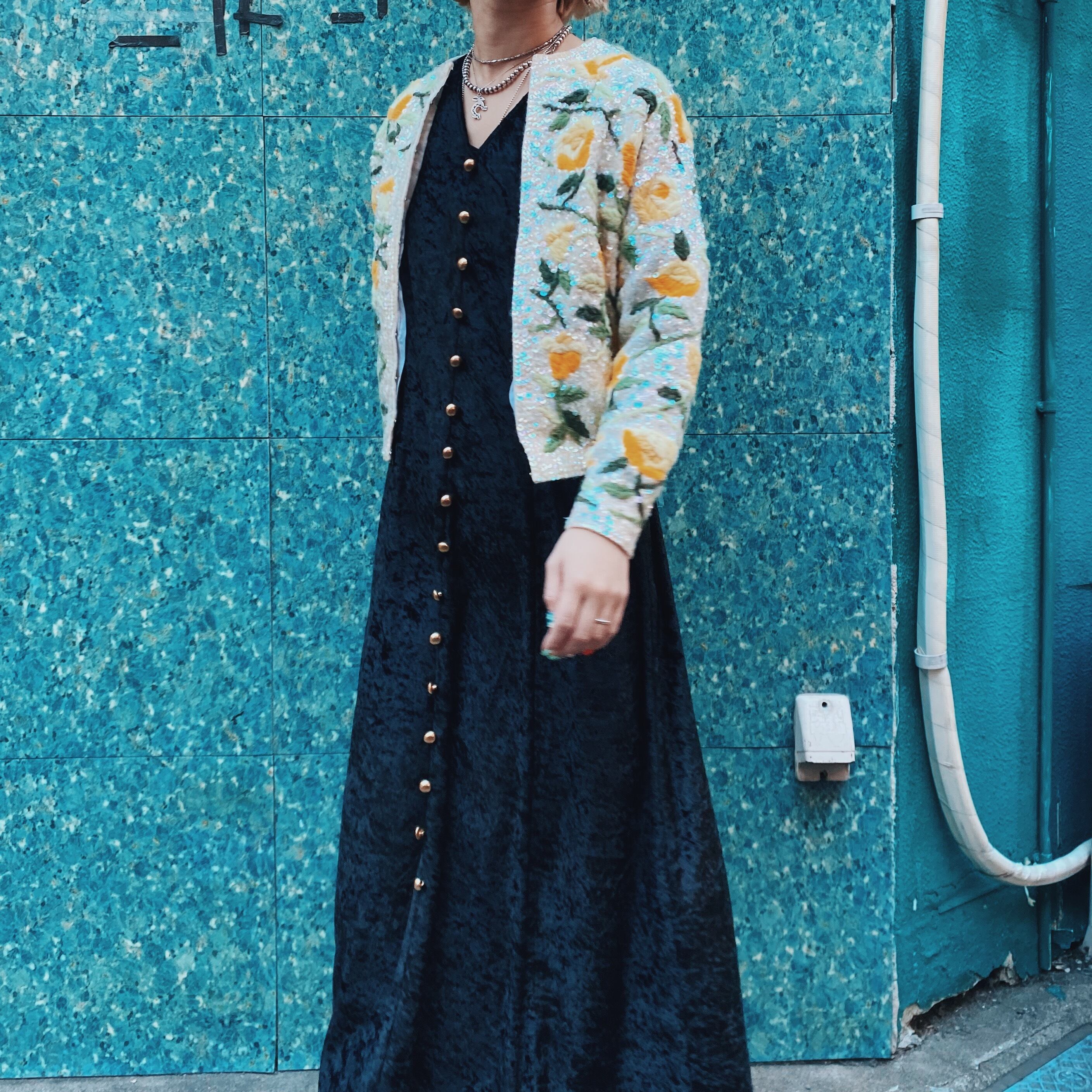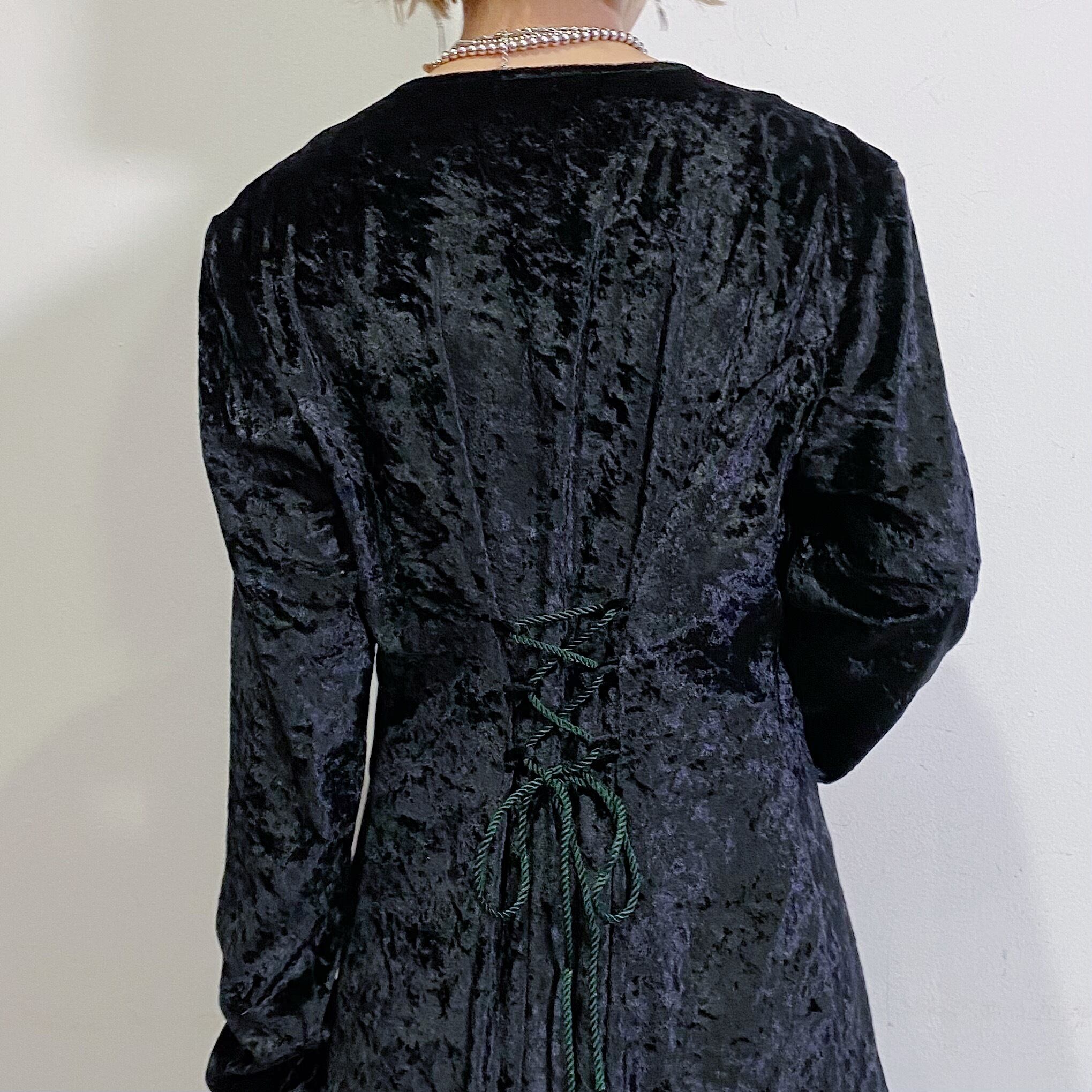 フロントに並んだゴールドボタンが80sらしく、バックのレースアップデザインも素敵。