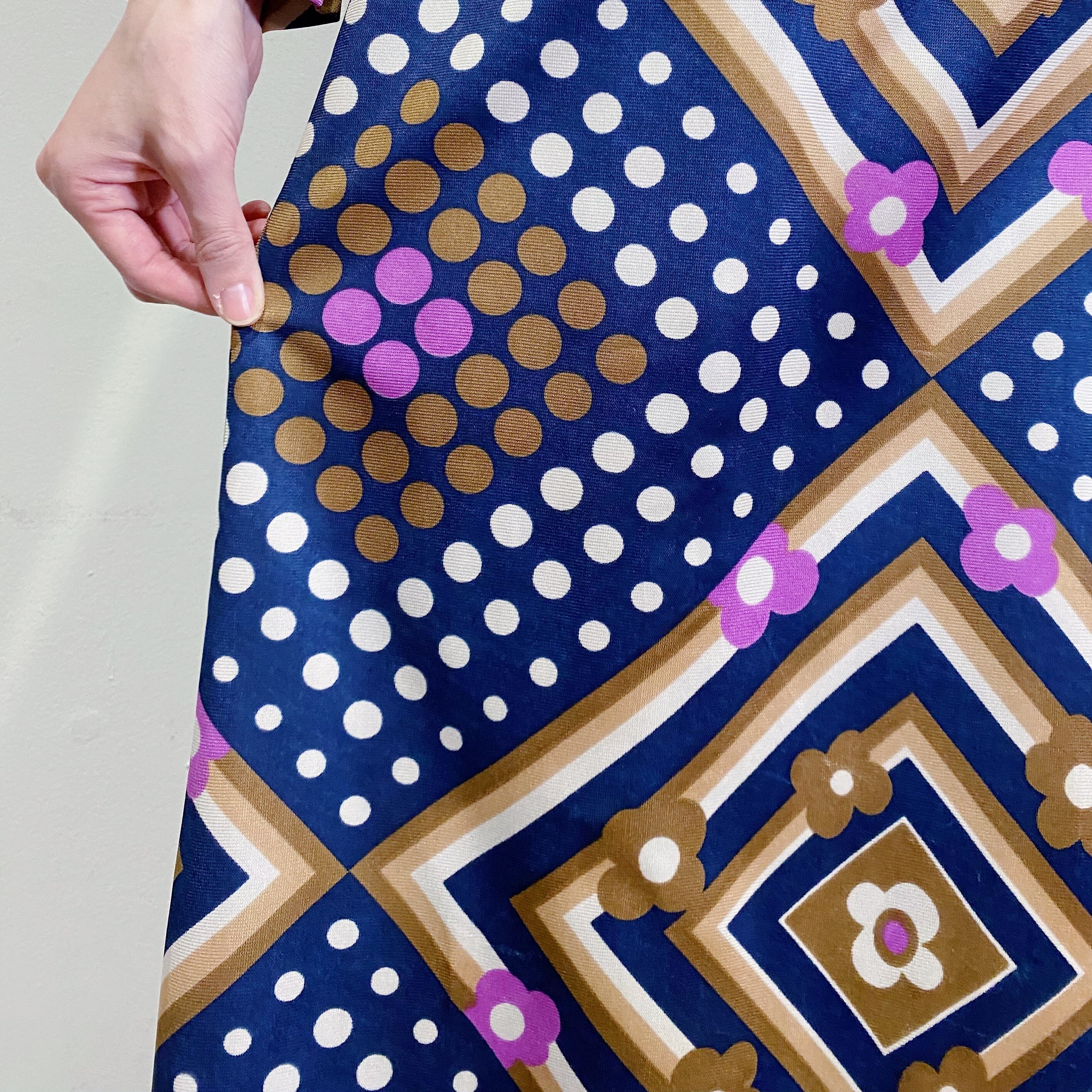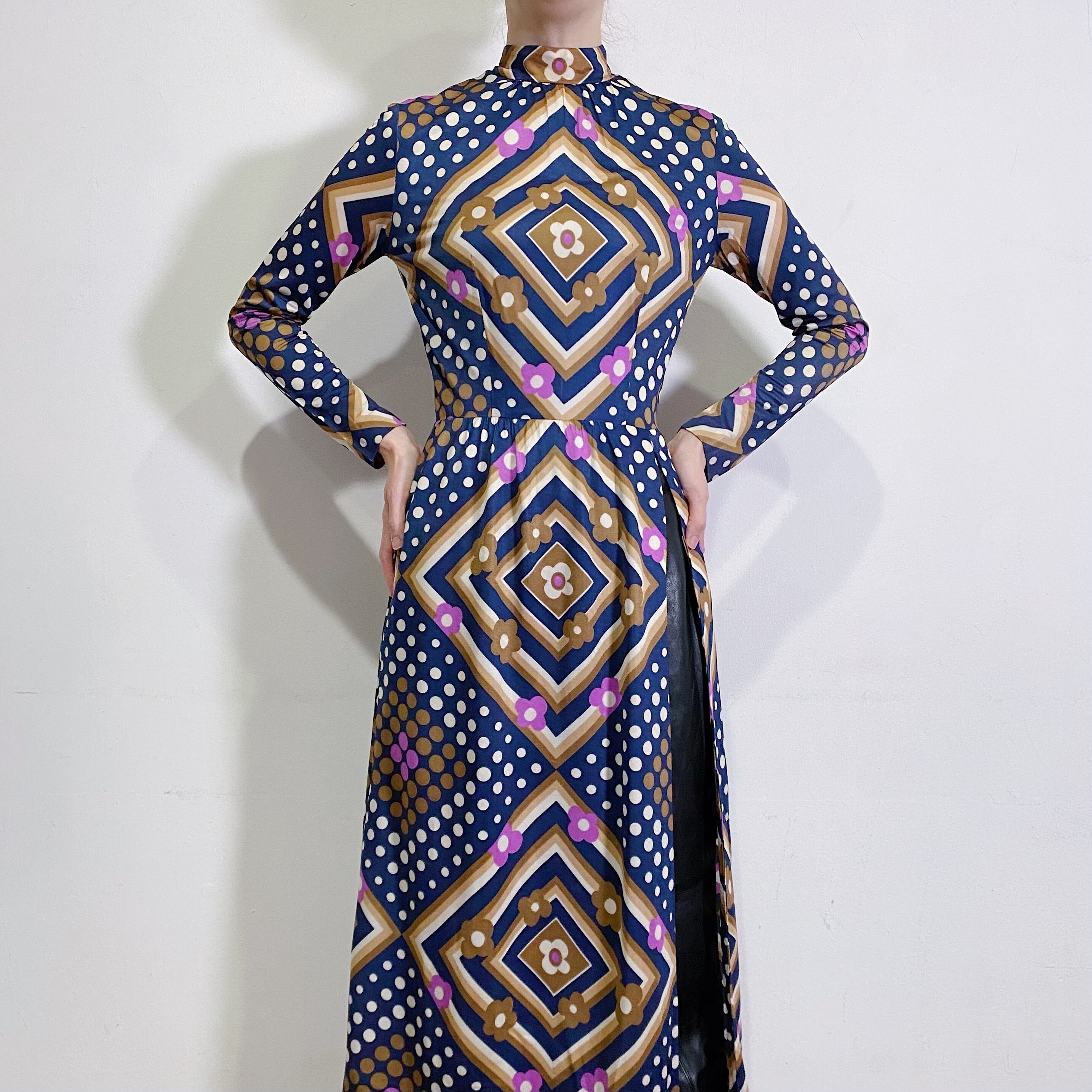 ドットとお花の少しレトロな柄が可愛い、60年代のロングワンピースです。