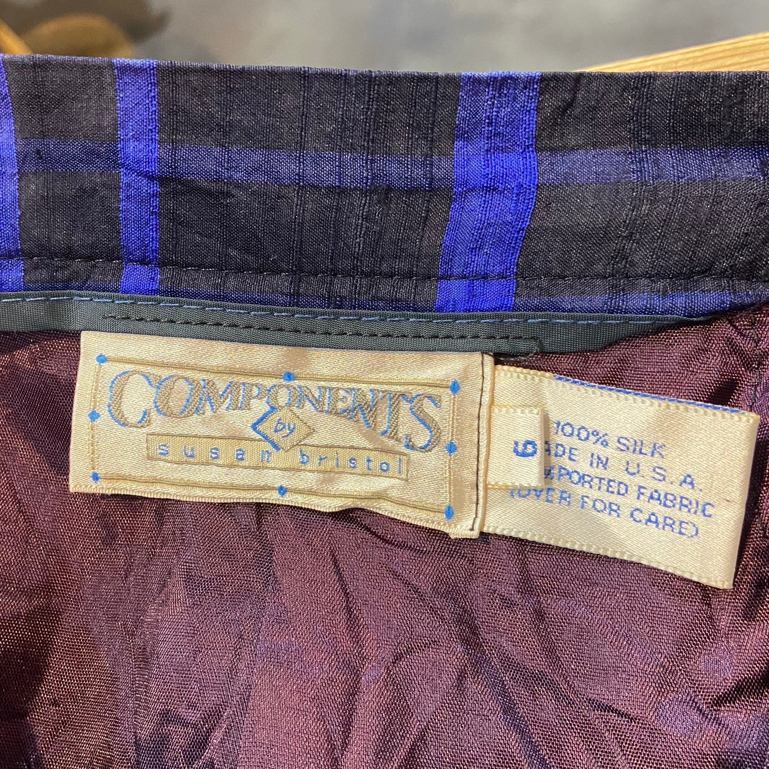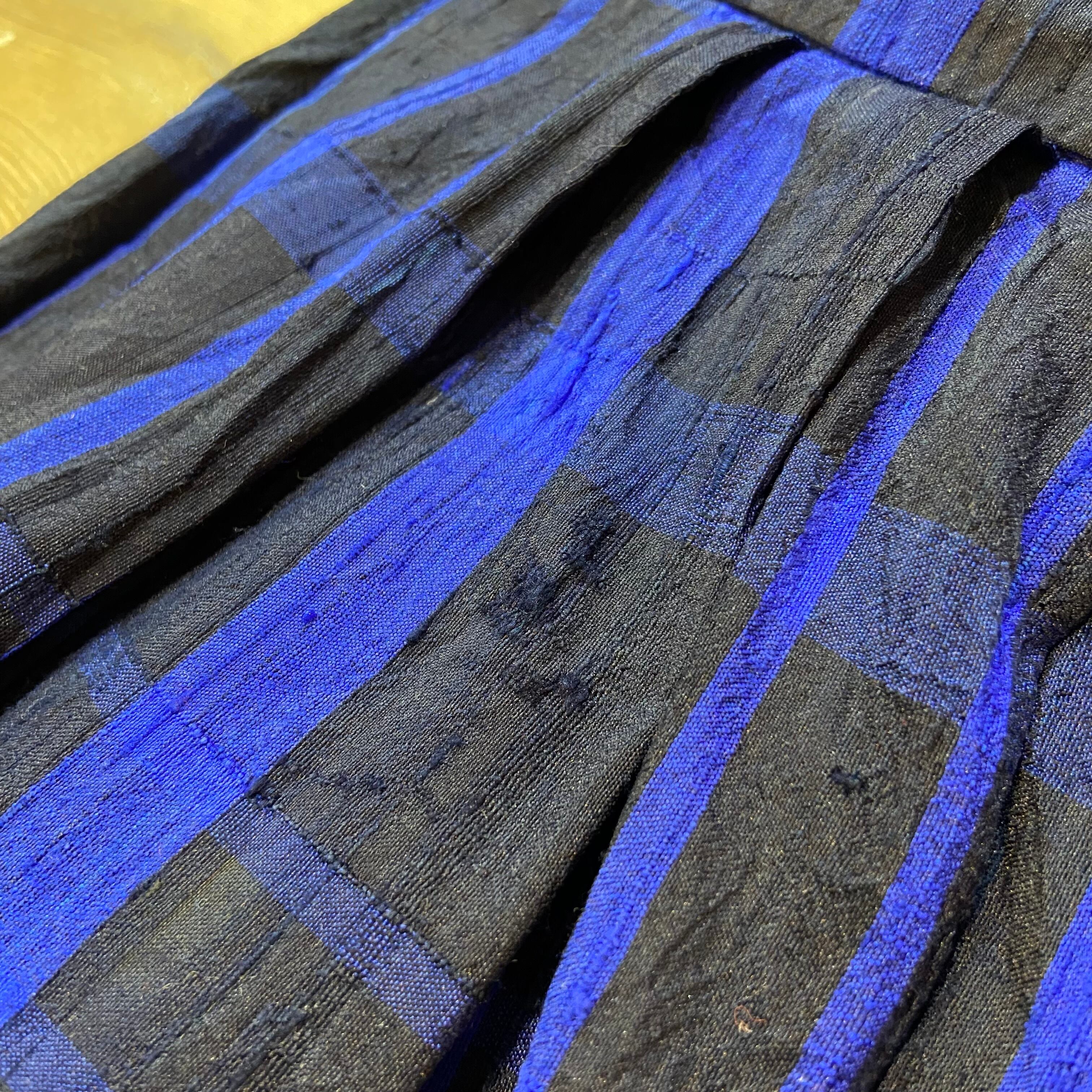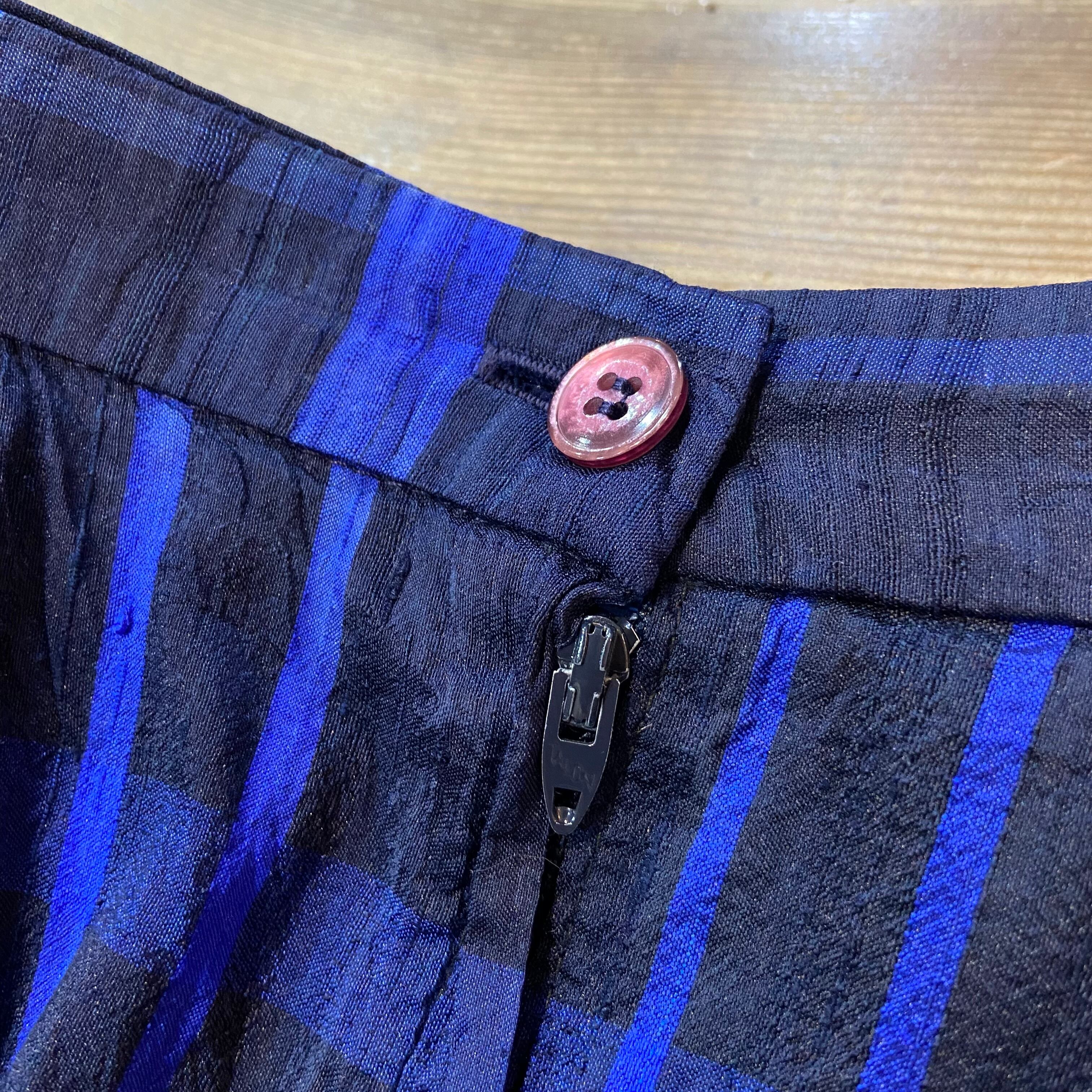 80s blue plaid silk long skirt