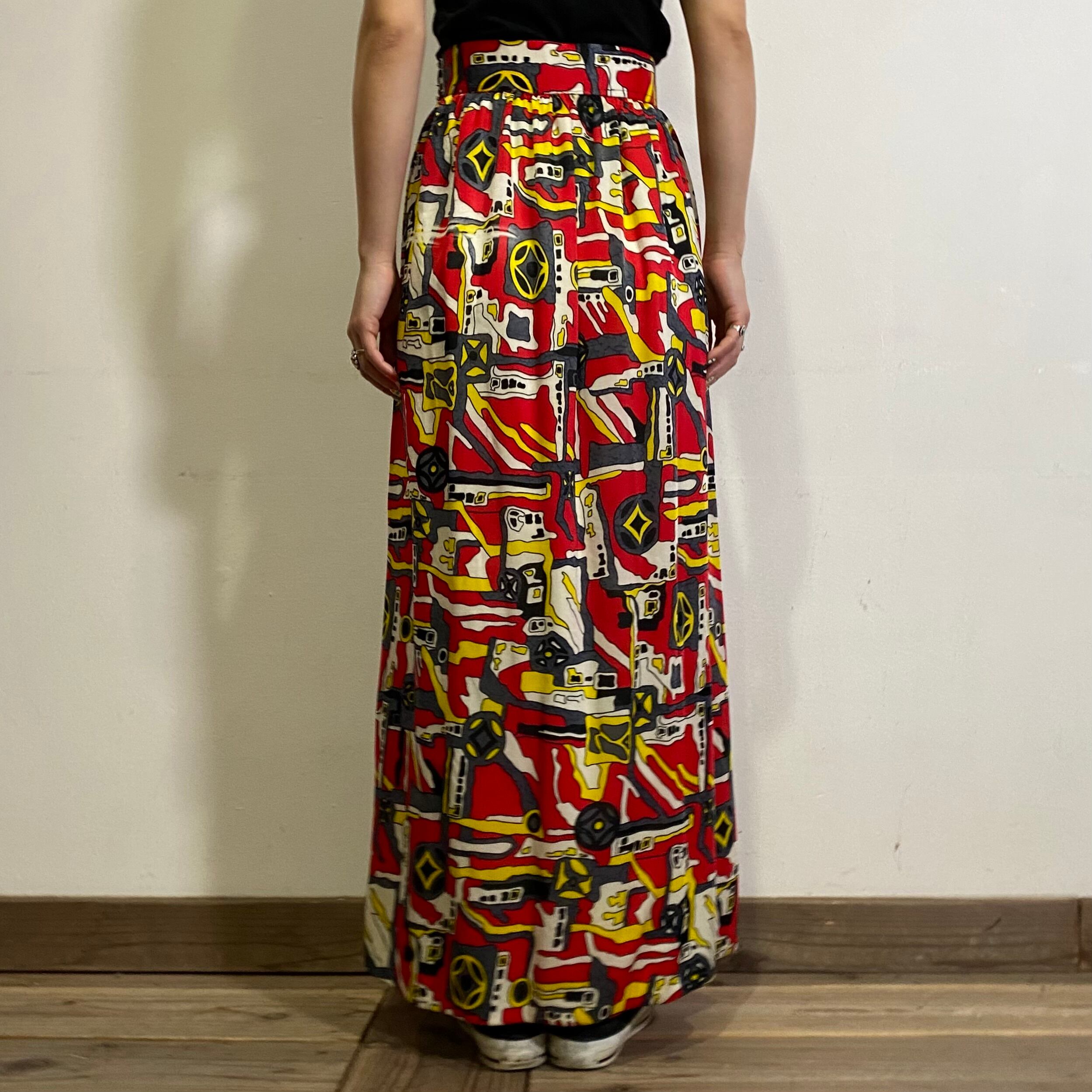 60s red psychedelic printed long skirt