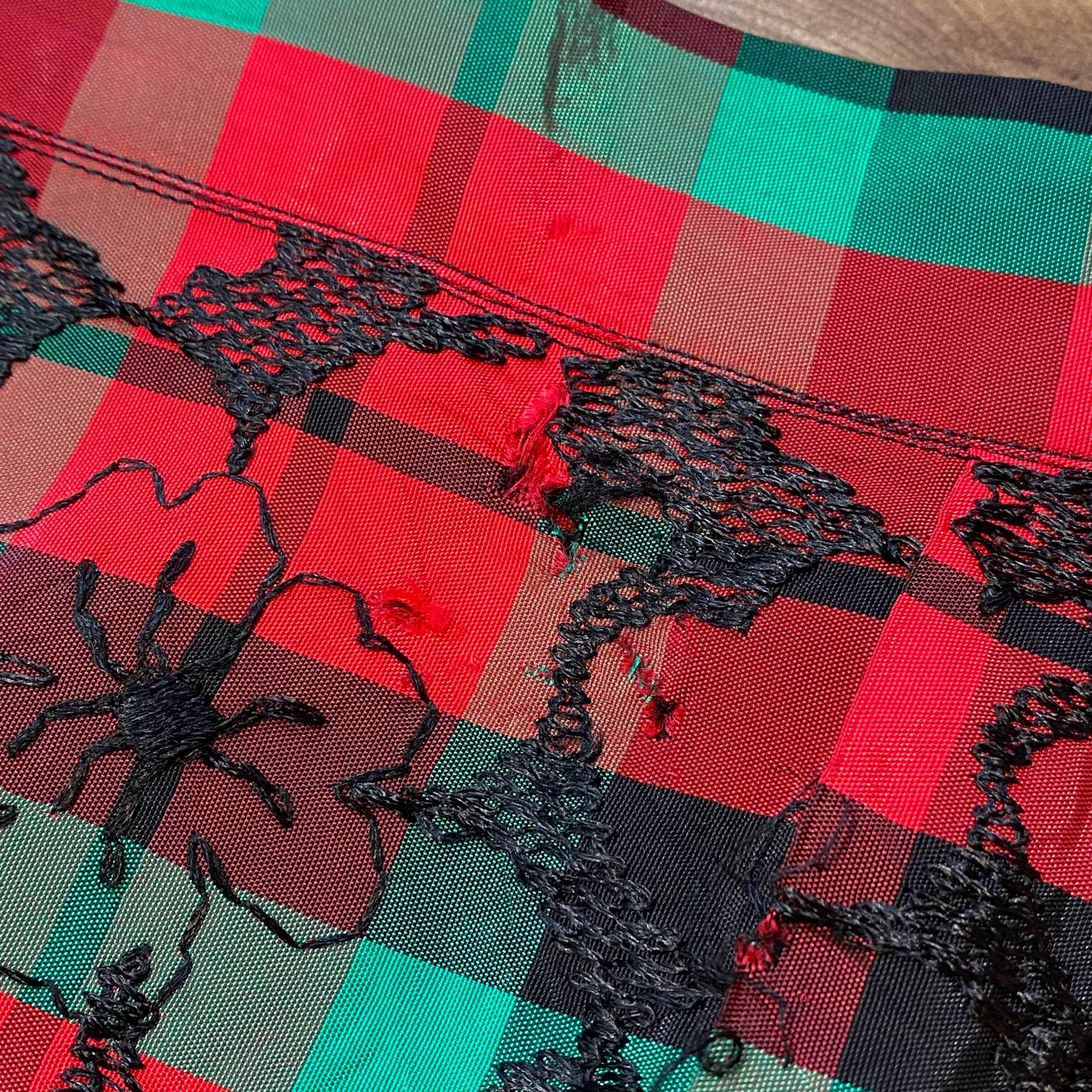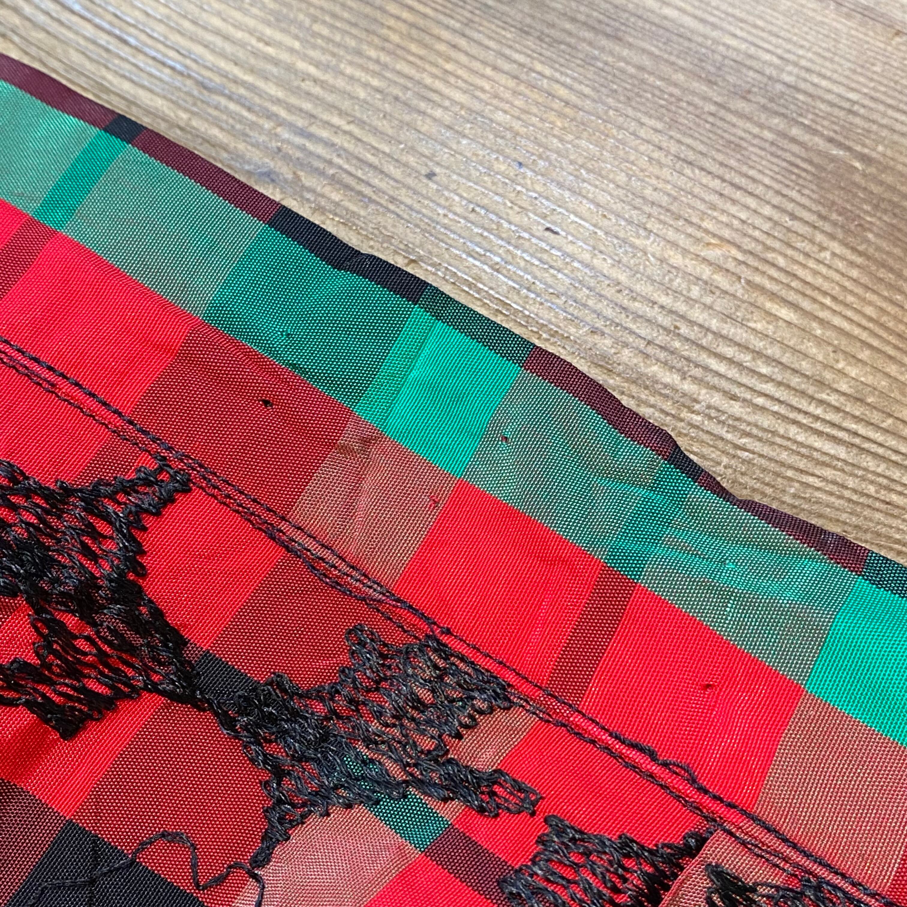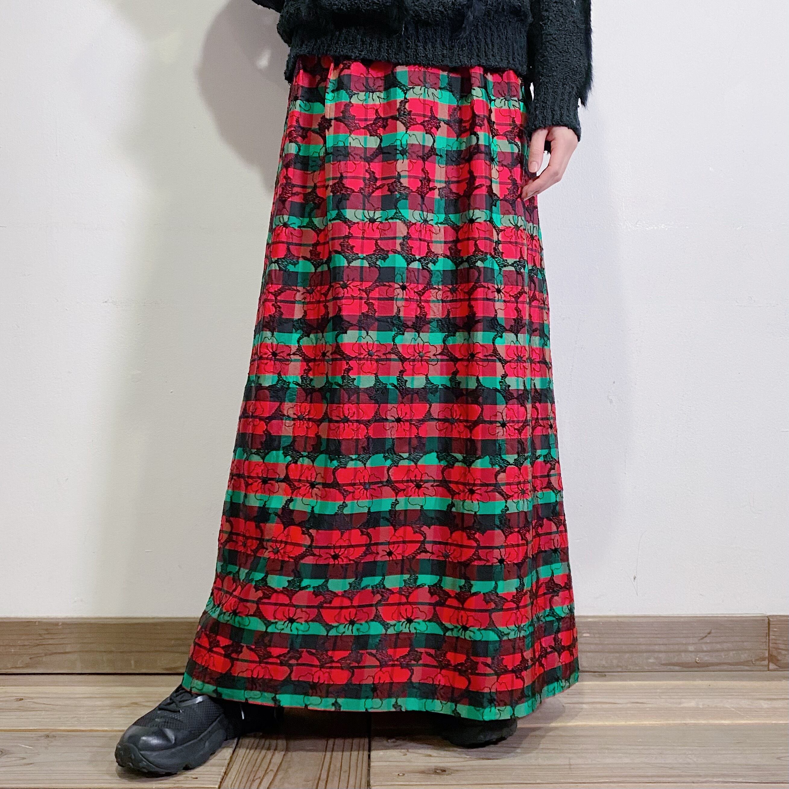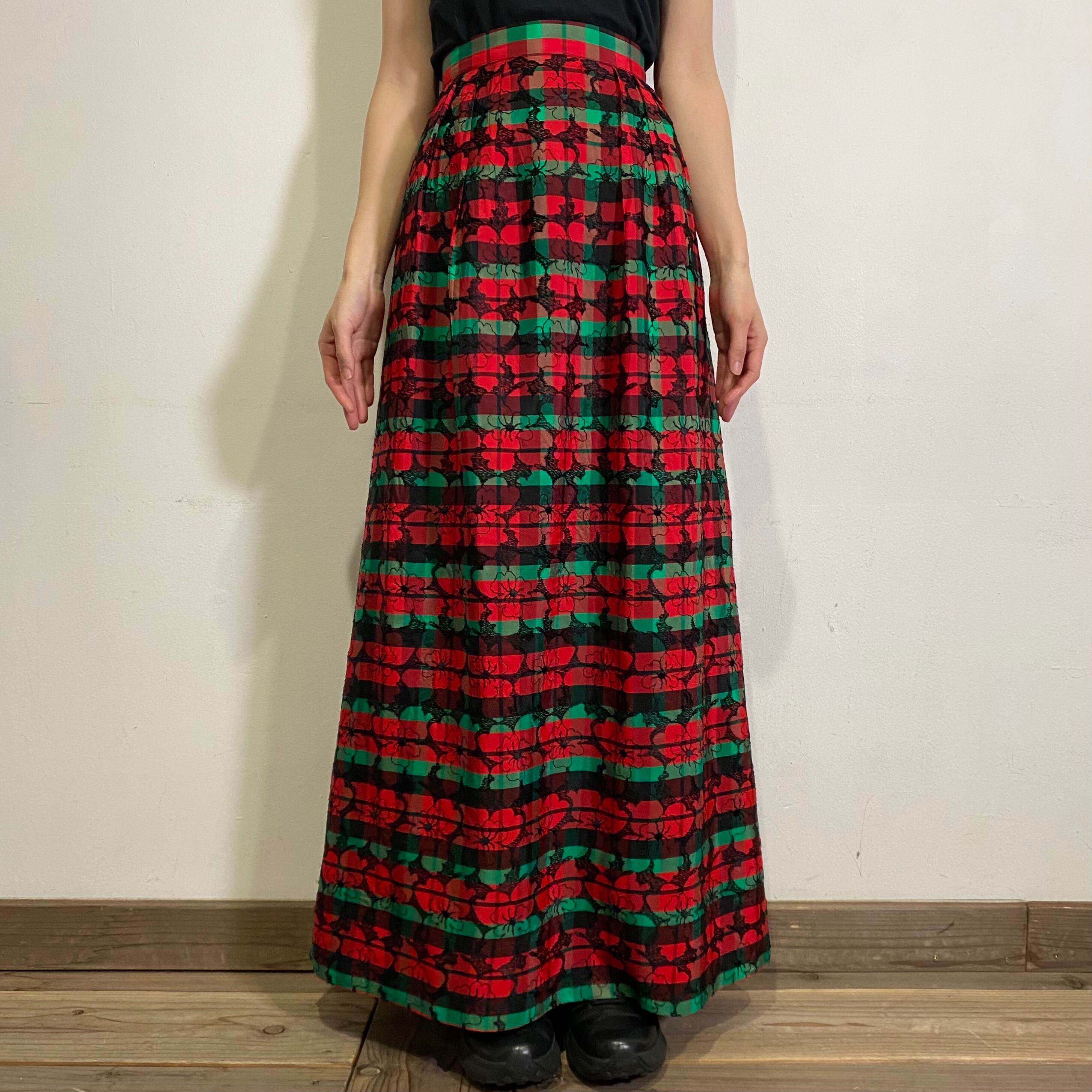 レッド×グリーンのチェックにお花の刺繍が可愛い、60~70年代のスカートです。
