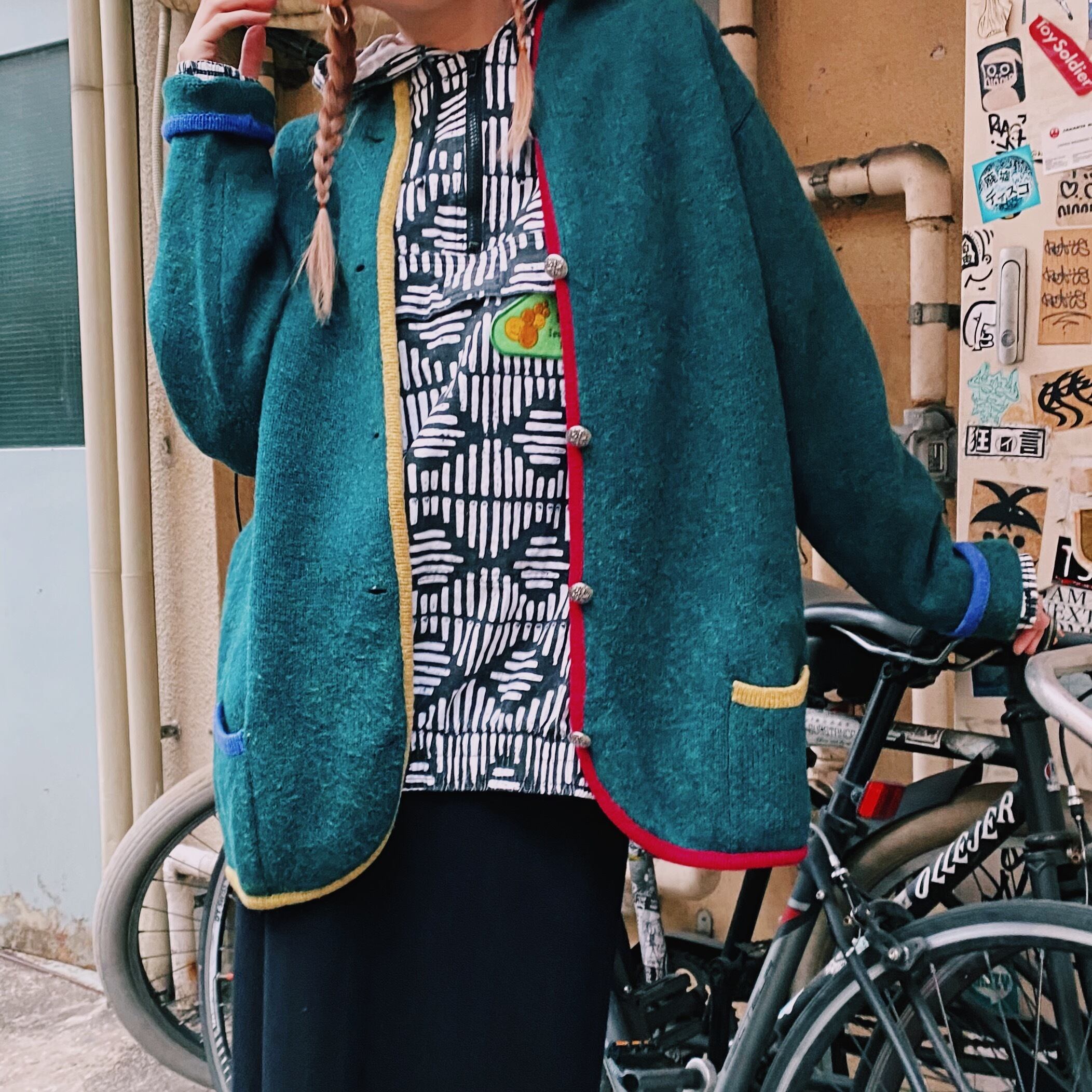 ゆったりとしたサイズ感で着こなしやすく、ウール地で暖かな一枚。