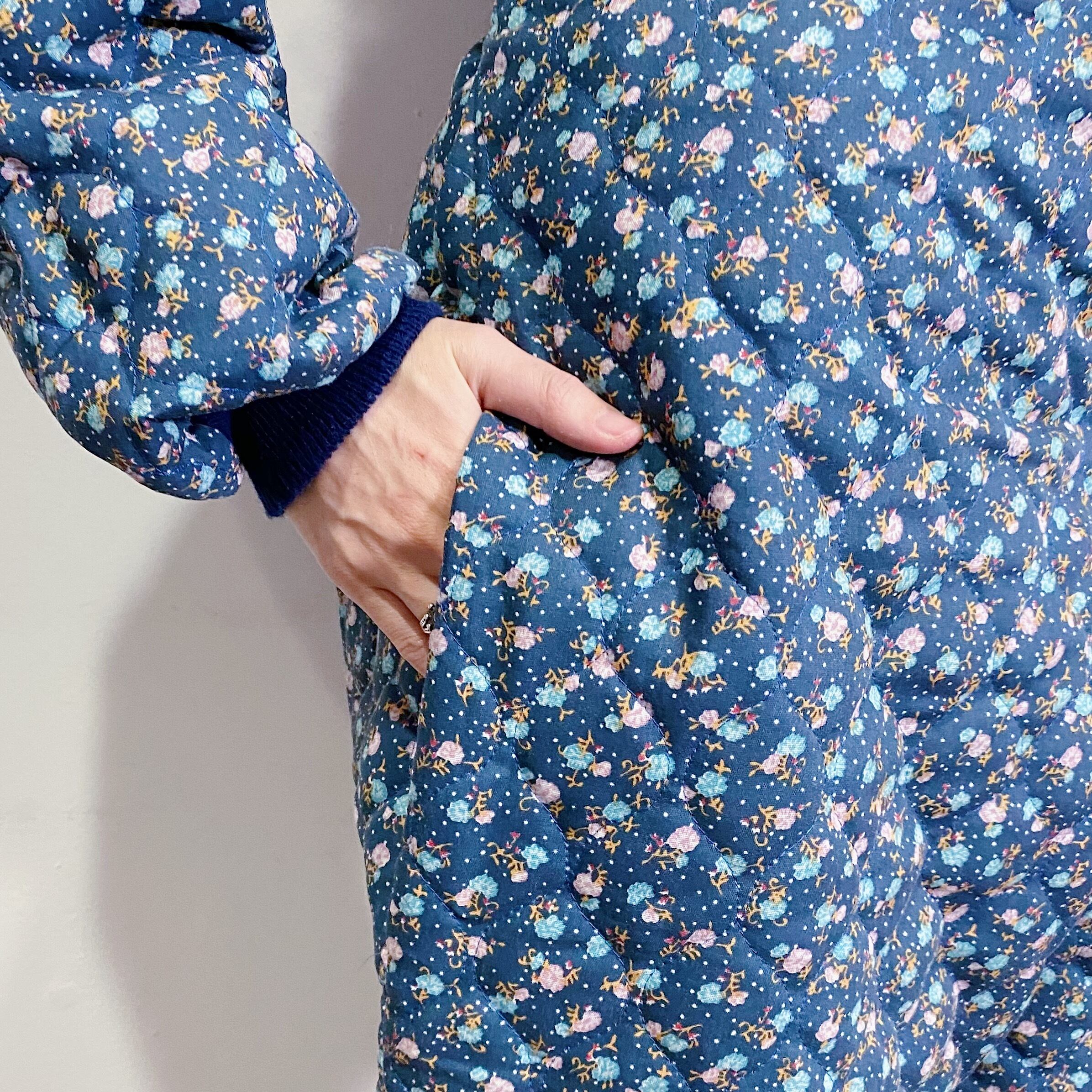 小花柄のキルティングデザインがとっても可愛い、70年代のジャンプスーツです。