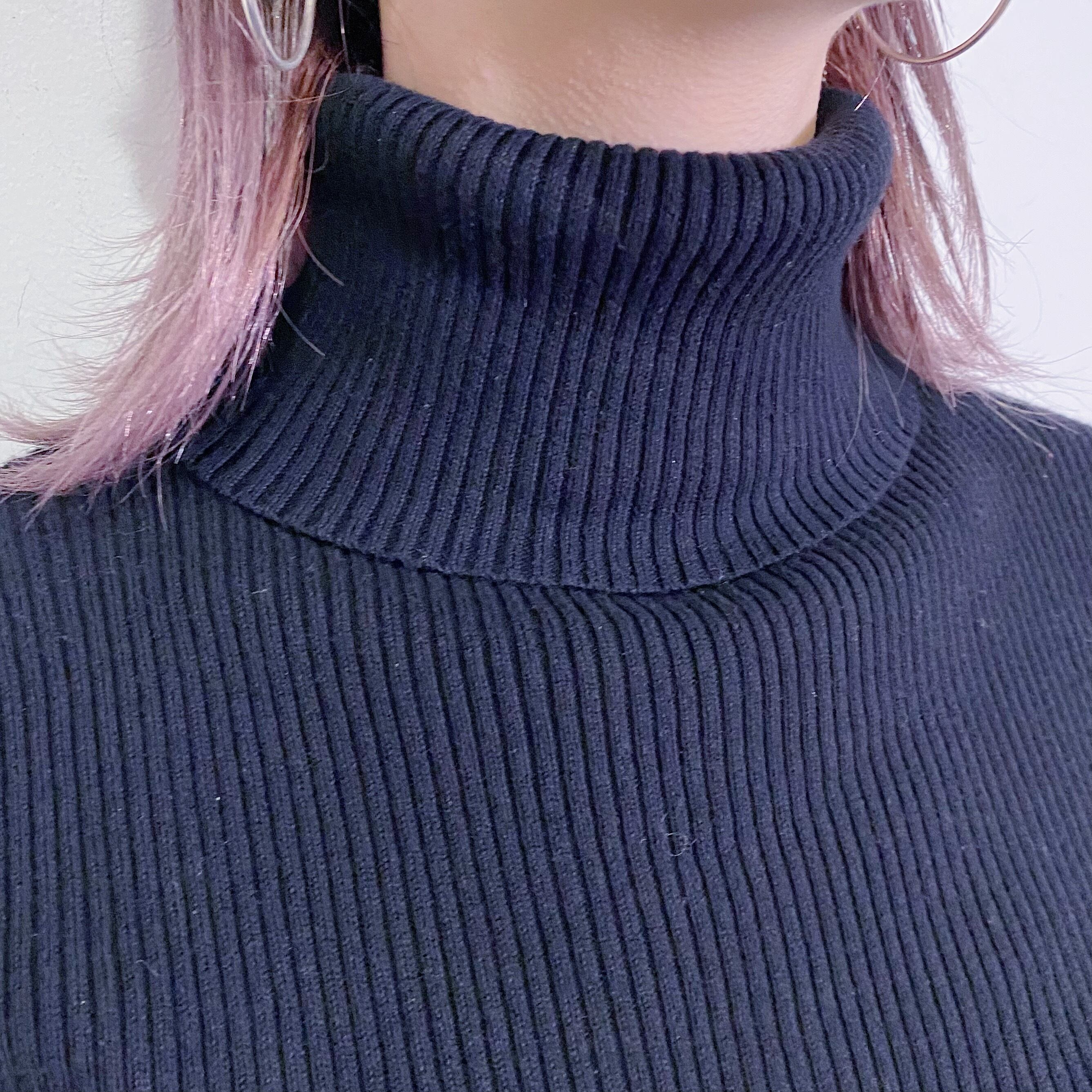 ブラックカラーで大変使い勝手の良い、ハイネックトップスです。