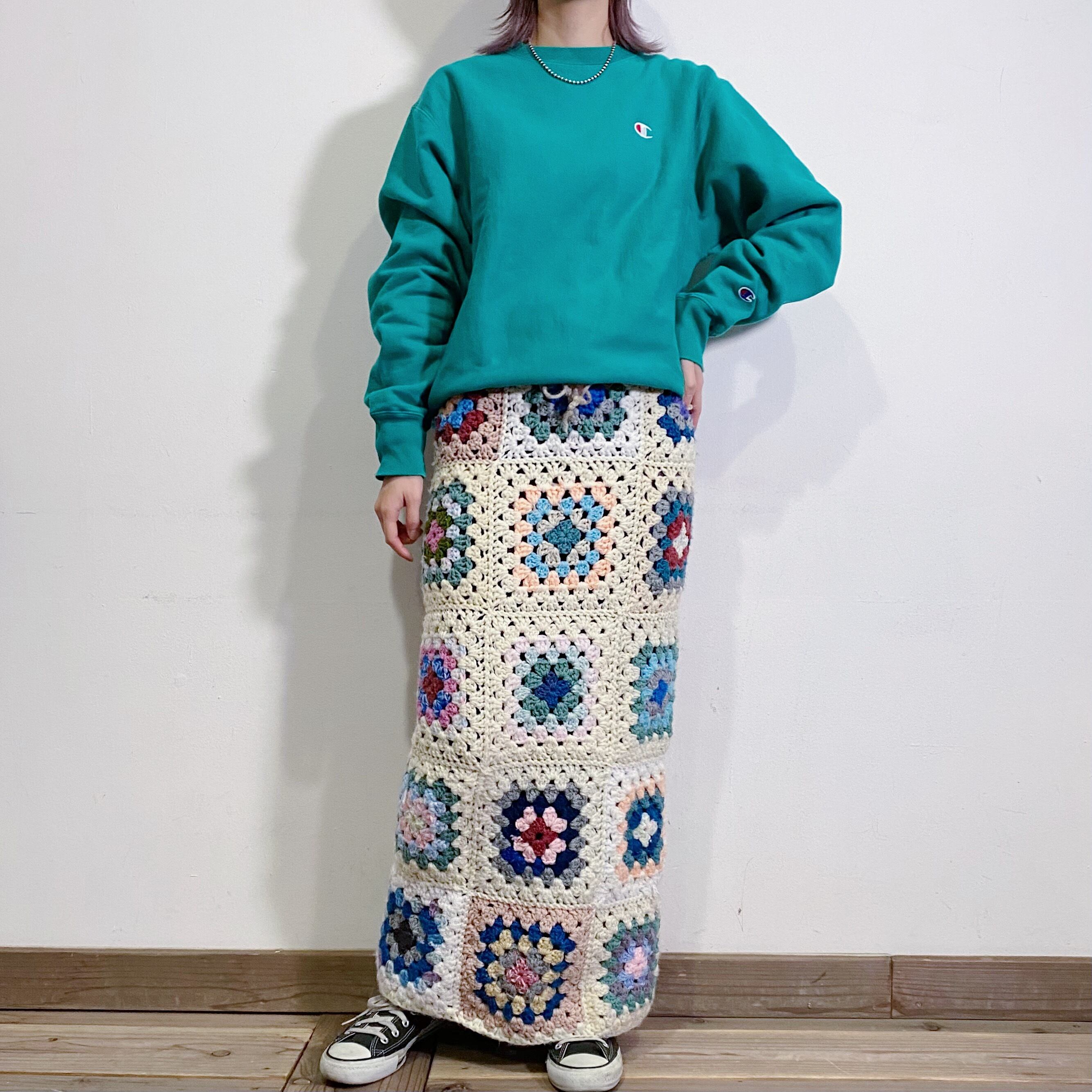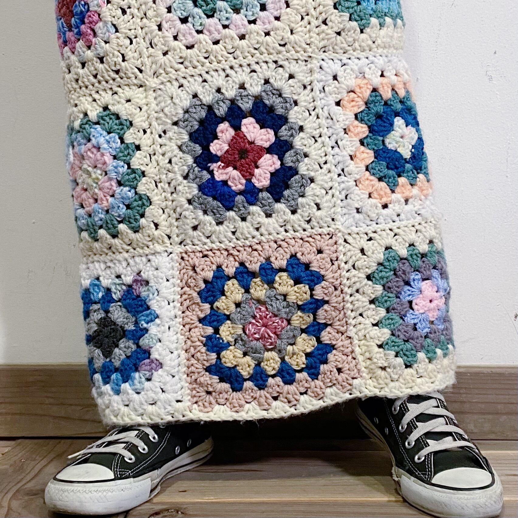 パステル系の毛糸の組み合わせが可愛い、70年代のロングスカートです。