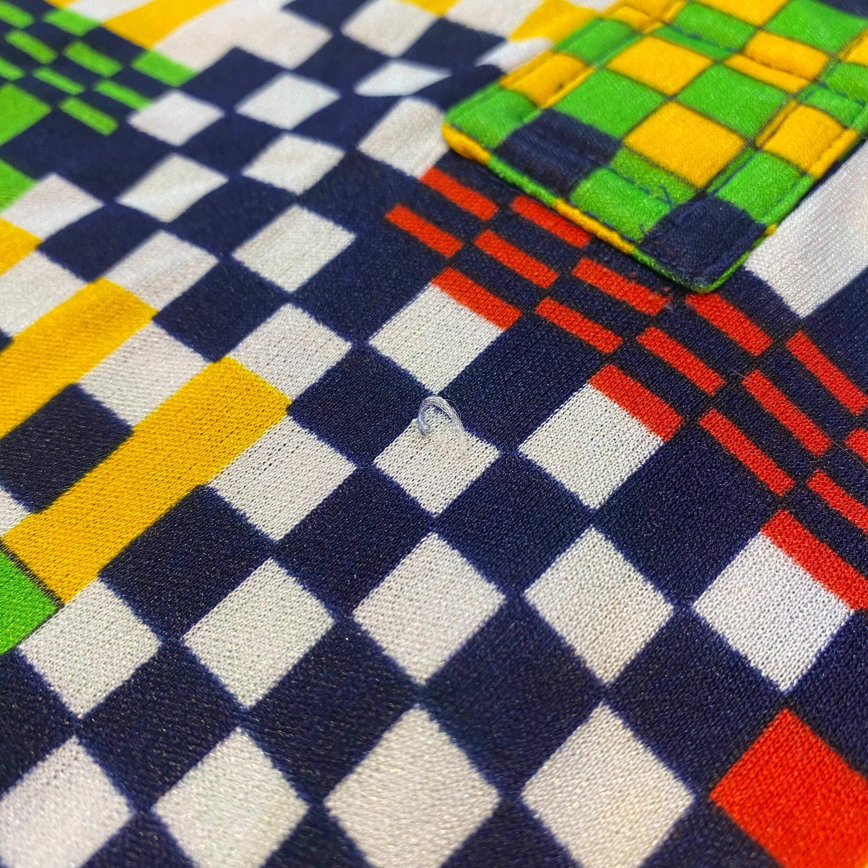 カラフルなブロックチェックが可愛い、70年代のシャツワンピースです。