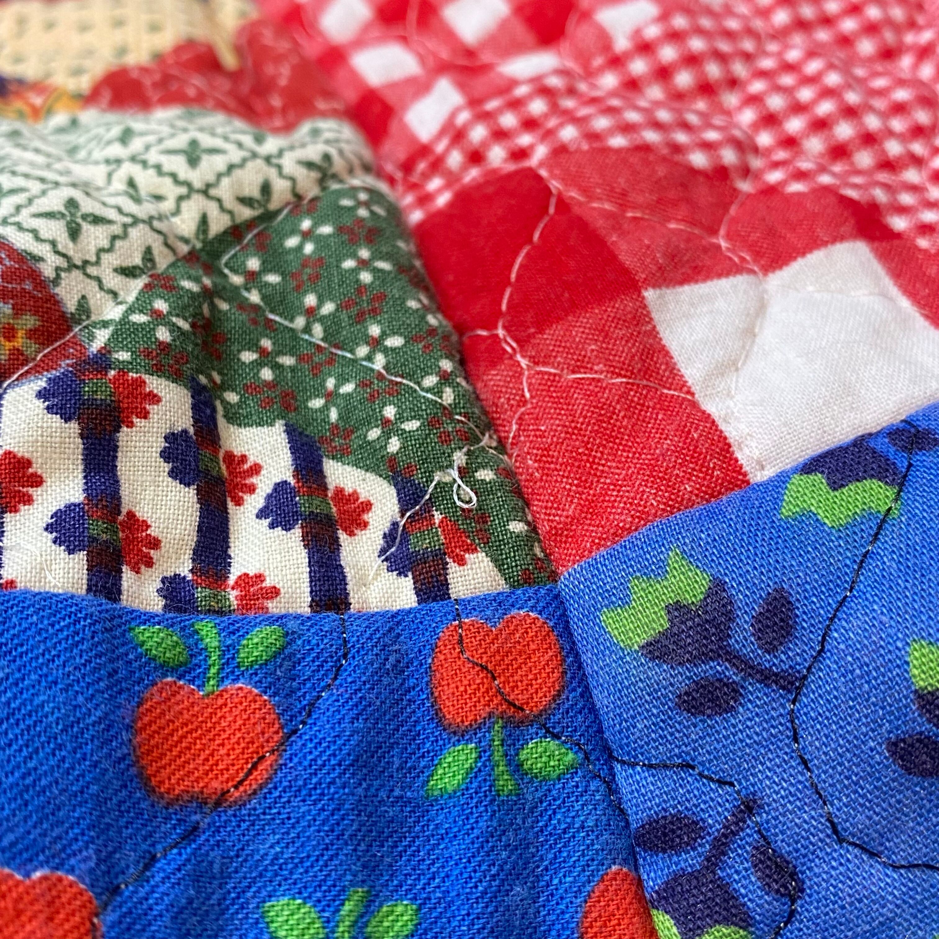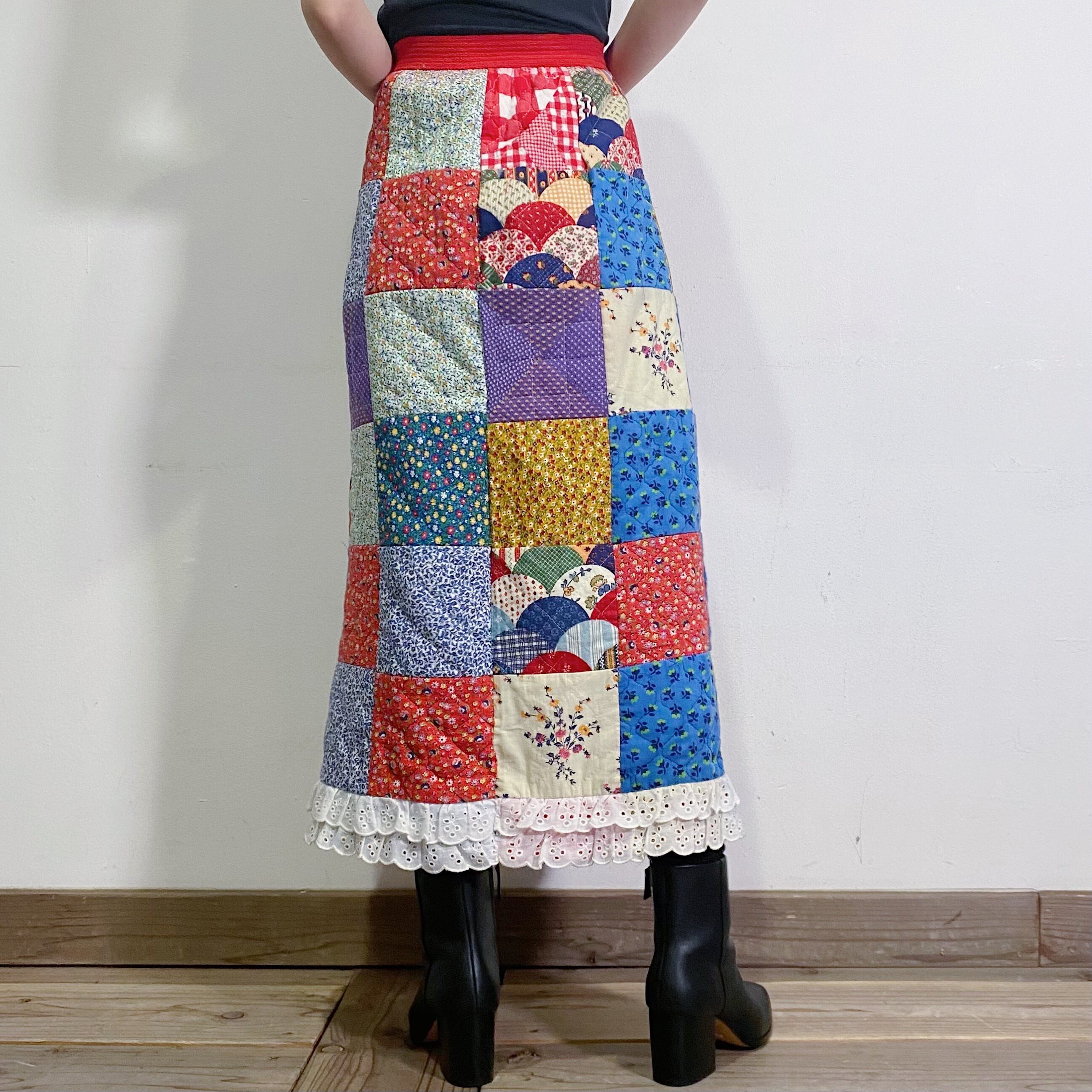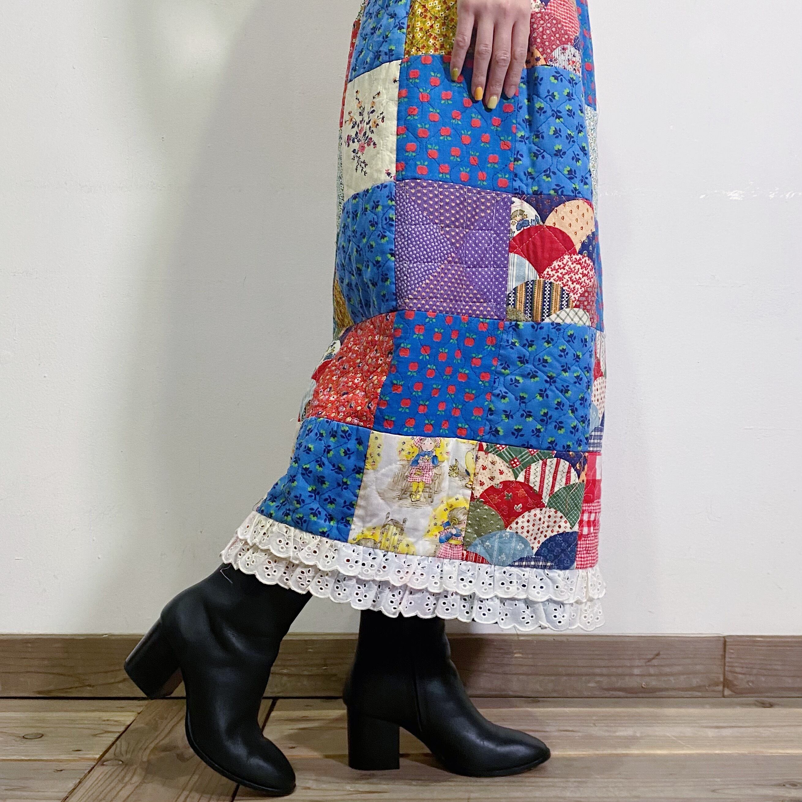 カラフルなパッチワークが可愛い、70年代のキルティングスカートです。