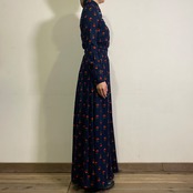 70s navy flower printed long shirt dress