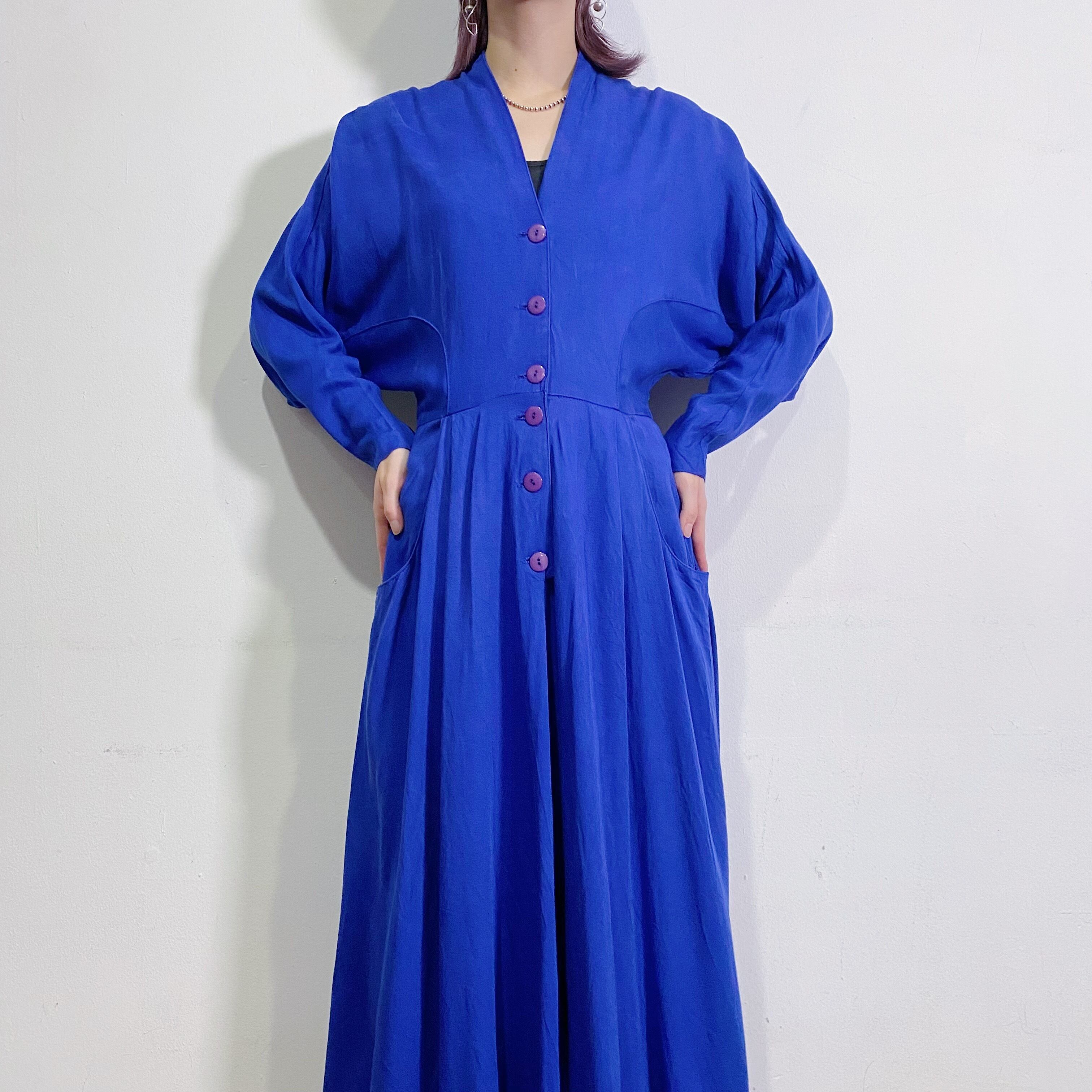 鮮やかなブルーカラーが可愛い、80年代のワンピースです。