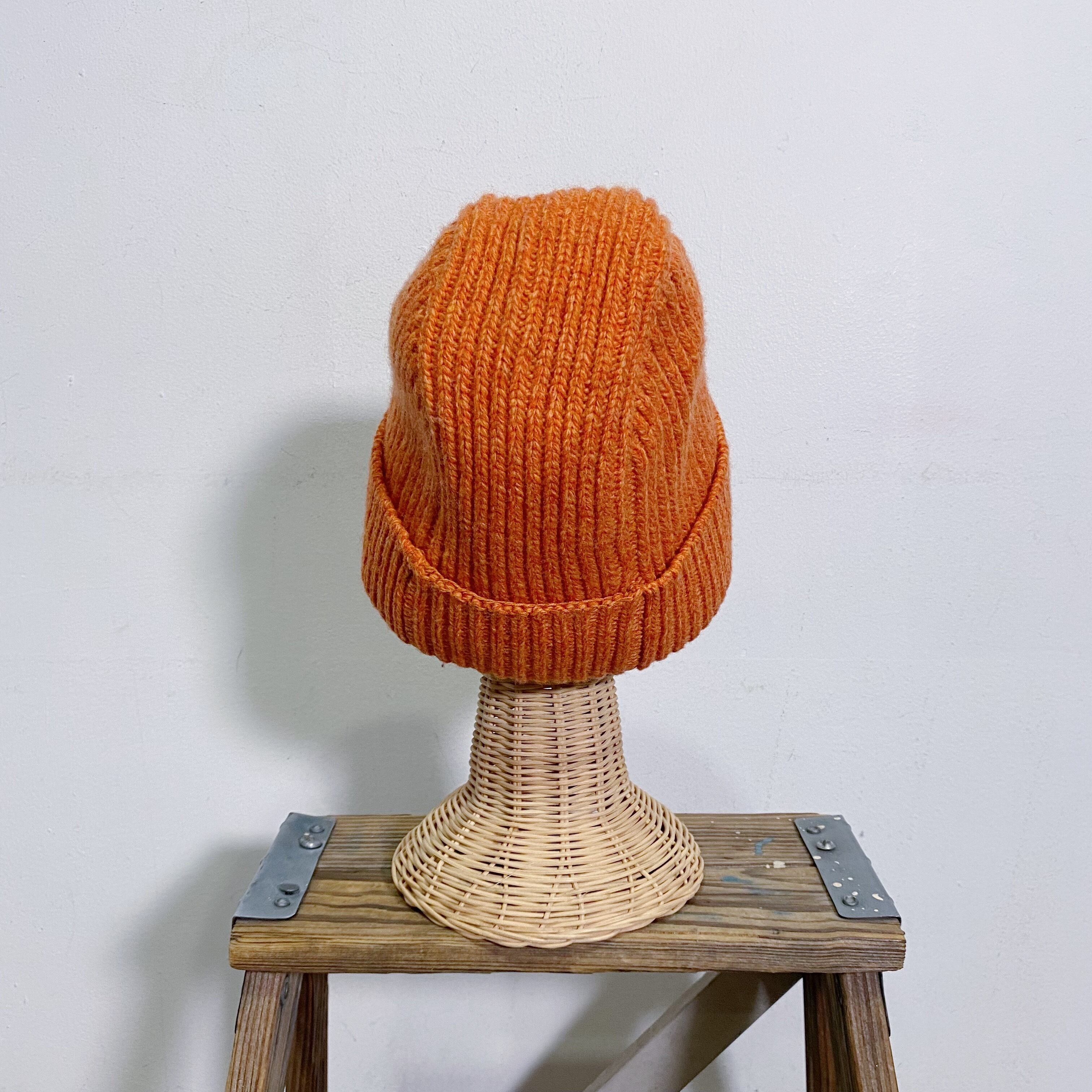 シンプルで使い勝手の良い、オレンジのニット帽です。