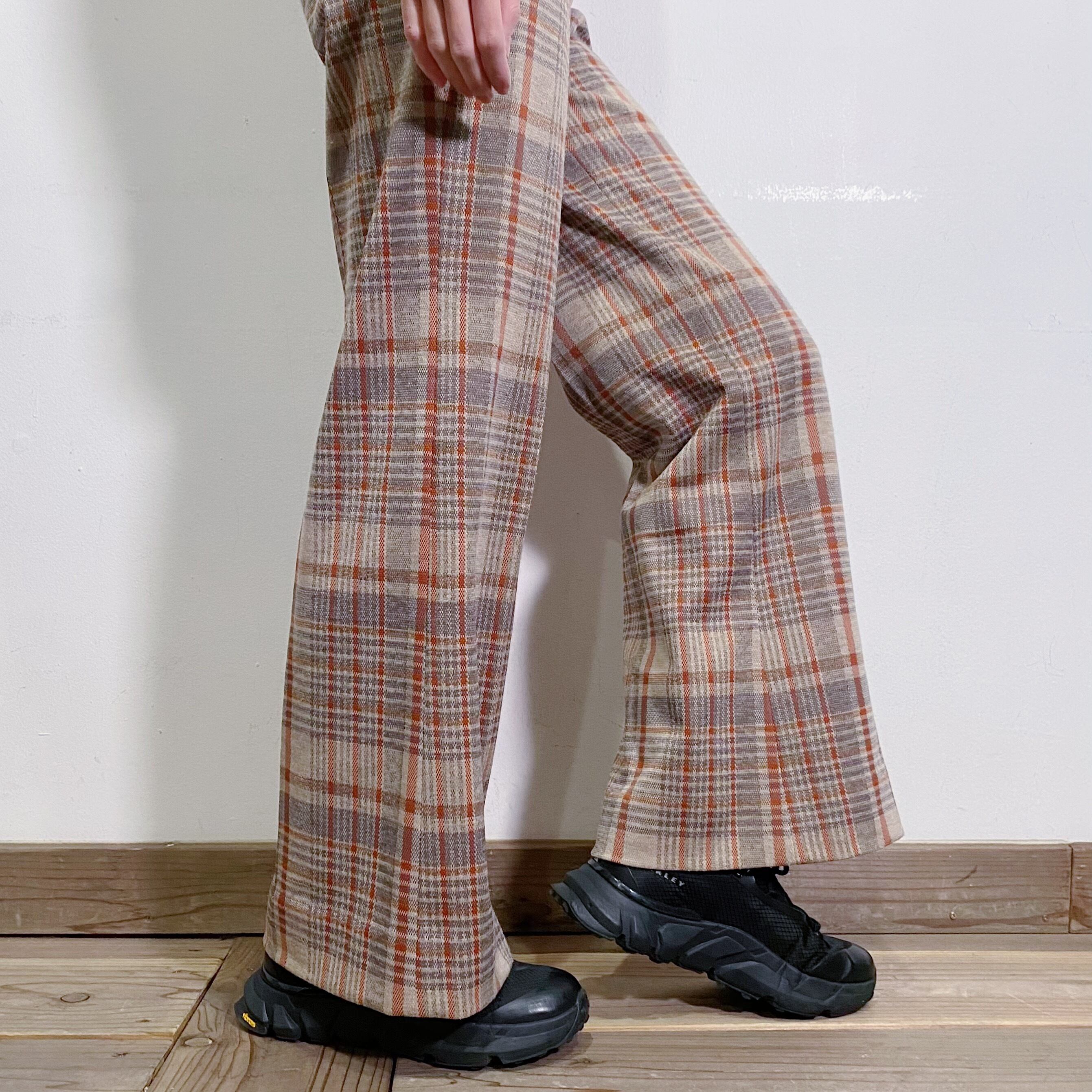 ベージュベースのチェックが可愛い、70年代のパンツです。