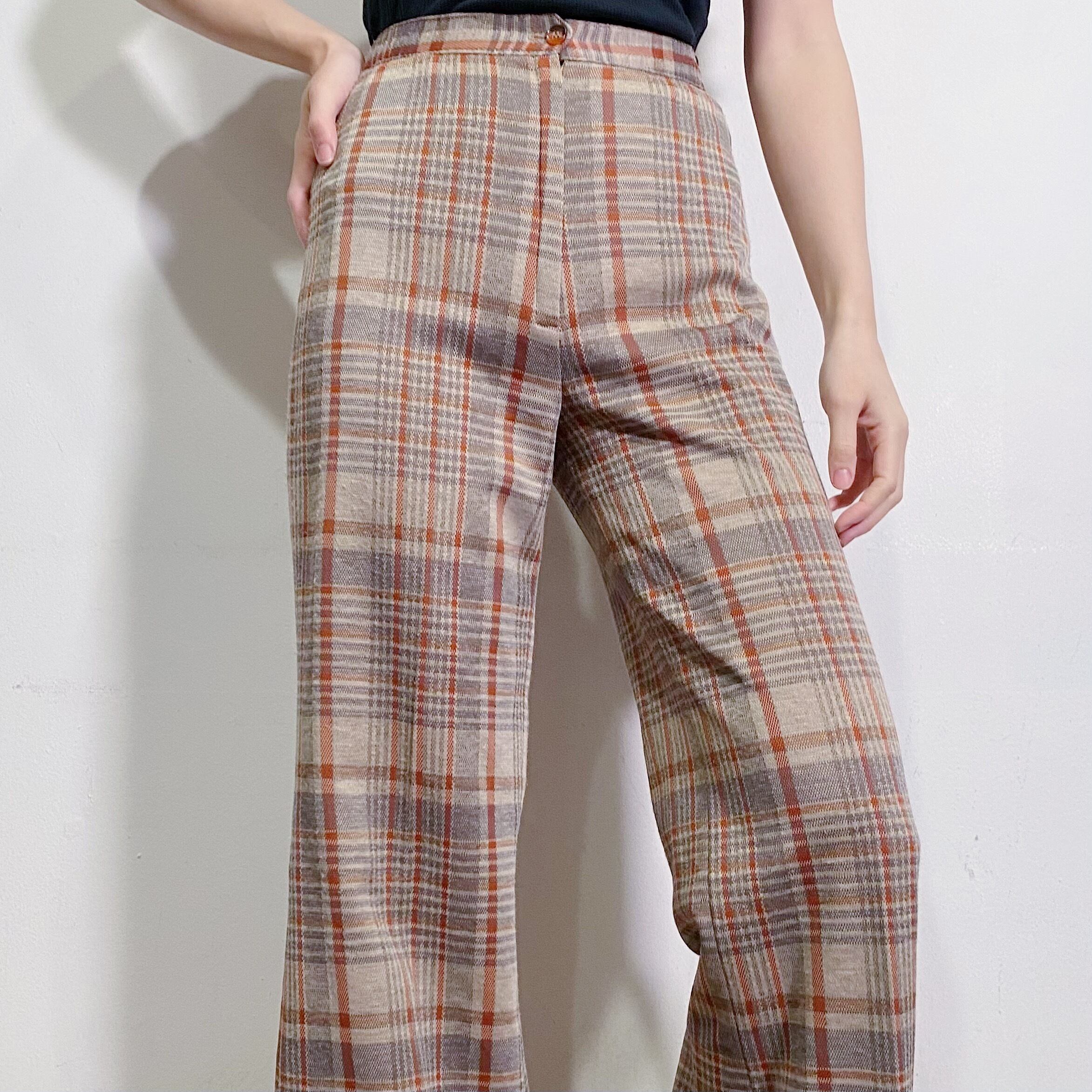 70s beige plaid flare pants