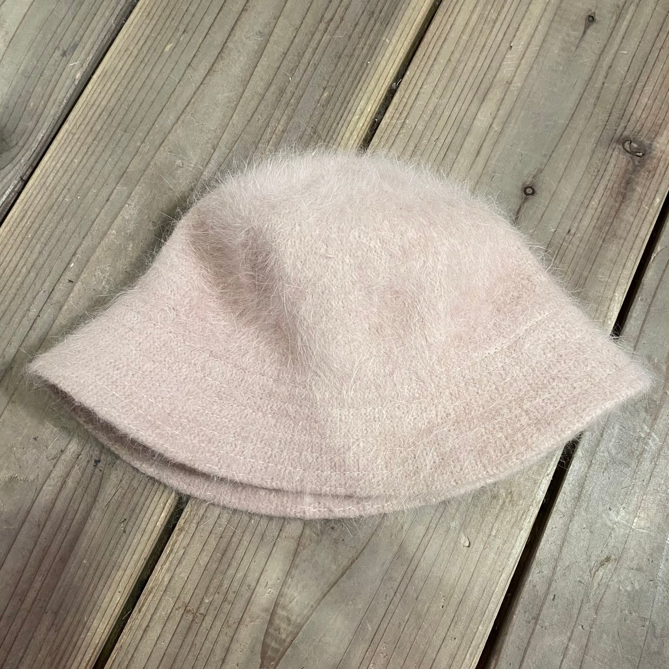 毛足の長いふわふわとしたアンゴラファーのバケットハットです。