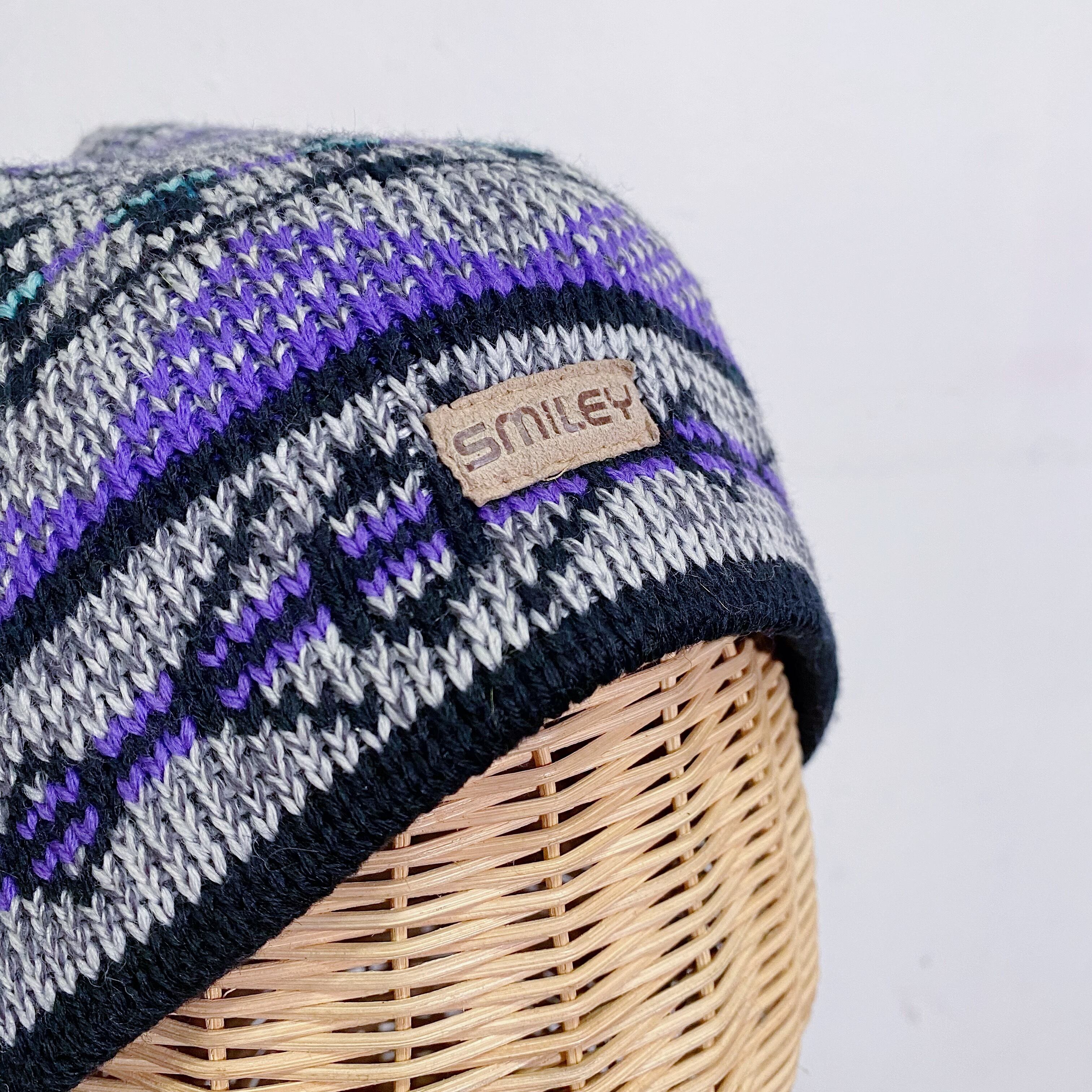 グレーベースにパープルやブラックの色合わせが可愛い、80年代のニット帽です。
