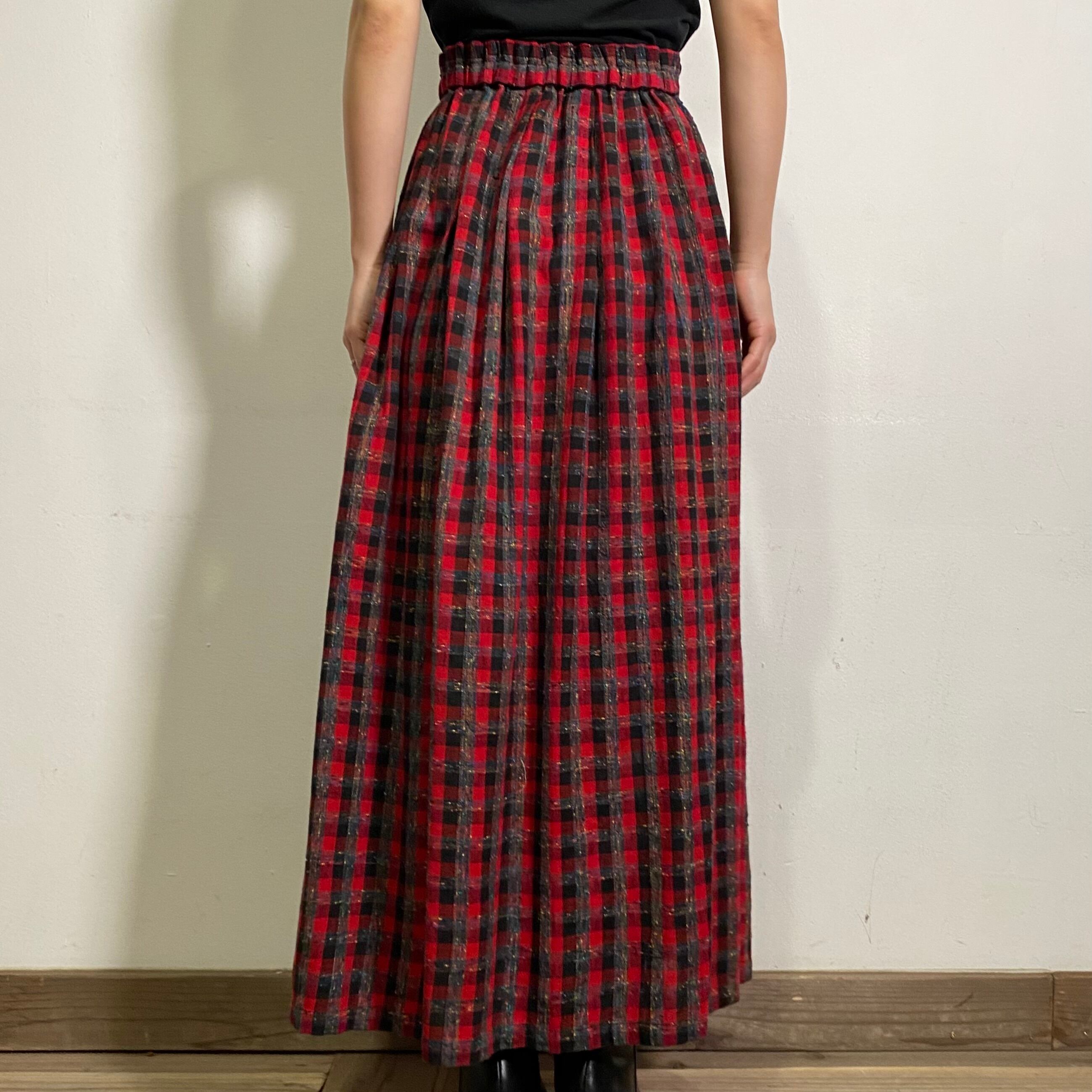 Red and black plaid long skirt