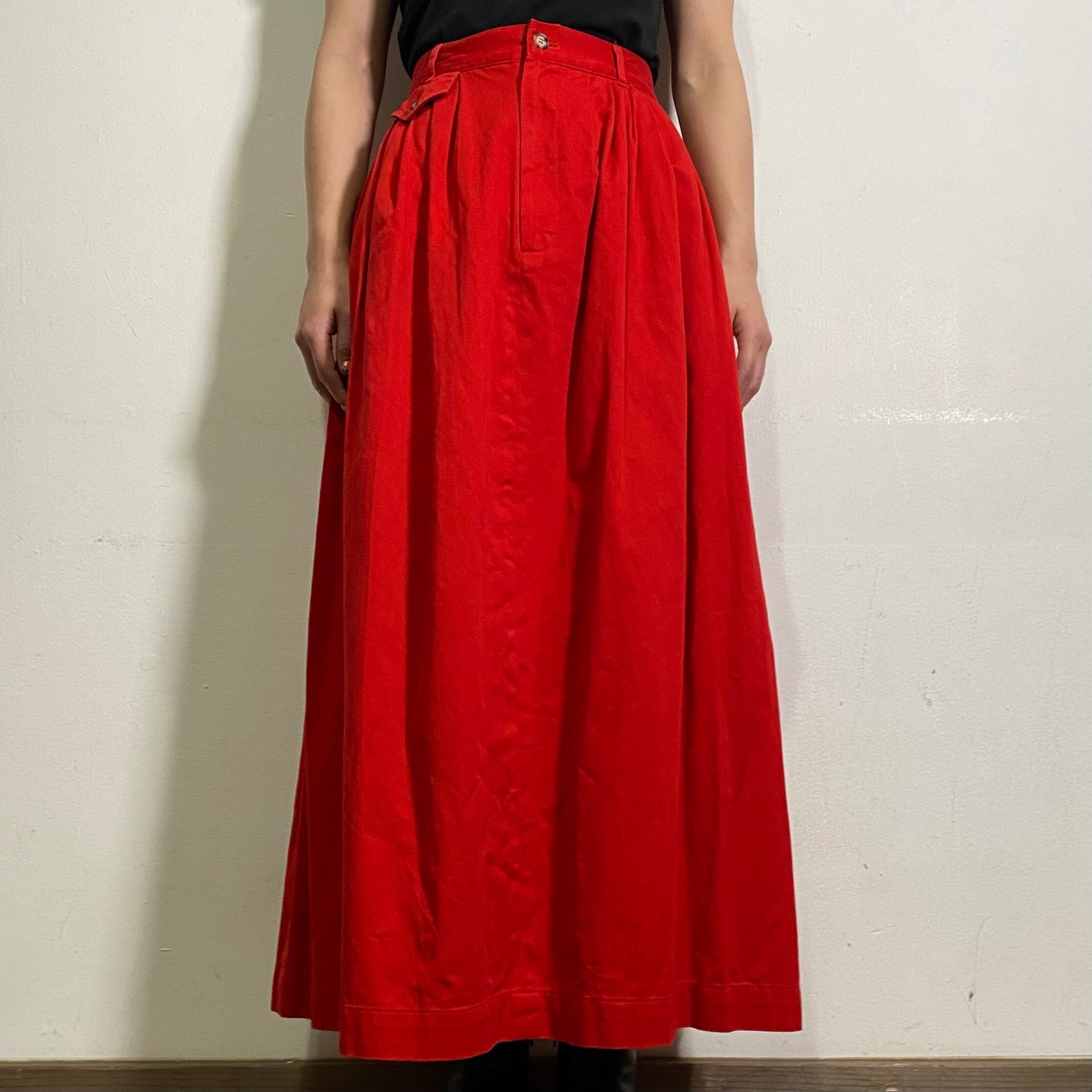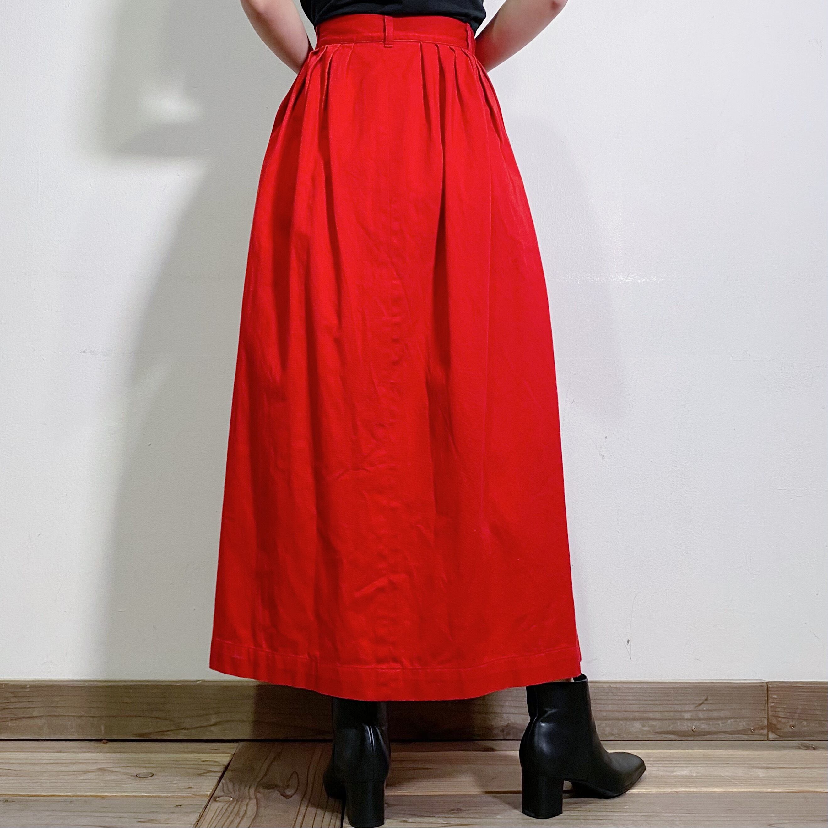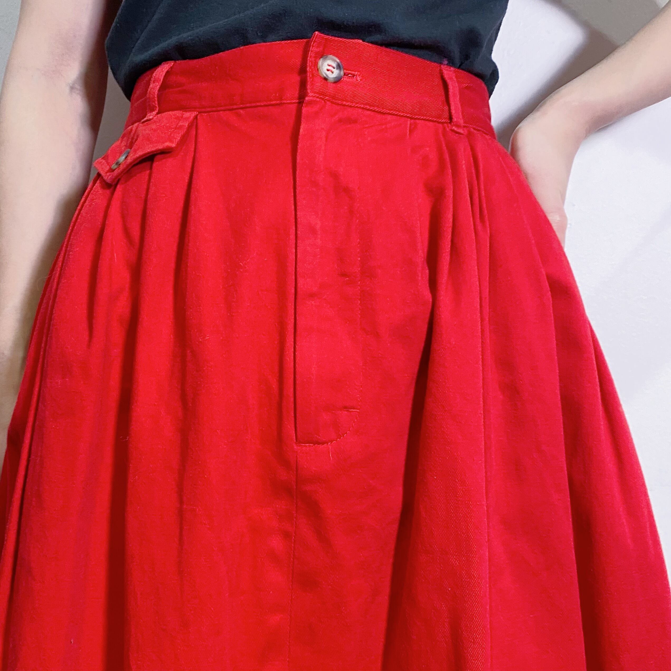エッジの効いた赤がアクセントになる、フレアスカートです。