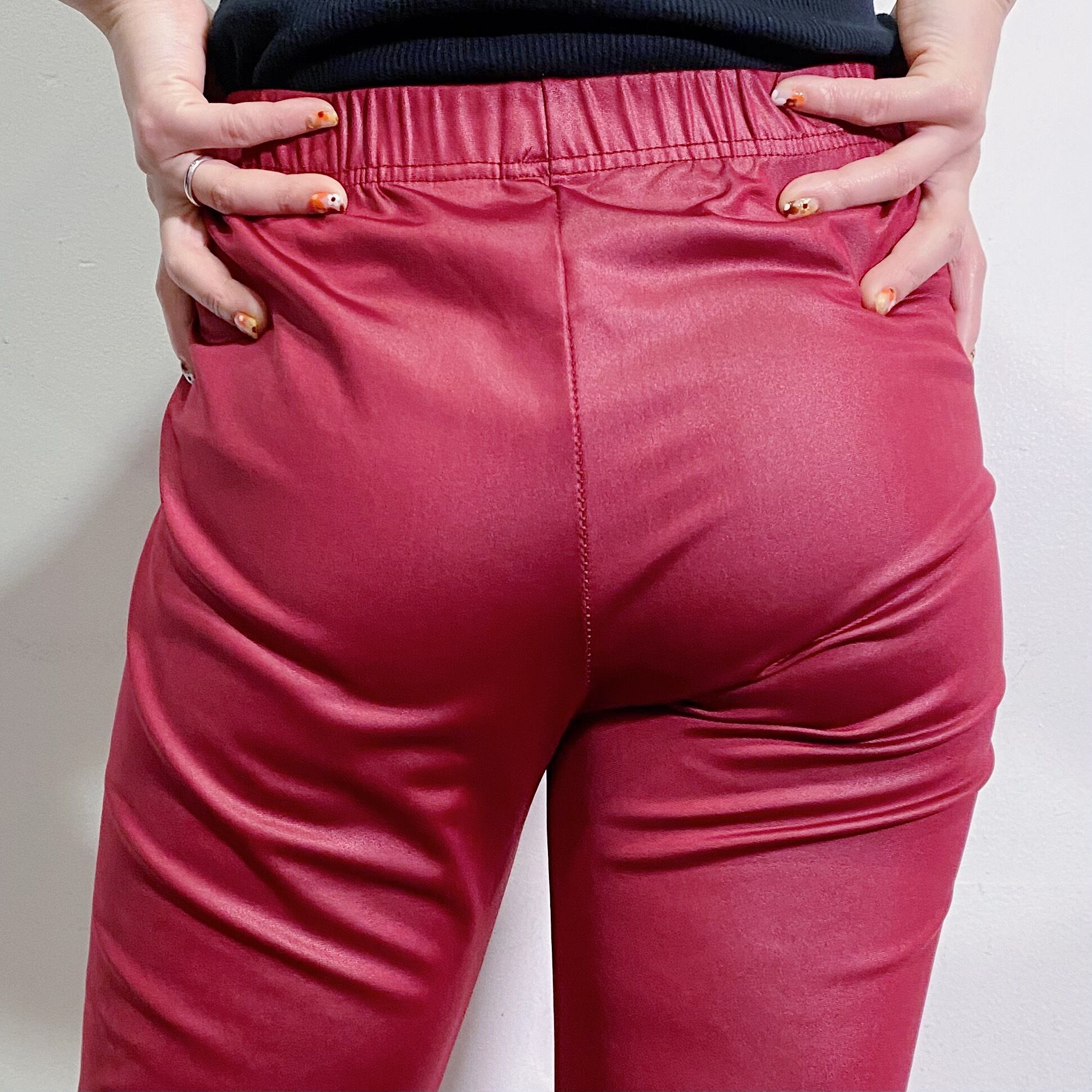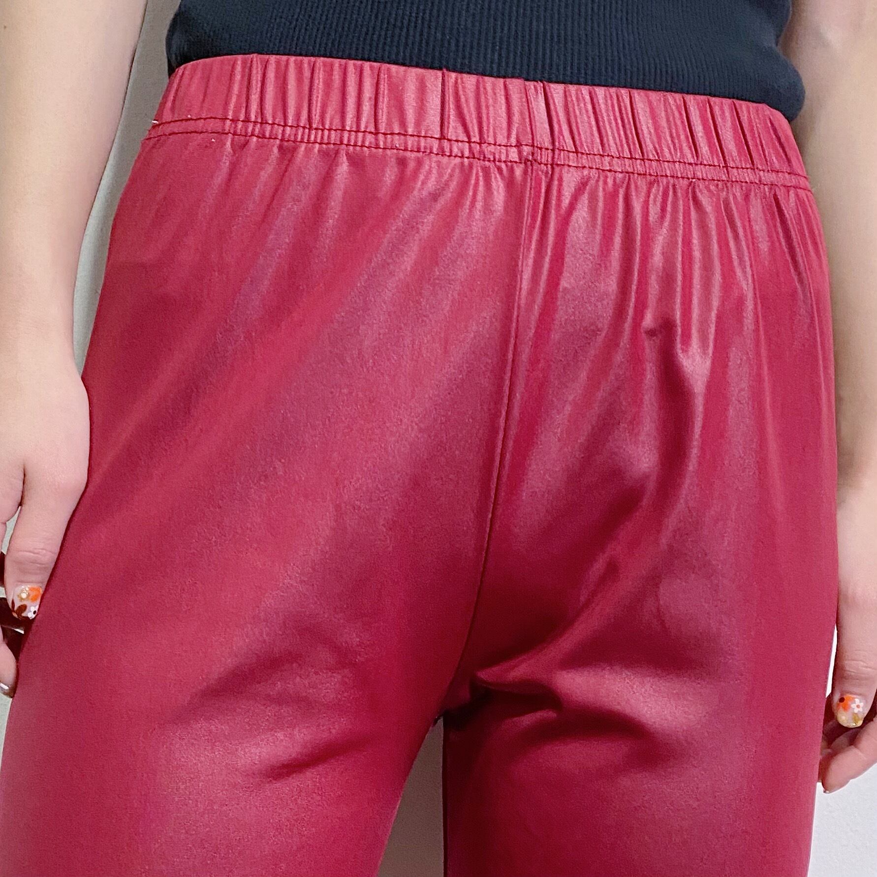 こっくりとした色合いのレッドカラーが大人っぽい、イージーパンツです。