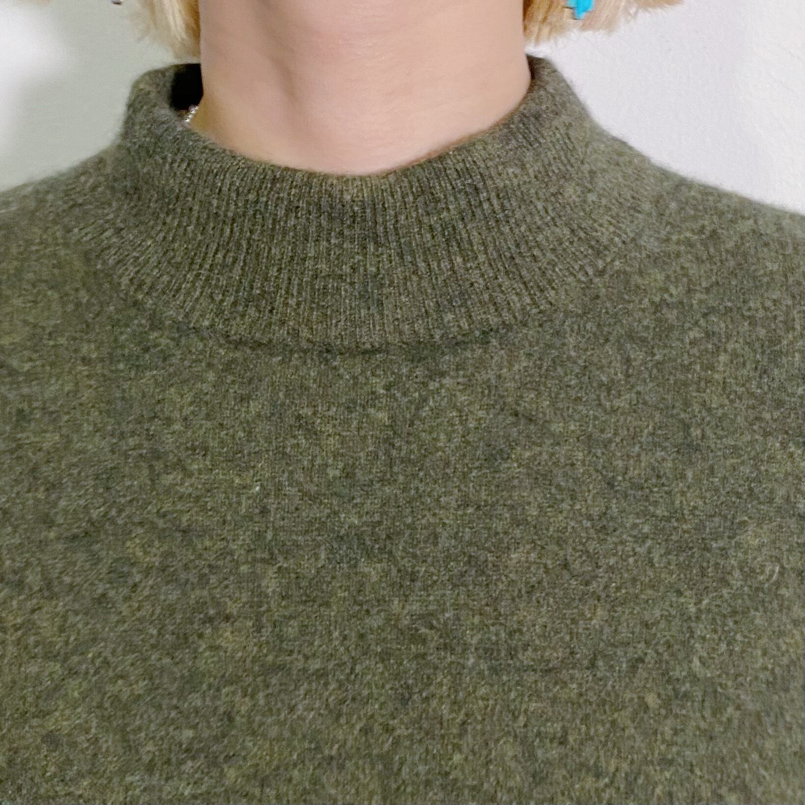 green high neck cashmere knit sweater