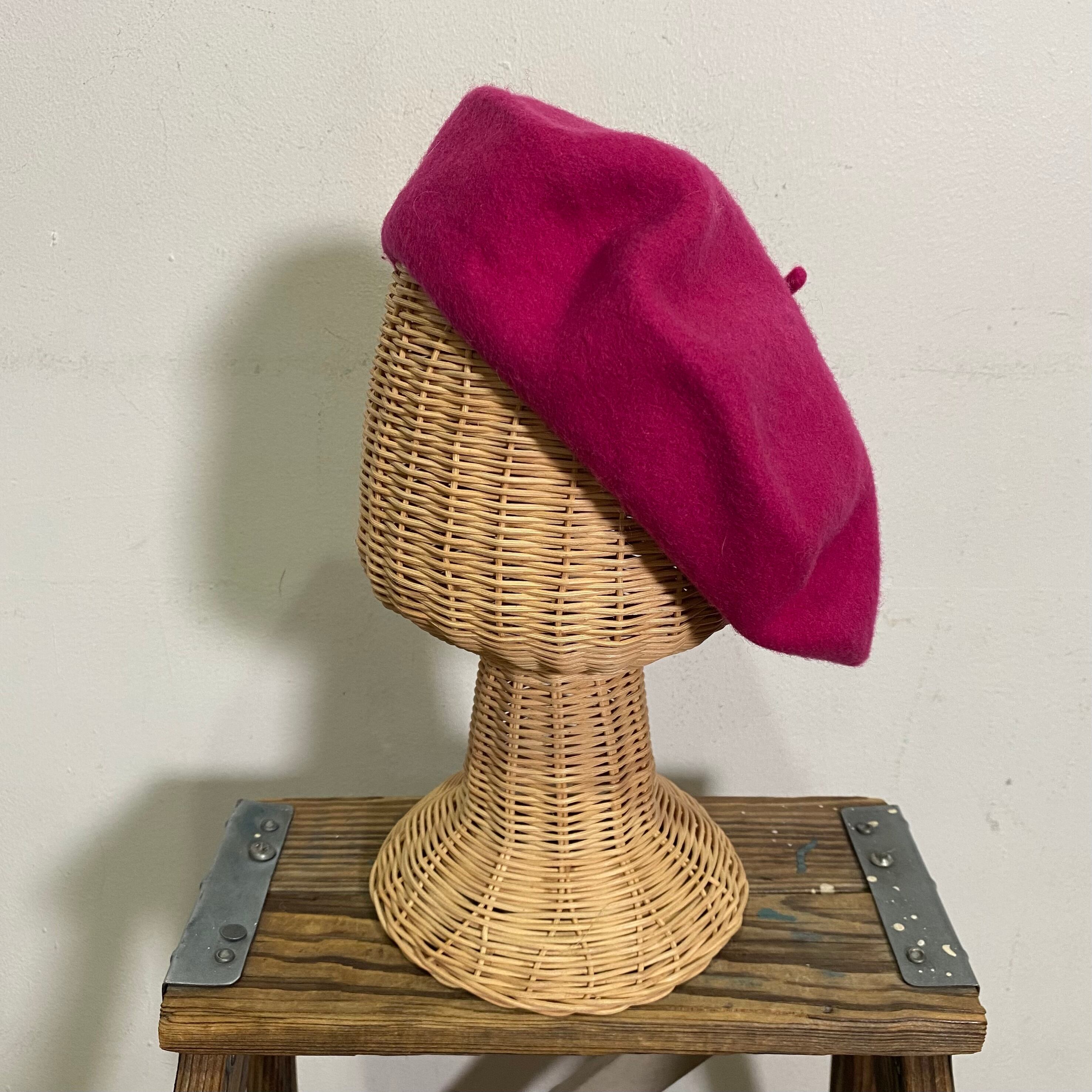 マゼンタとピンクの中間のような綺麗な色が可愛いベレー帽です。
