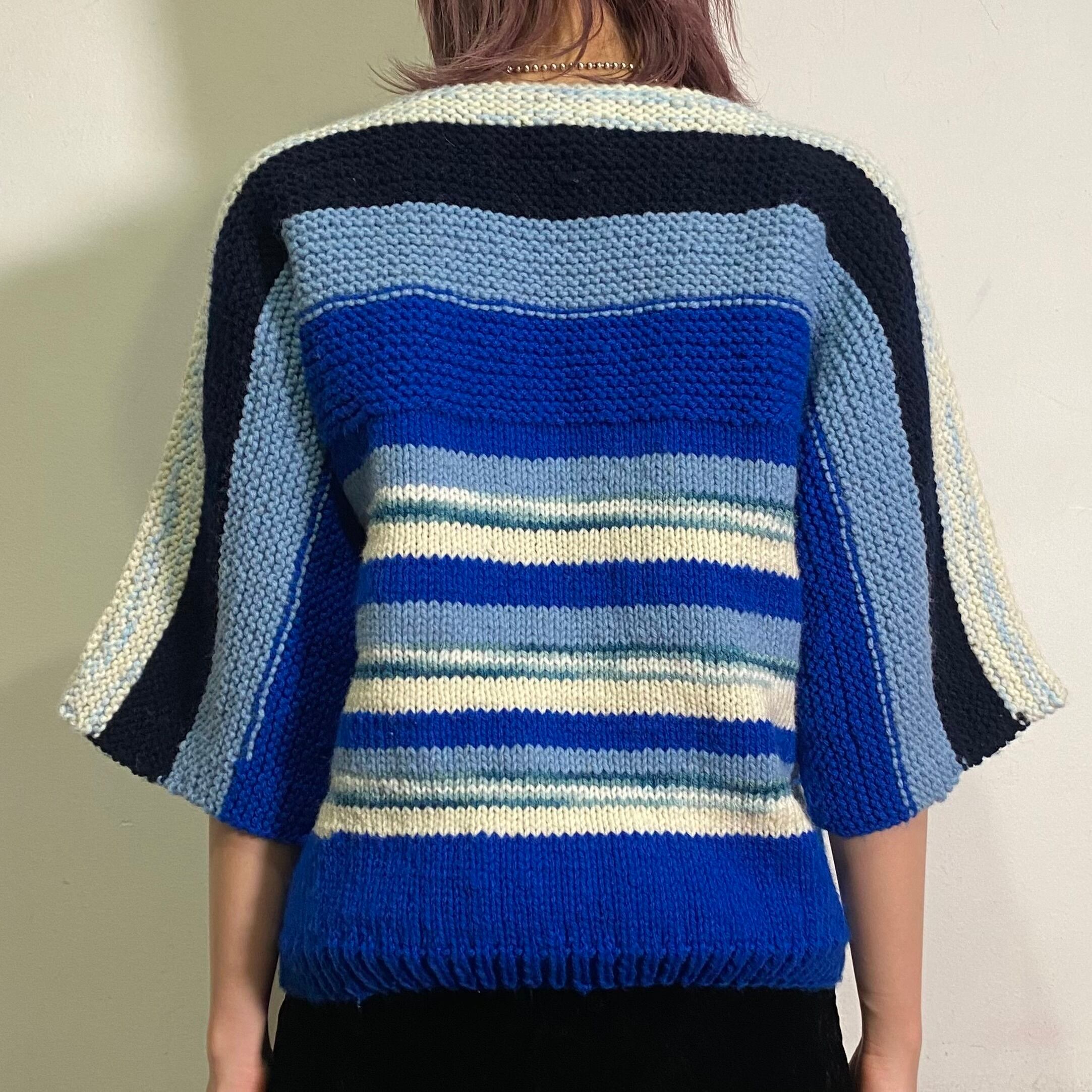 ブルー系の色合いのボーダーがとっても素敵なニットセーターです。