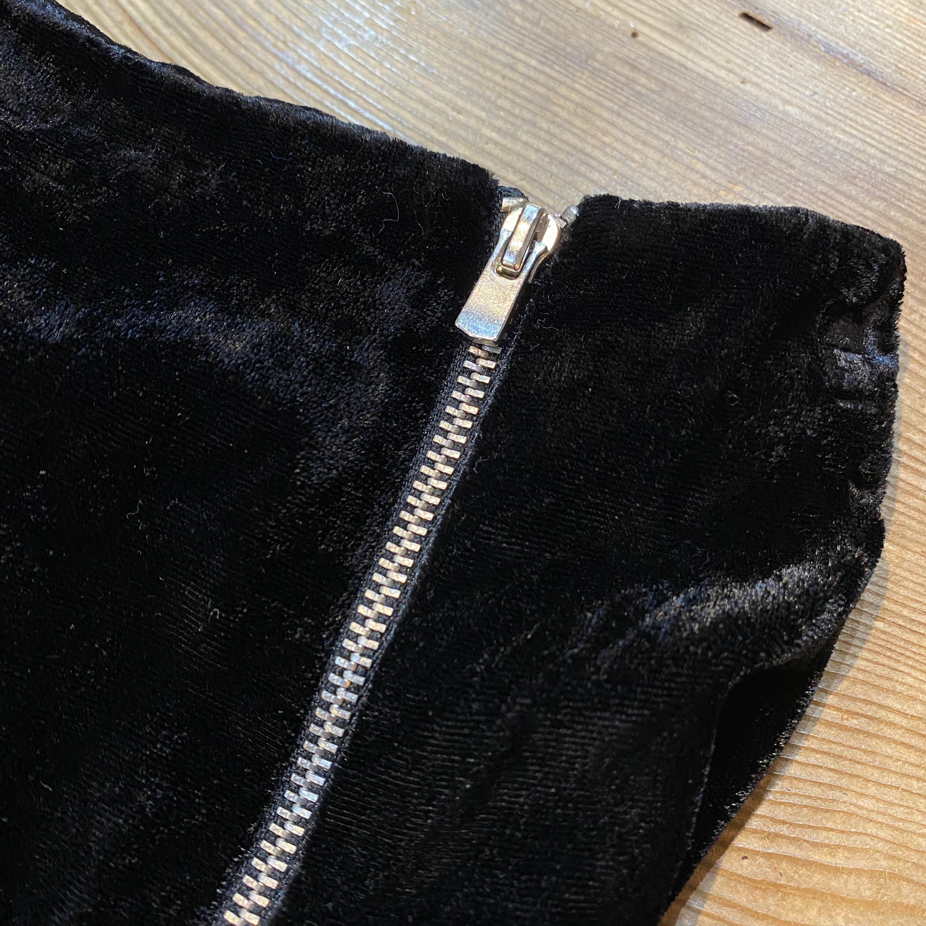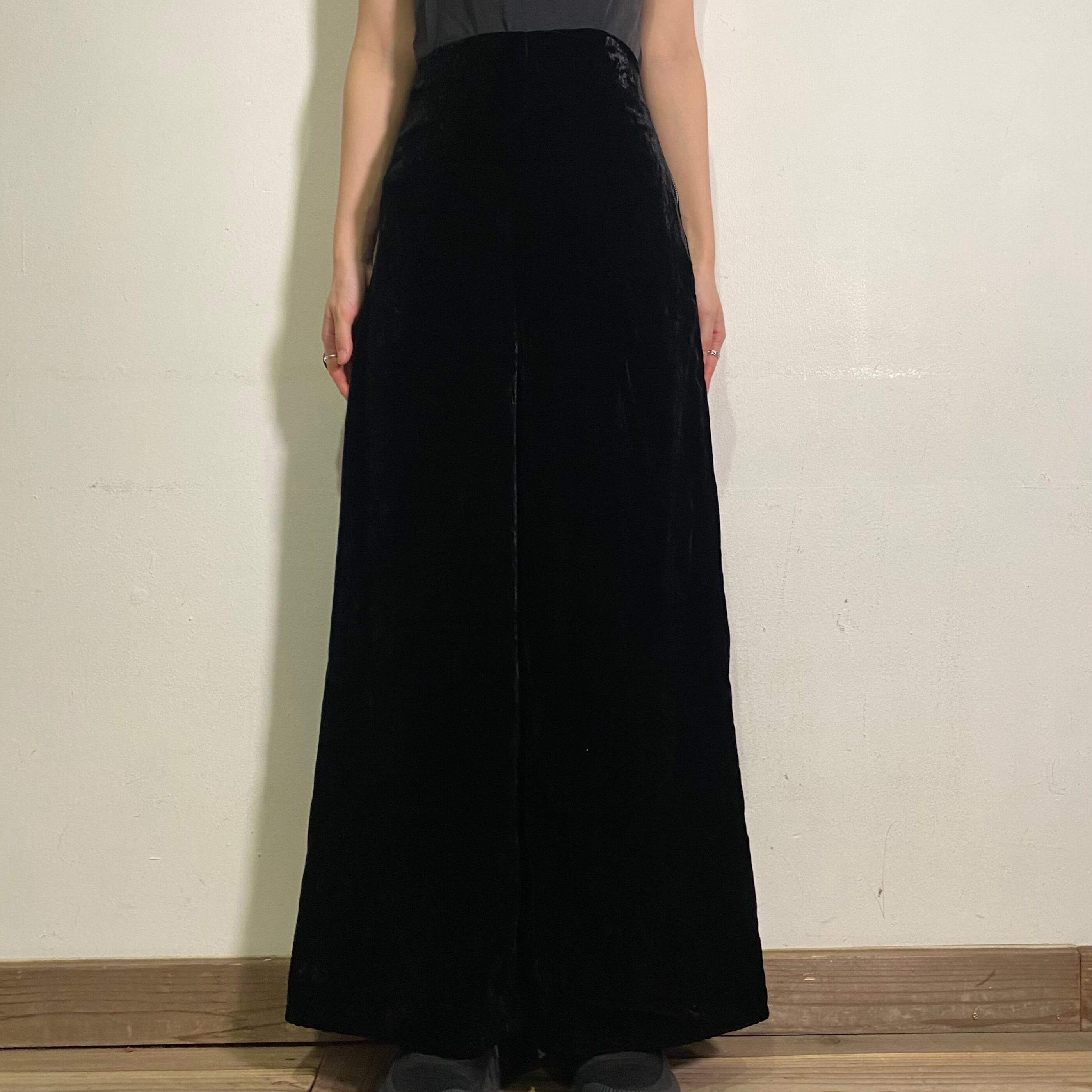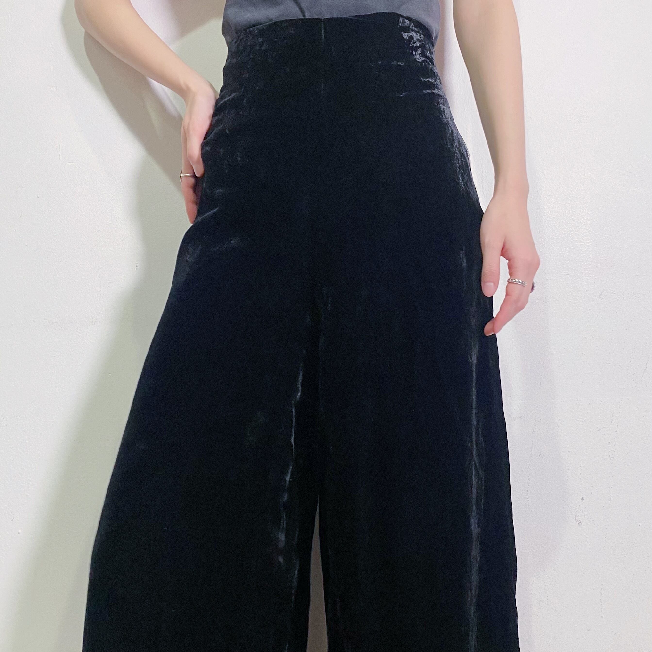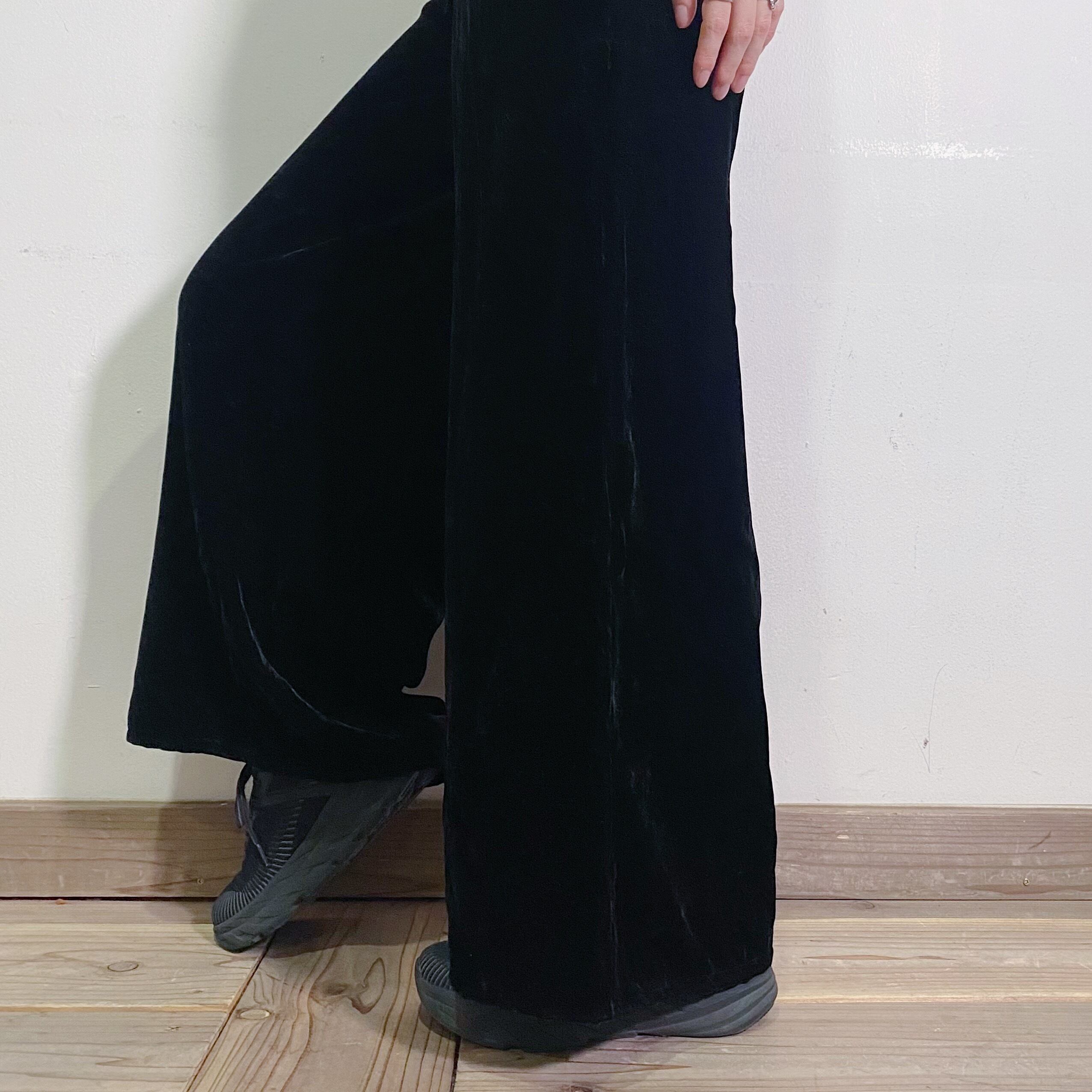 ブラックカラーで大変使い勝手が良く、ベロア素材特有の柔らかな生地感で履きやすいのも嬉しい一枚。