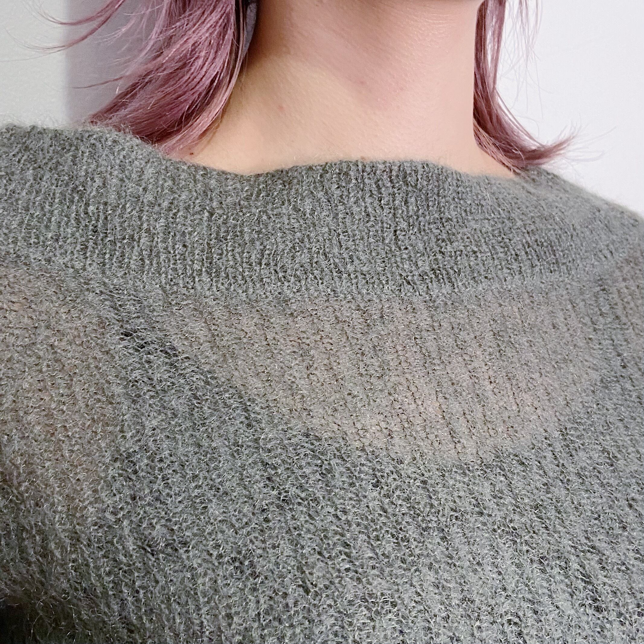 薄手のローゲージなのでインナーによって肌の透け感も楽しめますよ。