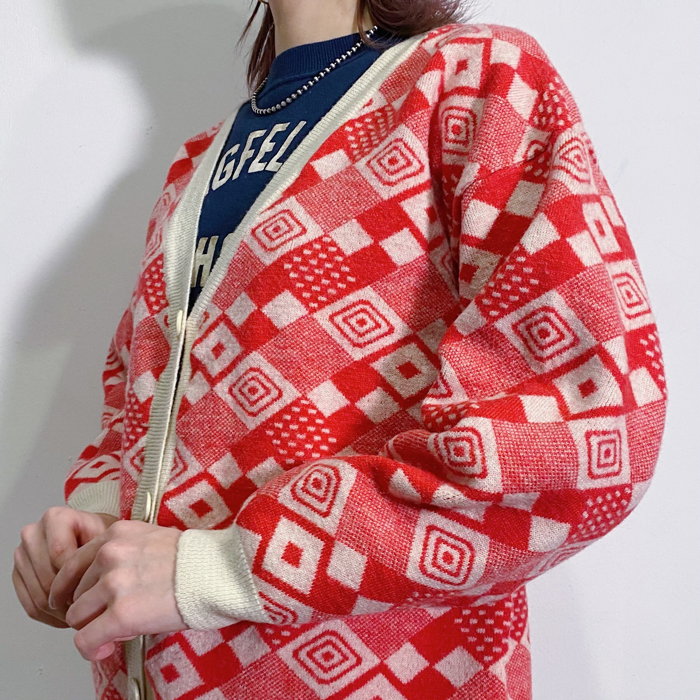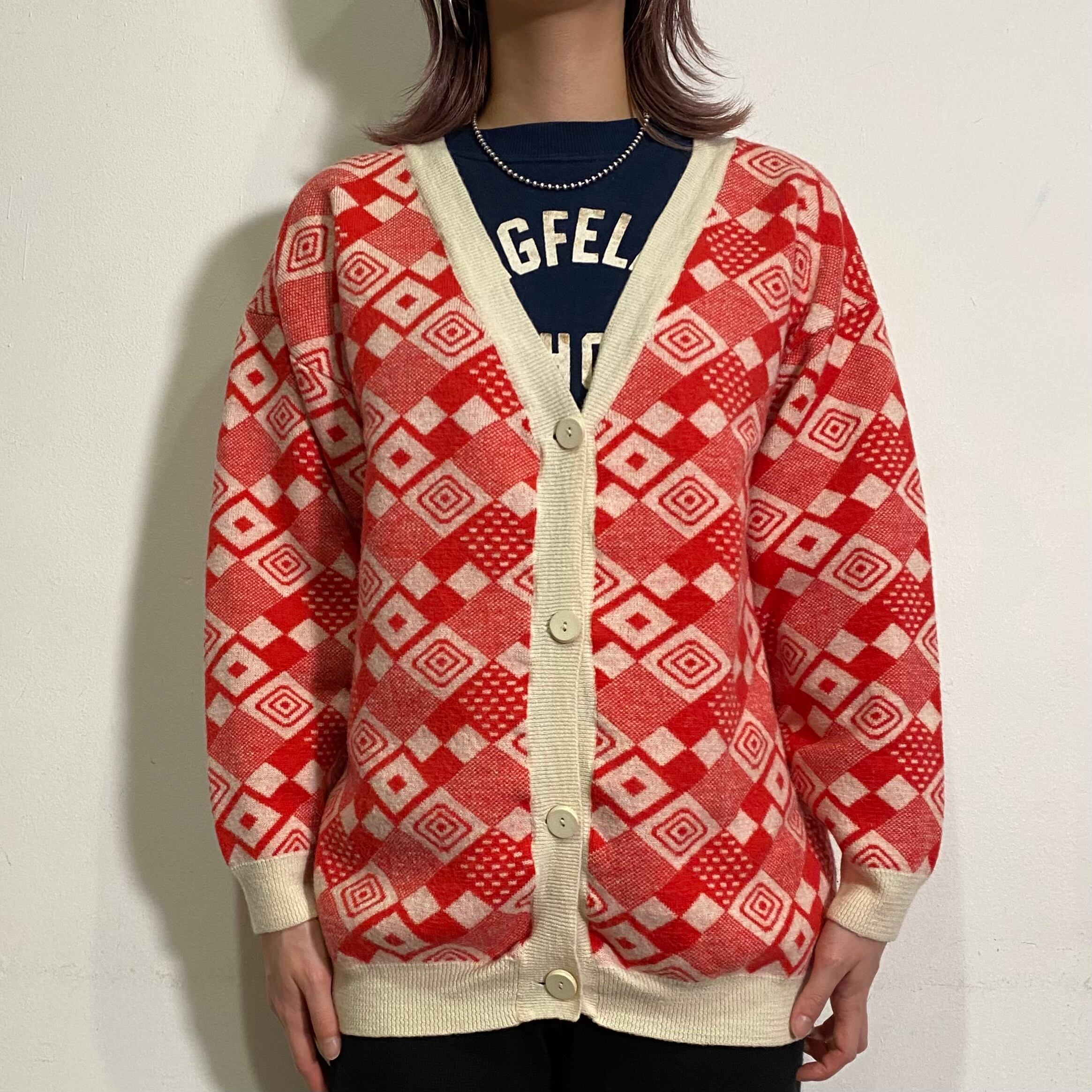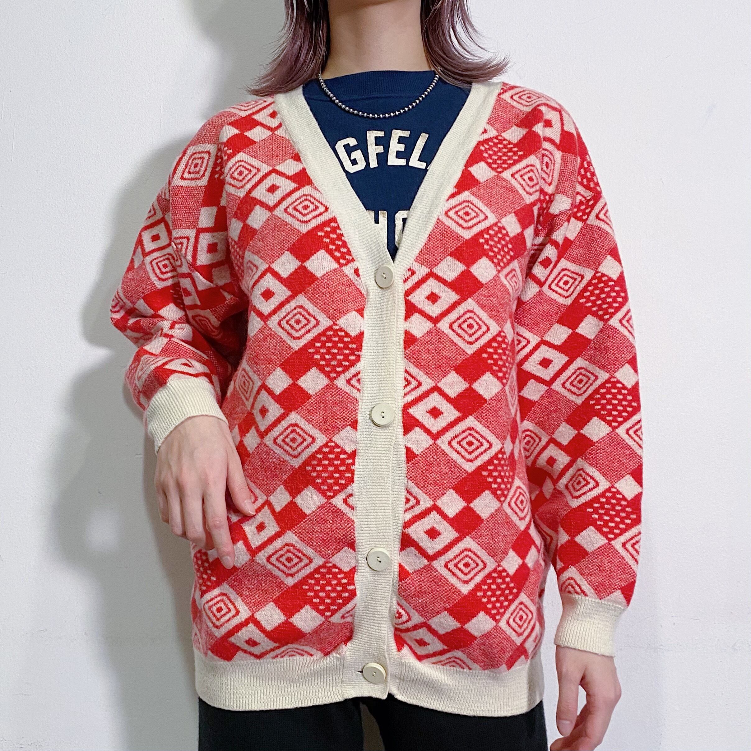 レッド×ホワイトの色合いが可愛い70年代のカーディガンです。