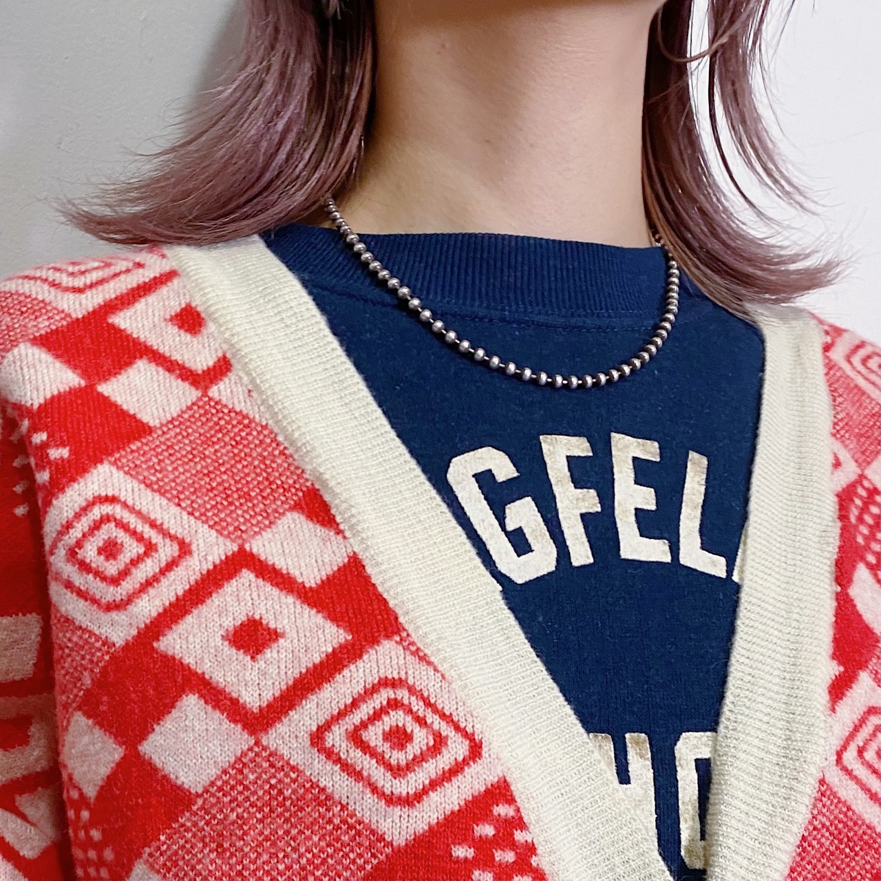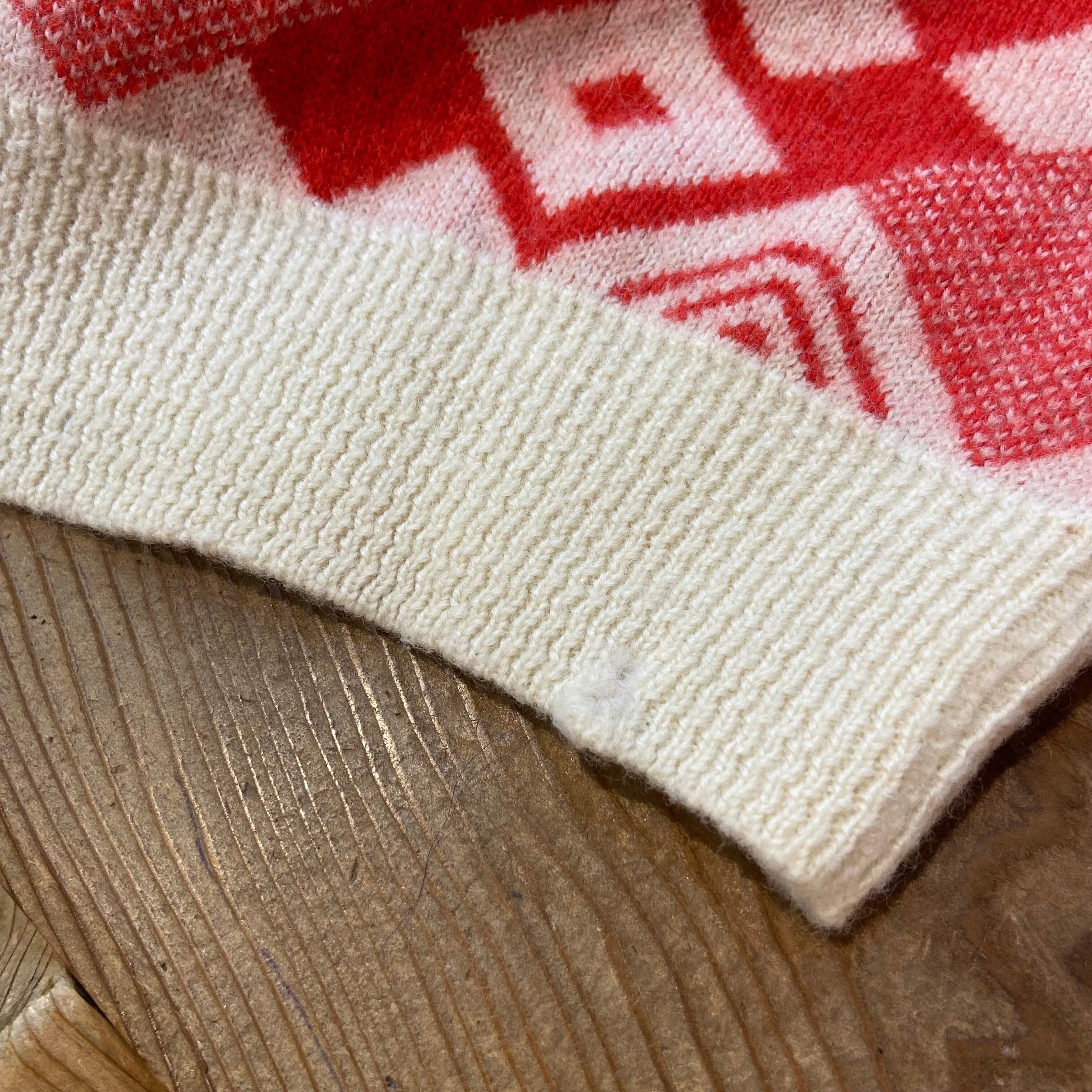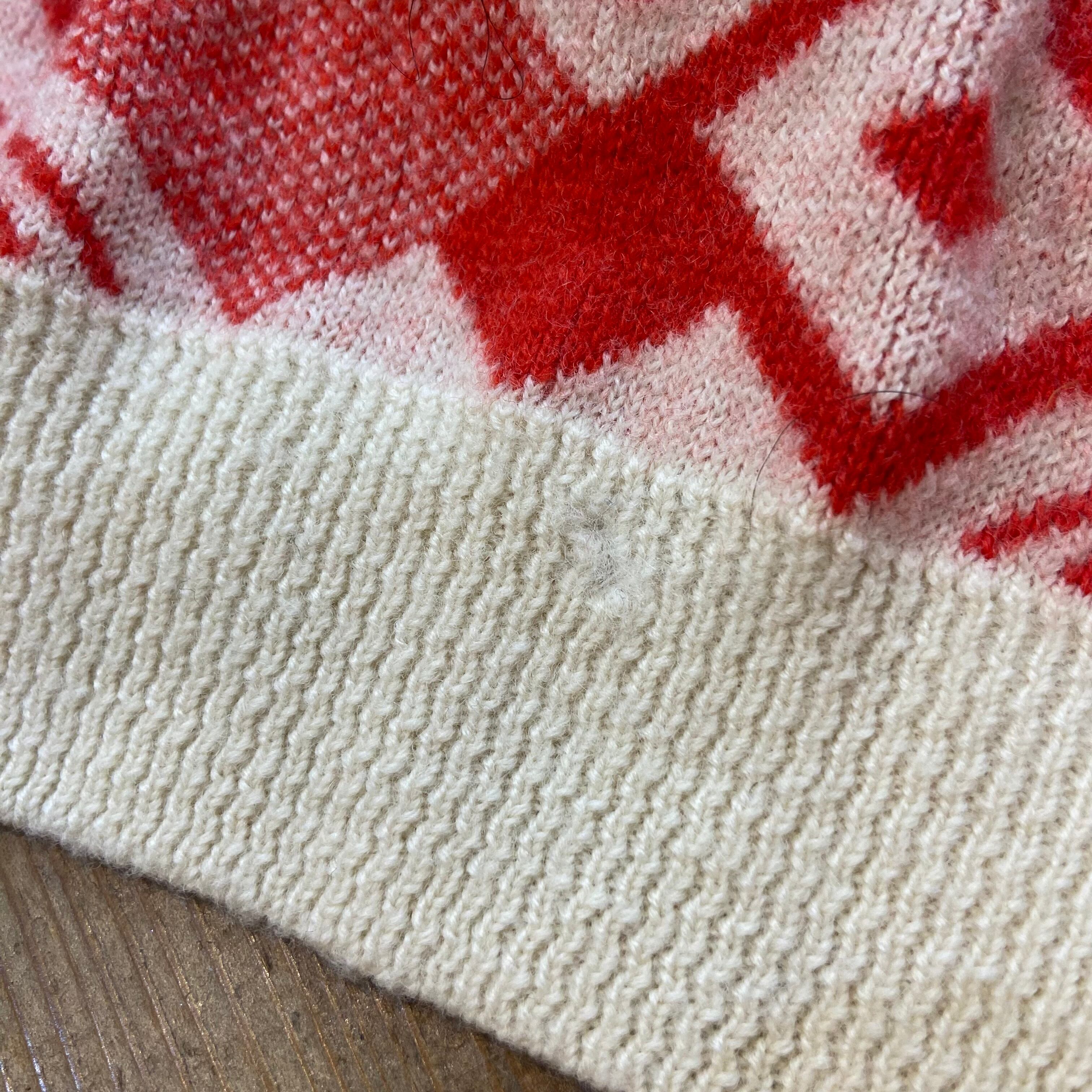 レッド×ホワイトの色合いが可愛い70年代のカーディガンです。