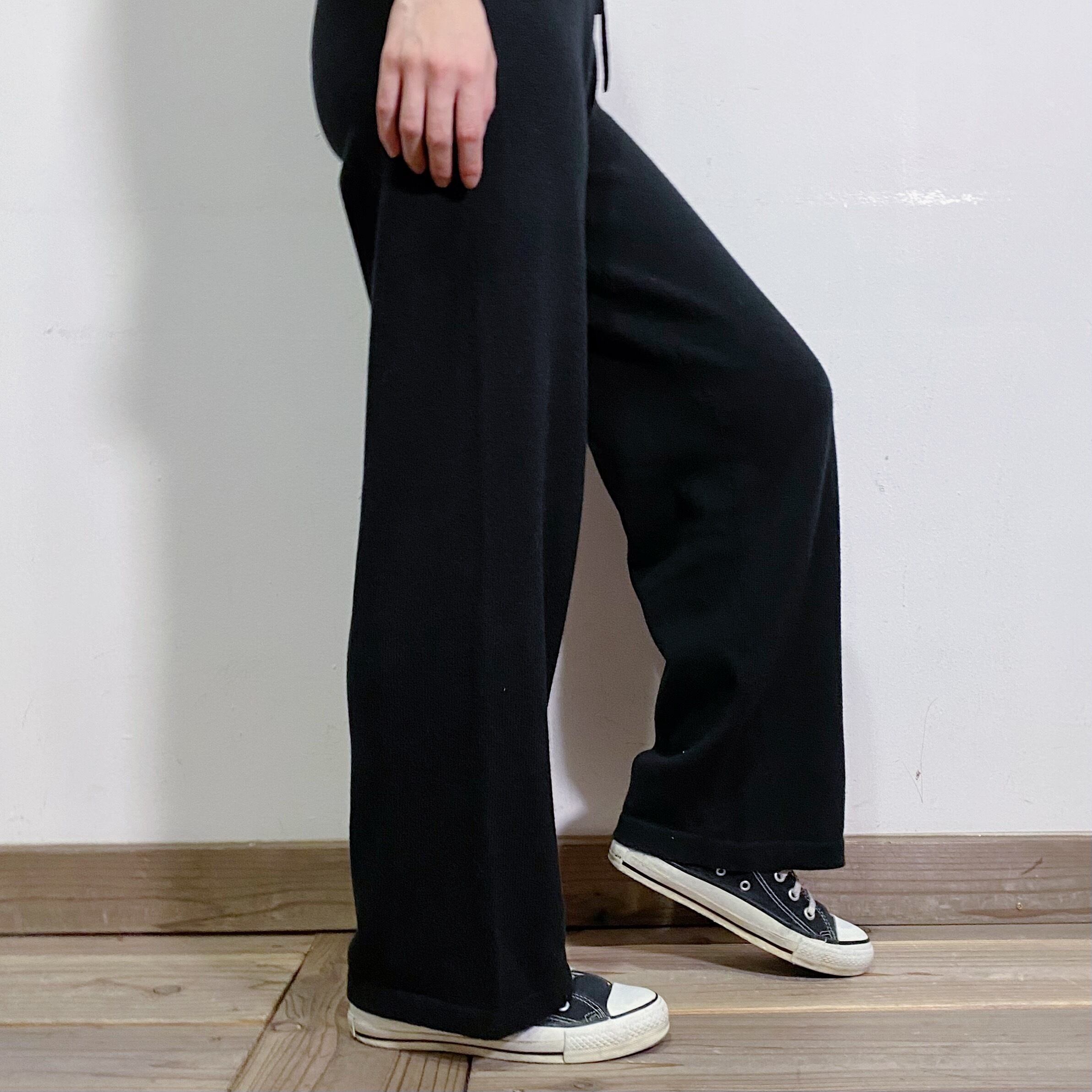 ブラックカラーで大変使い勝手が良く、ウエストも紐で楽ちんな所が嬉しい一枚。