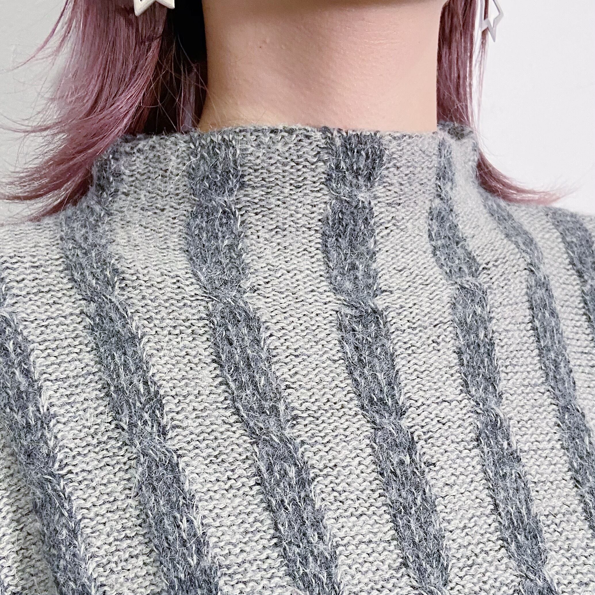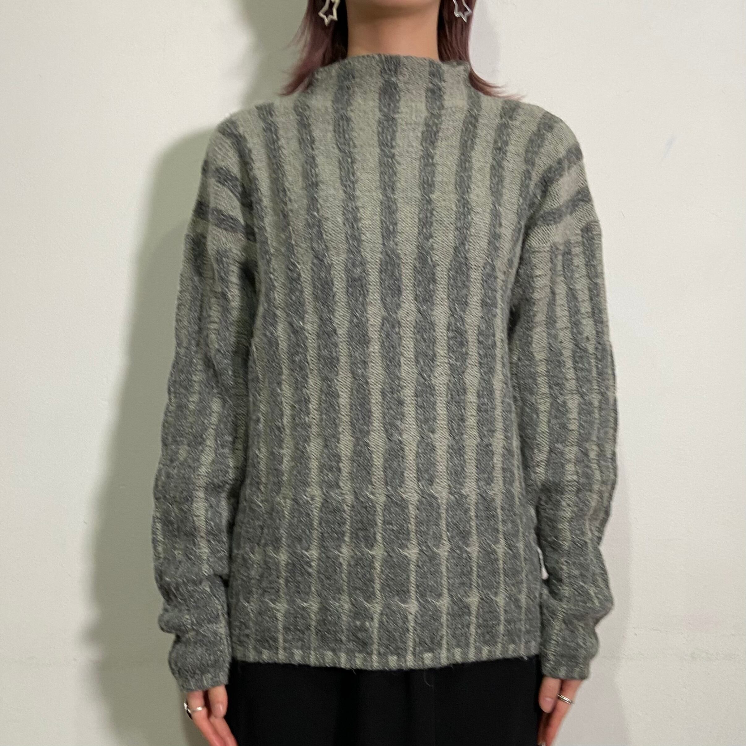 gray stripe mohair highneck knit sweater