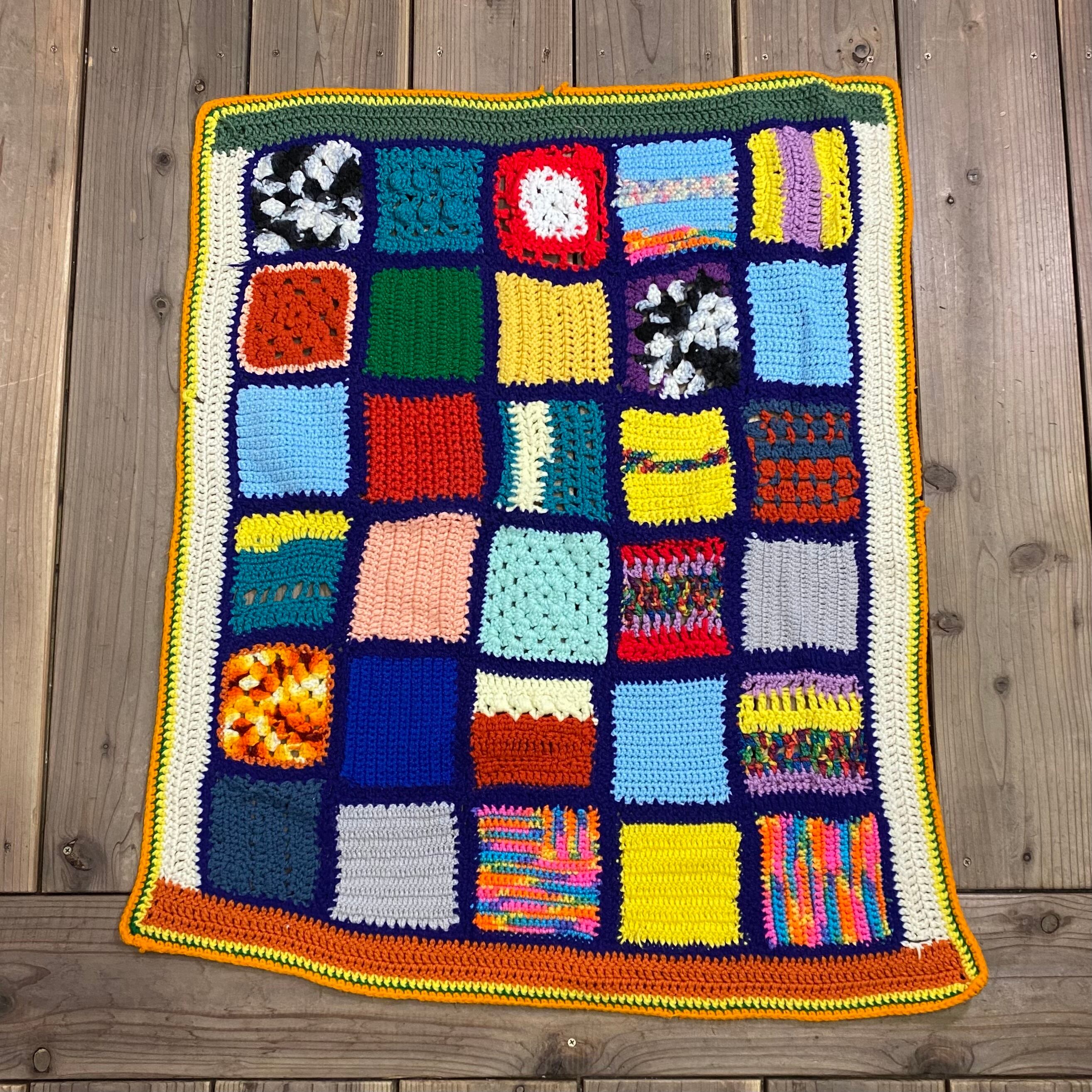 70s colorful square motif knit blanket