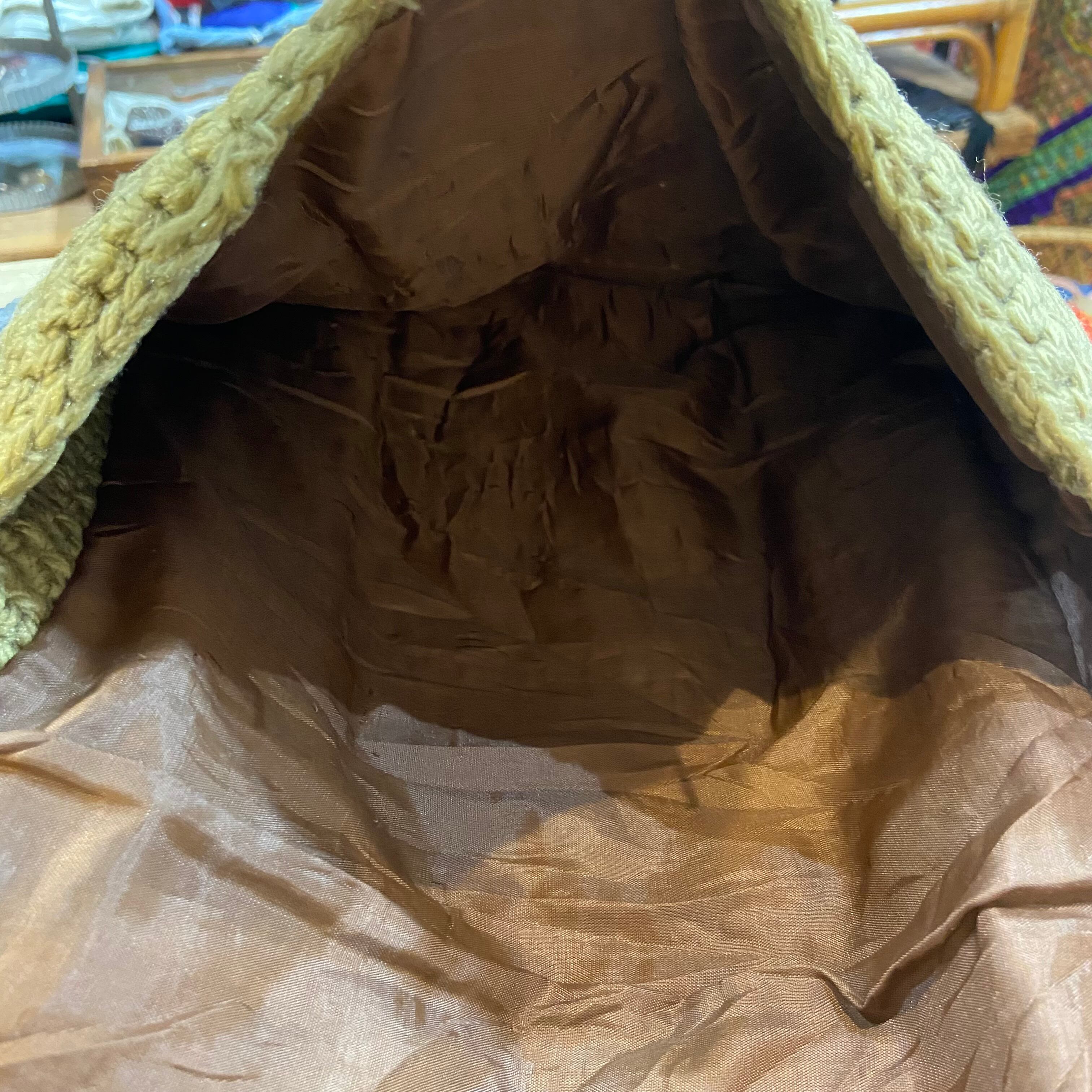 70s beige hand knit bag