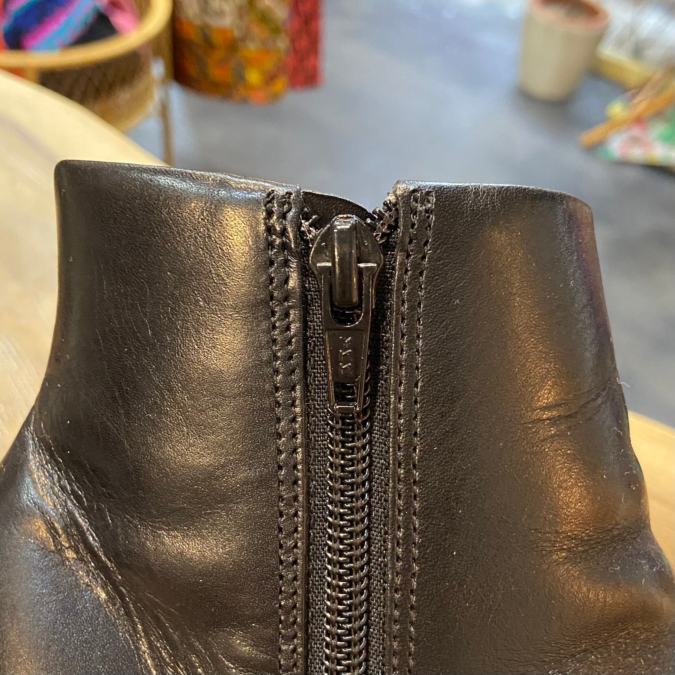 ブラックカラーで大変使い勝手のいいレザーショートブーツです。