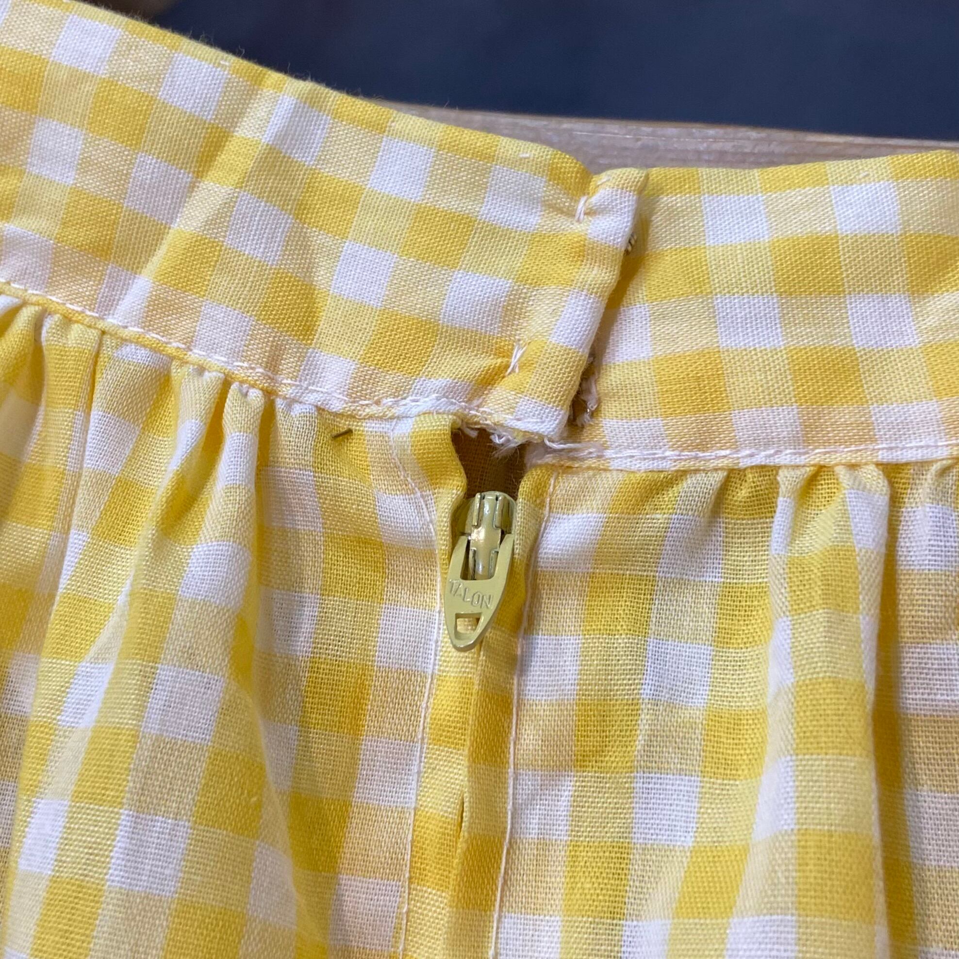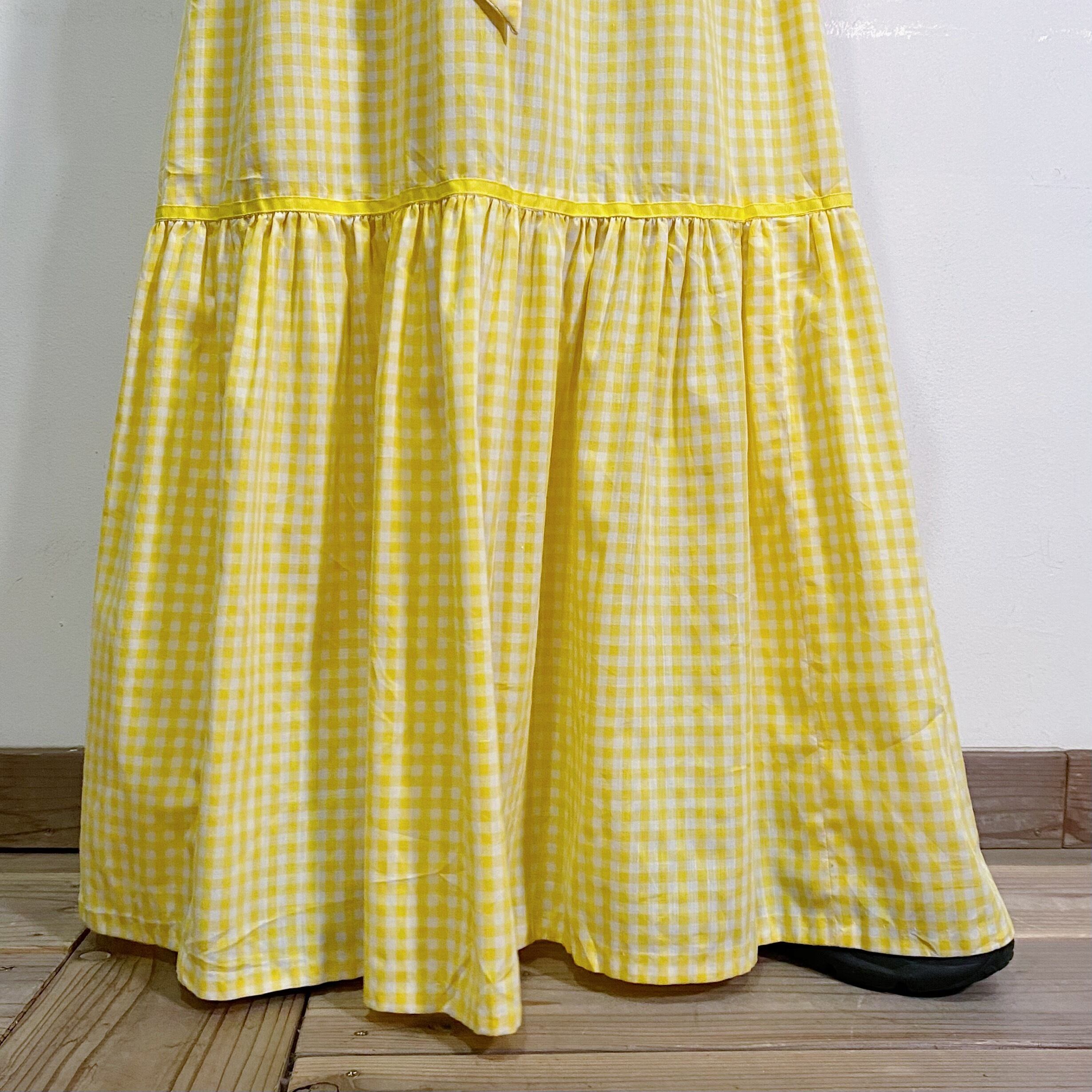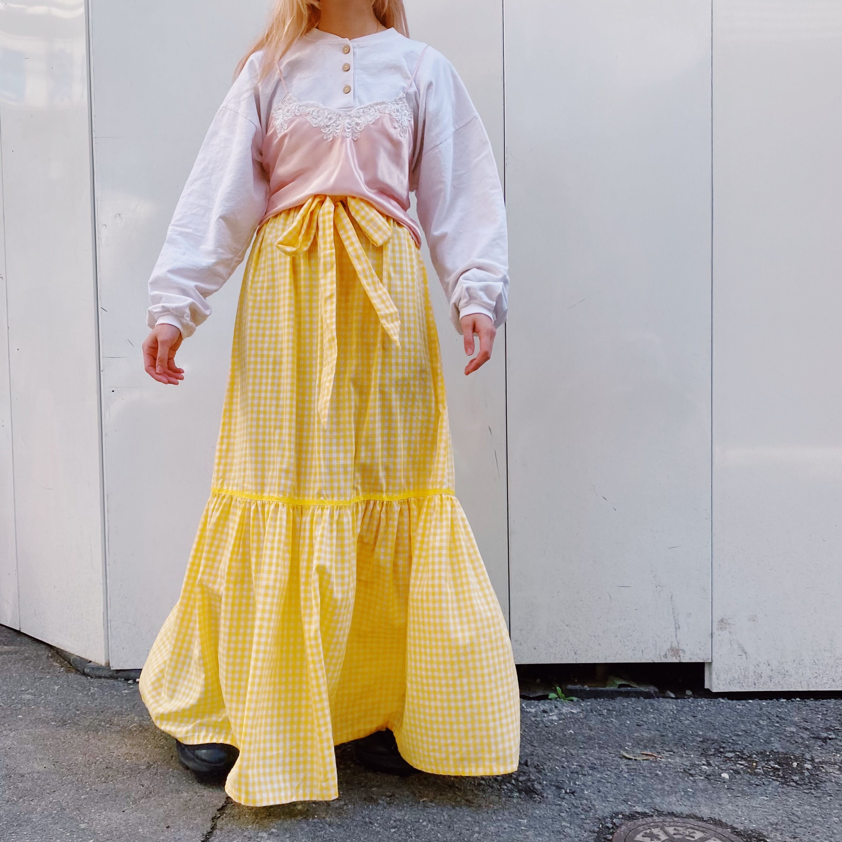 イエロー×ホワイトのギンガムチェックが可愛い、70年代のロングスカートです。