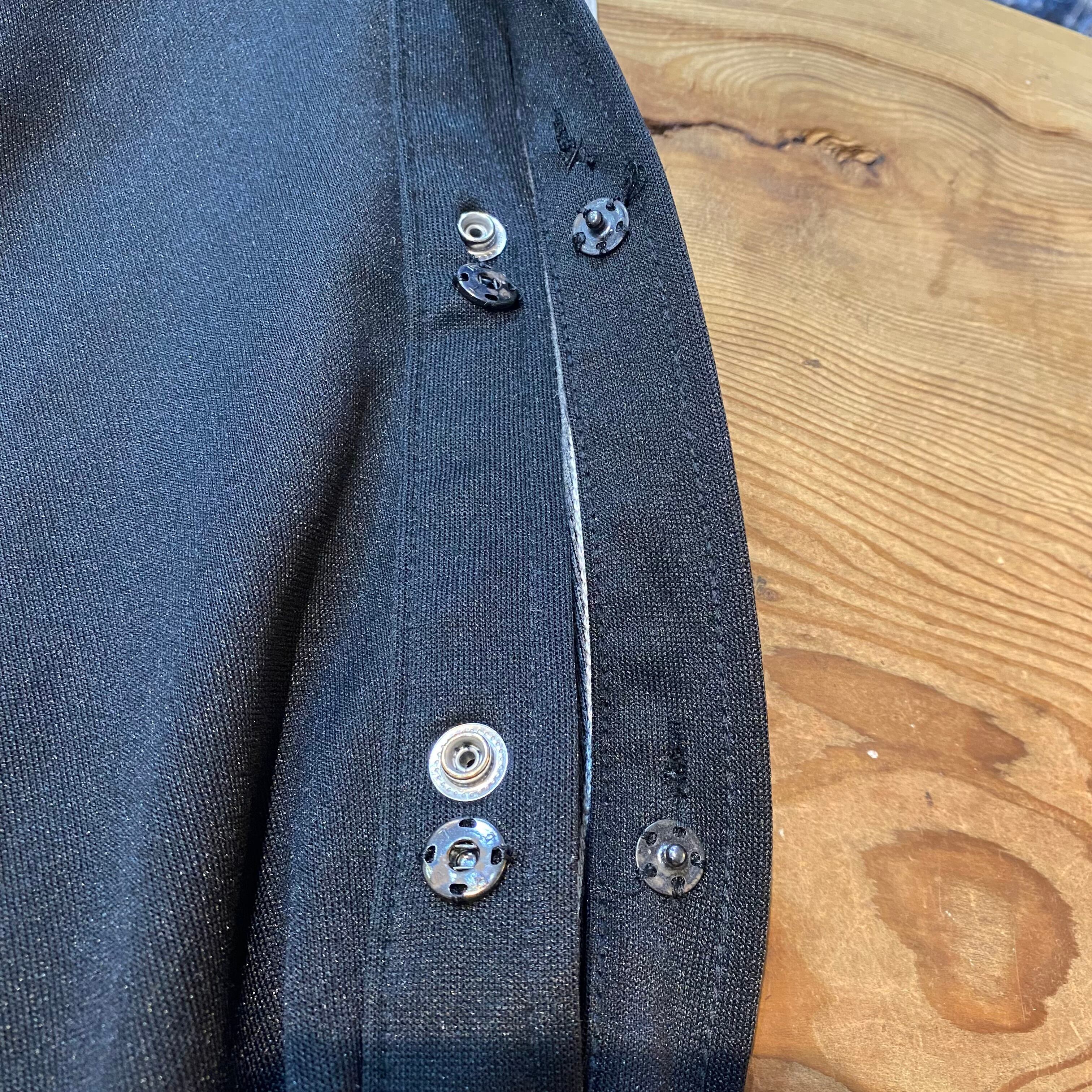 お好きな位置までスナップを開けて、スリットのように着こなすことが出来る楽しいアイテムです。