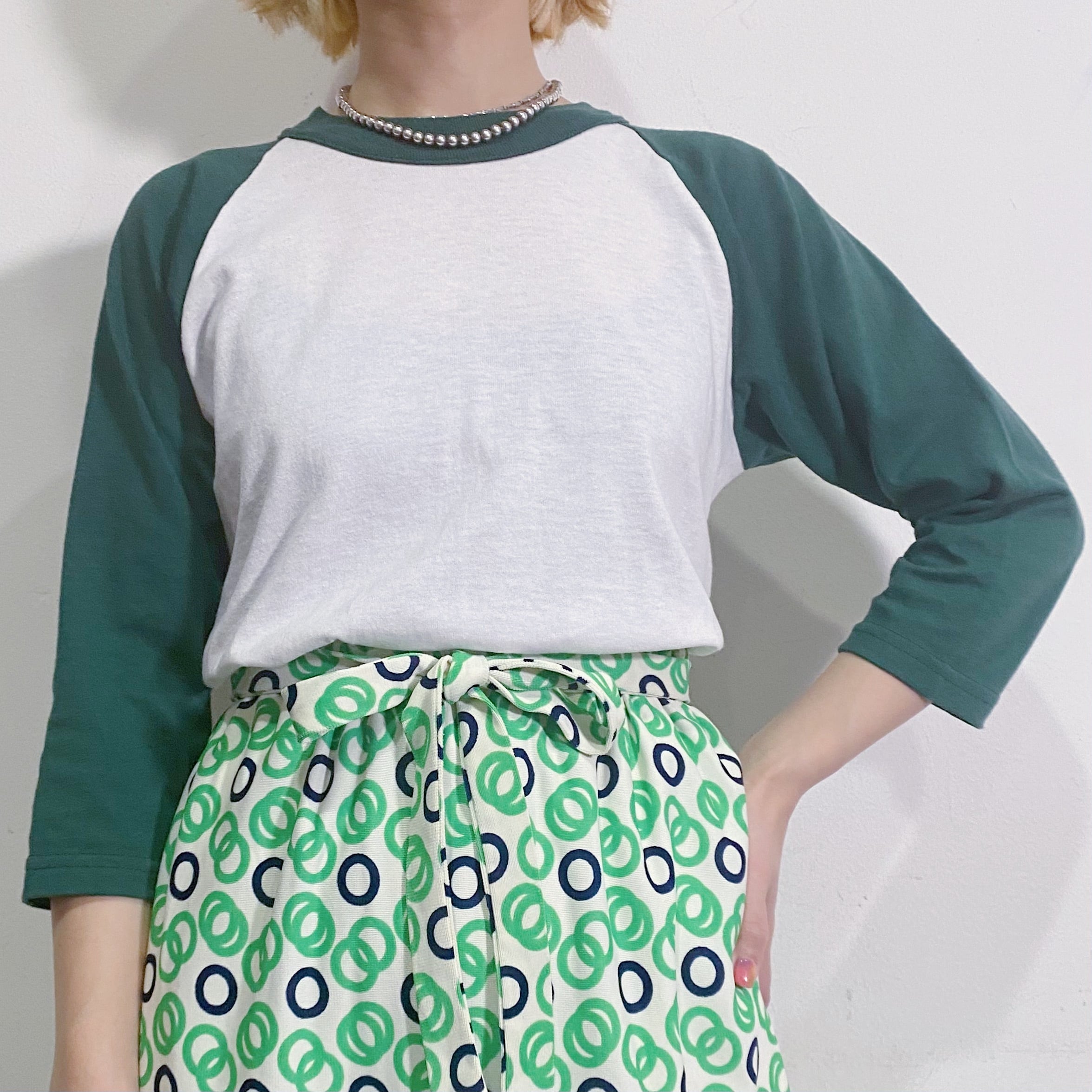 グリーン×ホワイトの組み合わせが可愛い、80年代のベースボールTシャツです。